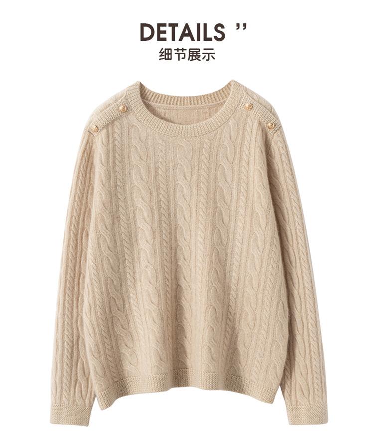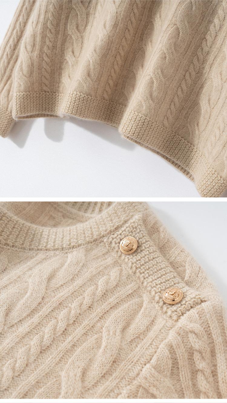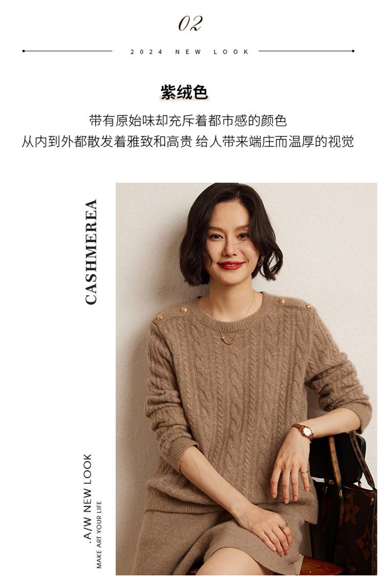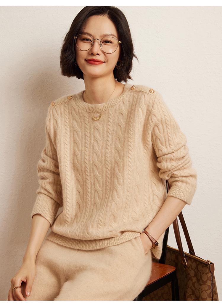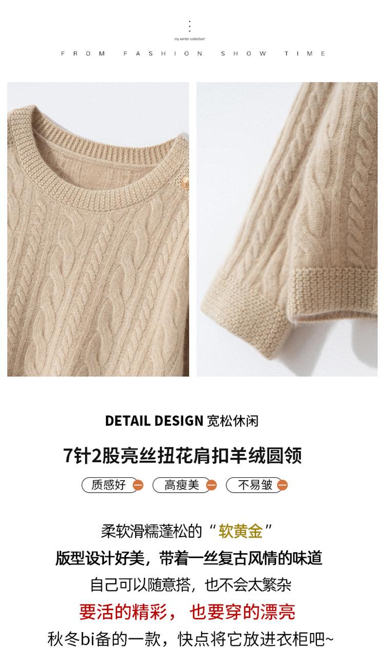 Cachmere Suéter Holgado de Cuello Redondo para Mujer Color Puro Torcido Bajo Ropa de Punto Otoño e Invierno Nuevo Estilo Lazy Ropa de Punto Casual