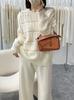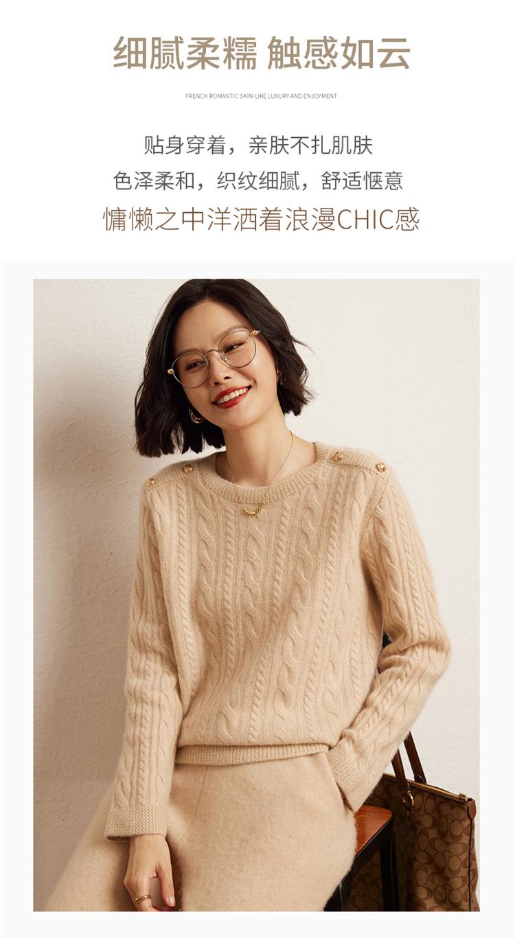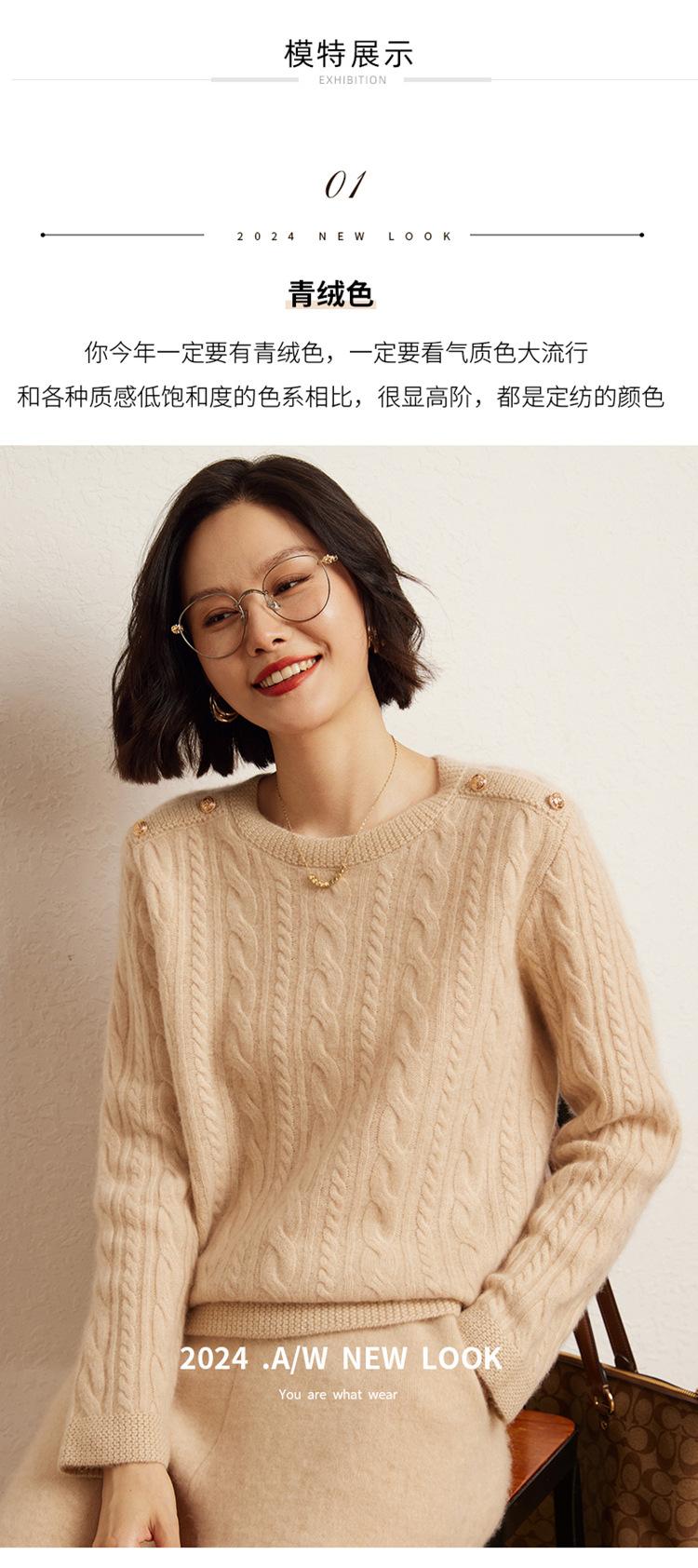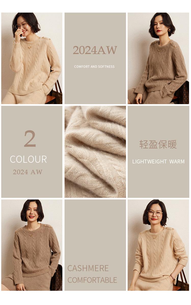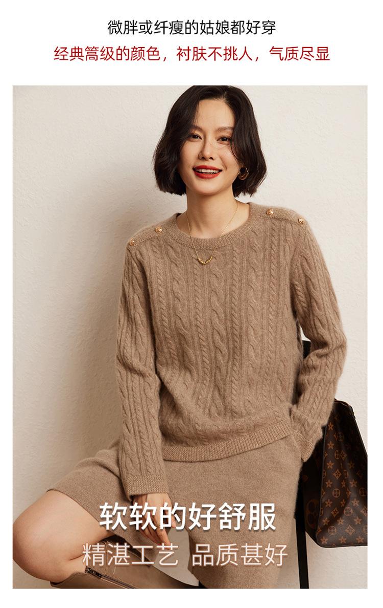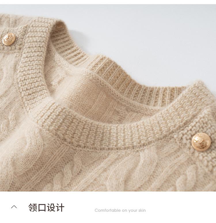 Cachmere Suéter Holgado de Cuello Redondo para Mujer Color Puro Torcido Bajo Ropa de Punto Otoño e Invierno Nuevo Estilo Lazy Ropa de Punto Casual