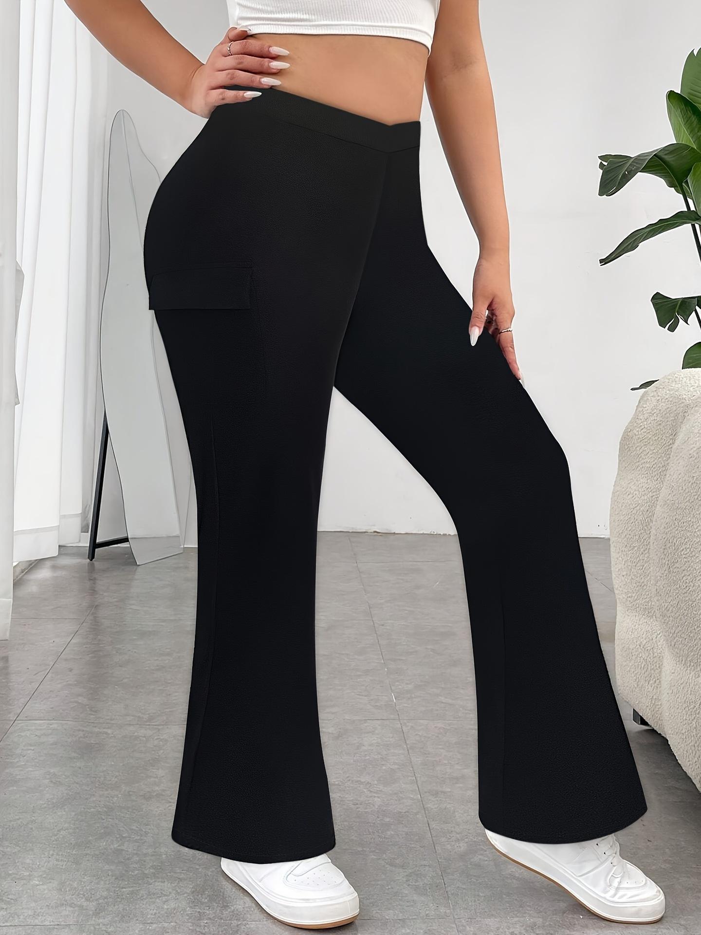 Pantalones negros elegantes de corte entallado y talla grande, de moda europea y americana, para otoño de 2024, de cintura alta elástica para chica gordita.