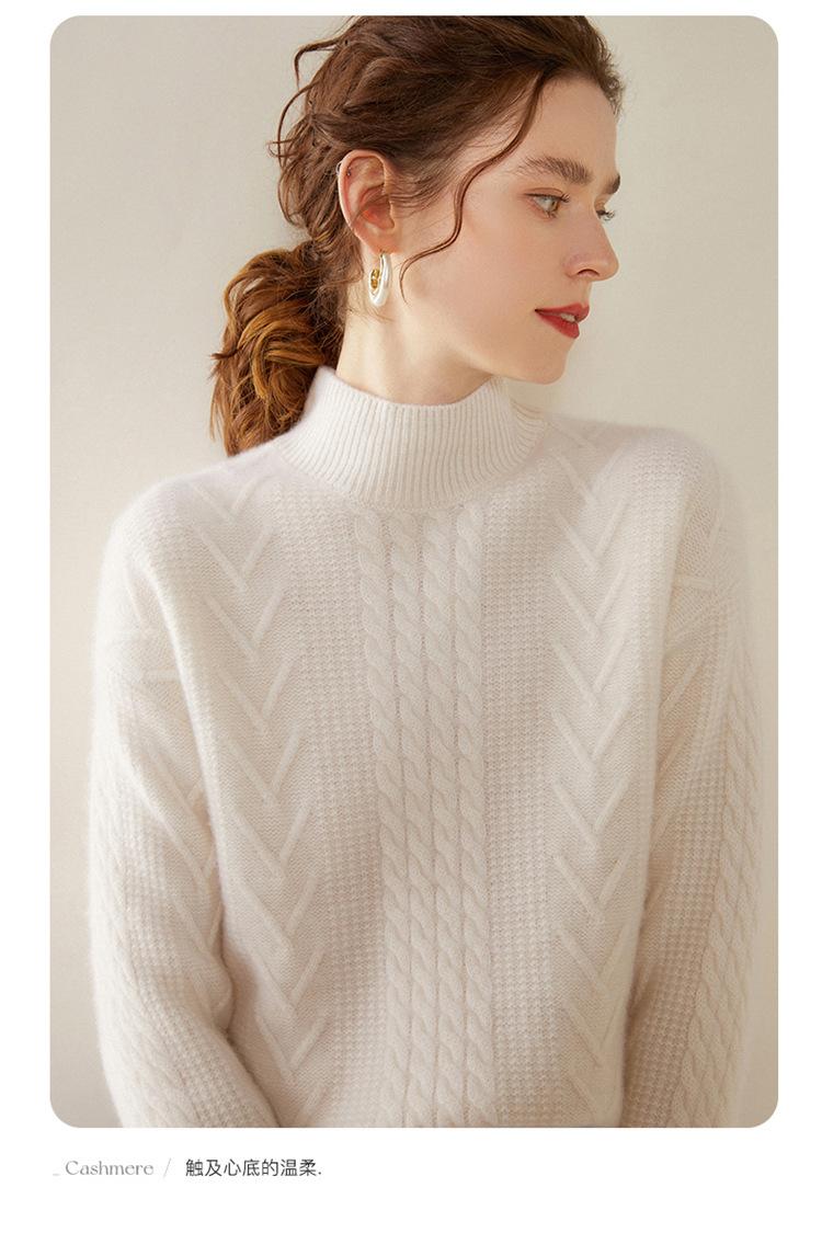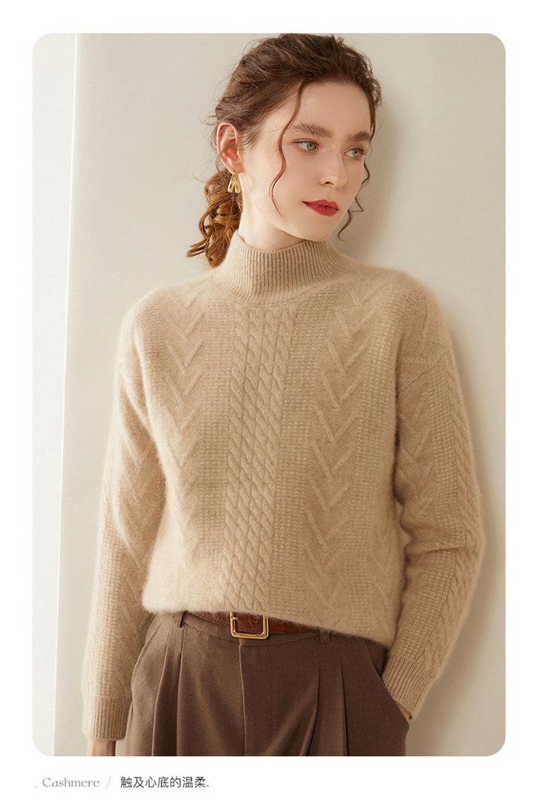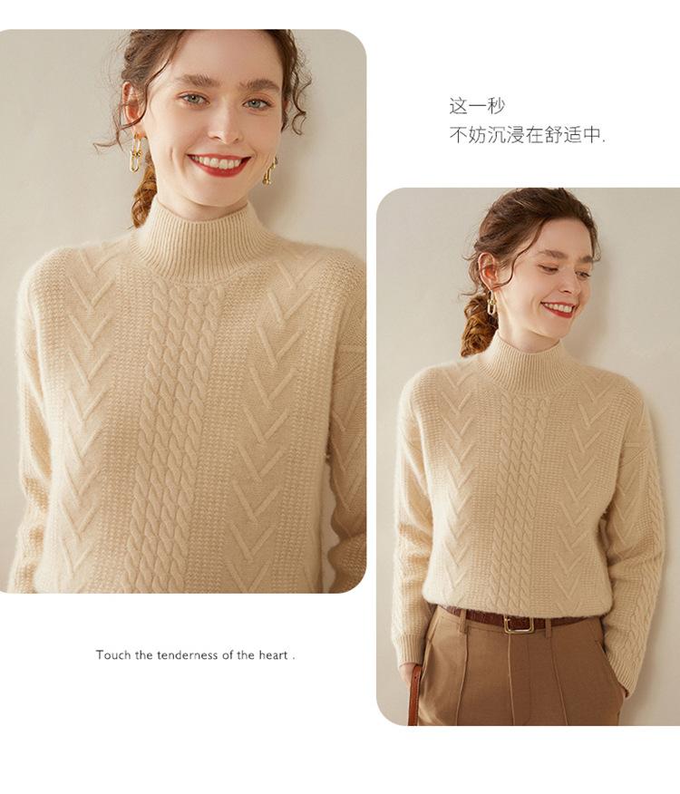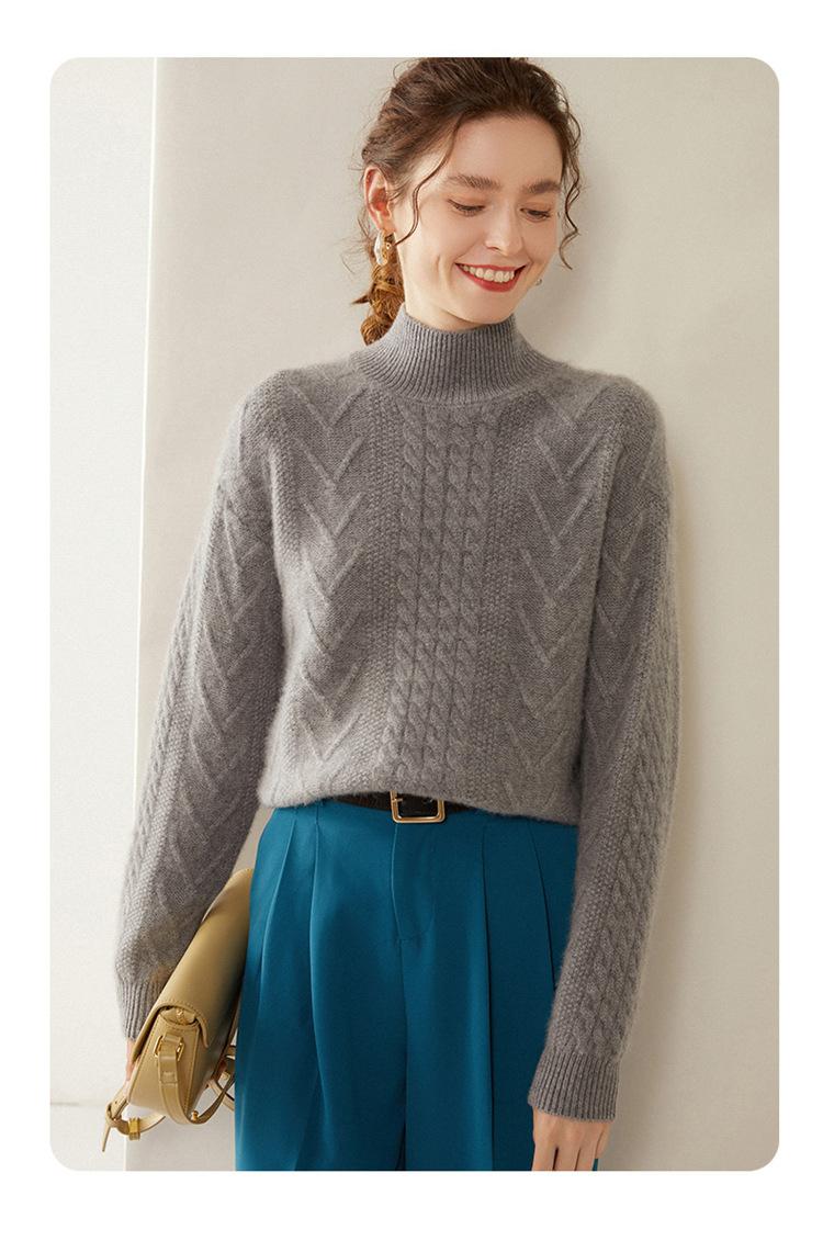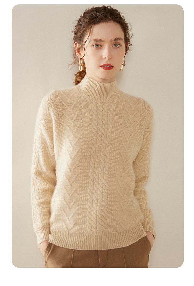 Otoño e Invierno 2024 Europa y Estados Unidos Transfronterizo Cuello alto Amazon Suéter para Mujer Tejido de Punto Trenzado Grueso Pesado Suéter Base Grueso