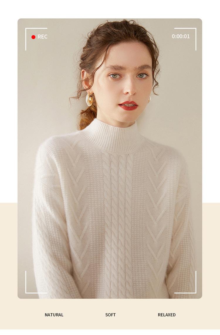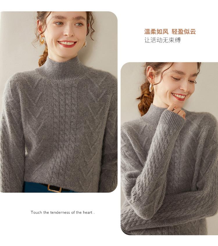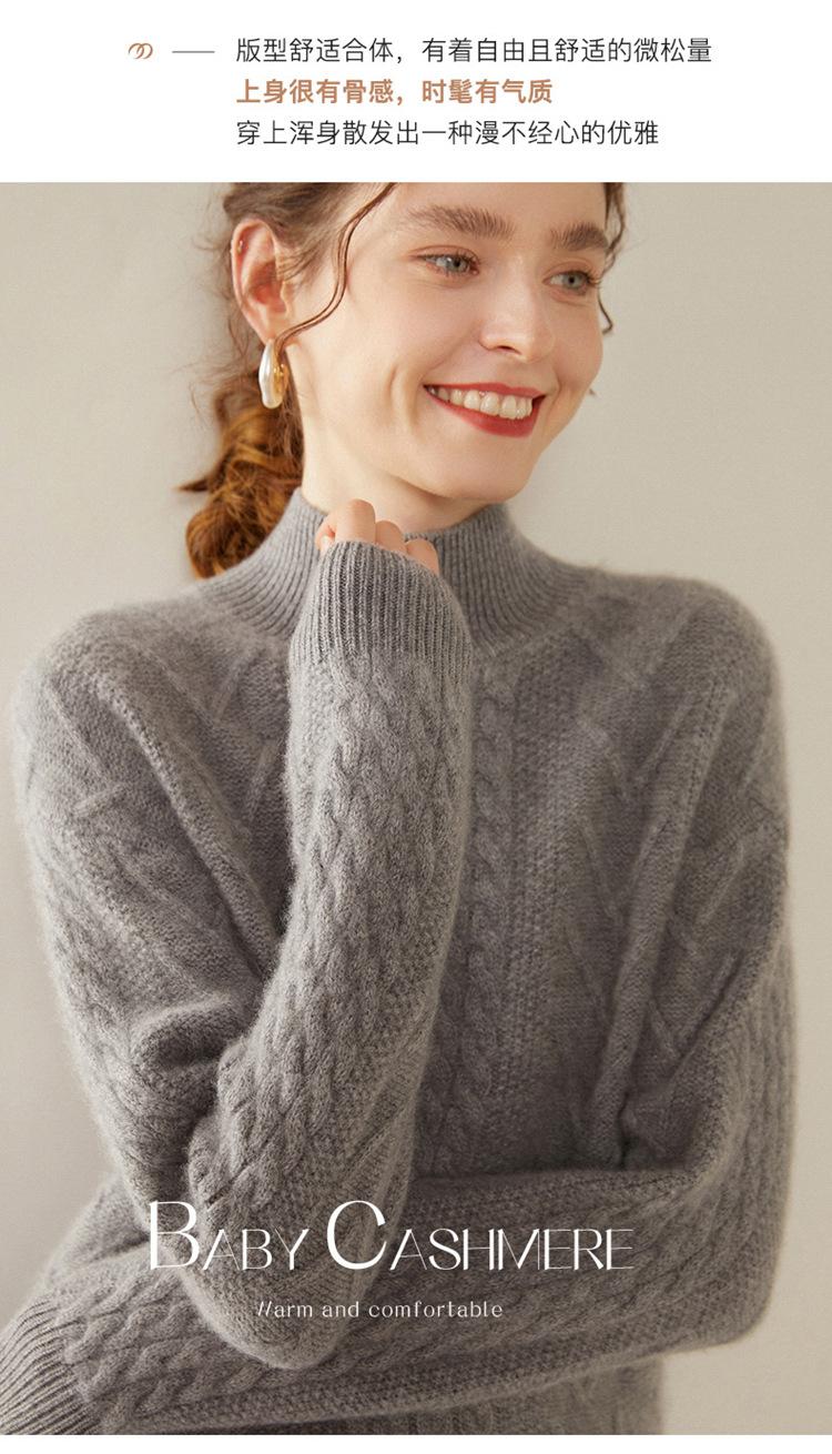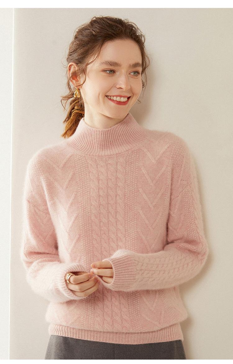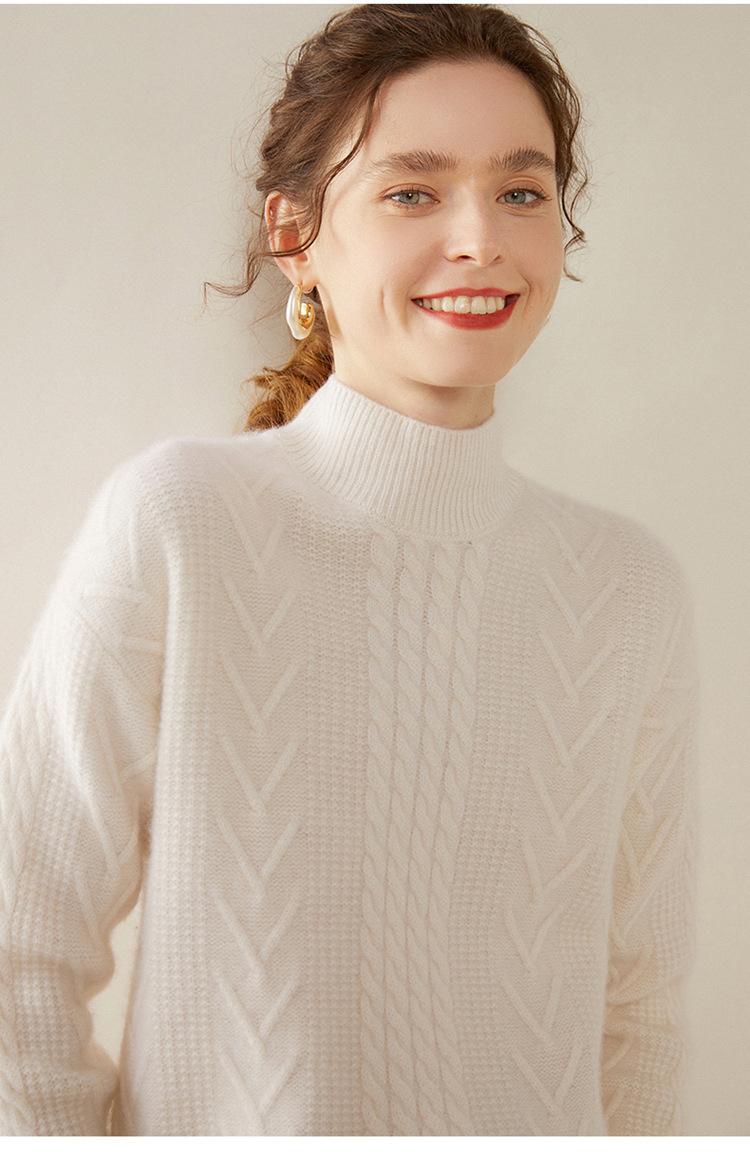 Otoño e Invierno 2024 Europa y Estados Unidos Transfronterizo Cuello alto Amazon Suéter para Mujer Tejido de Punto Trenzado Grueso Pesado Suéter Base Grueso