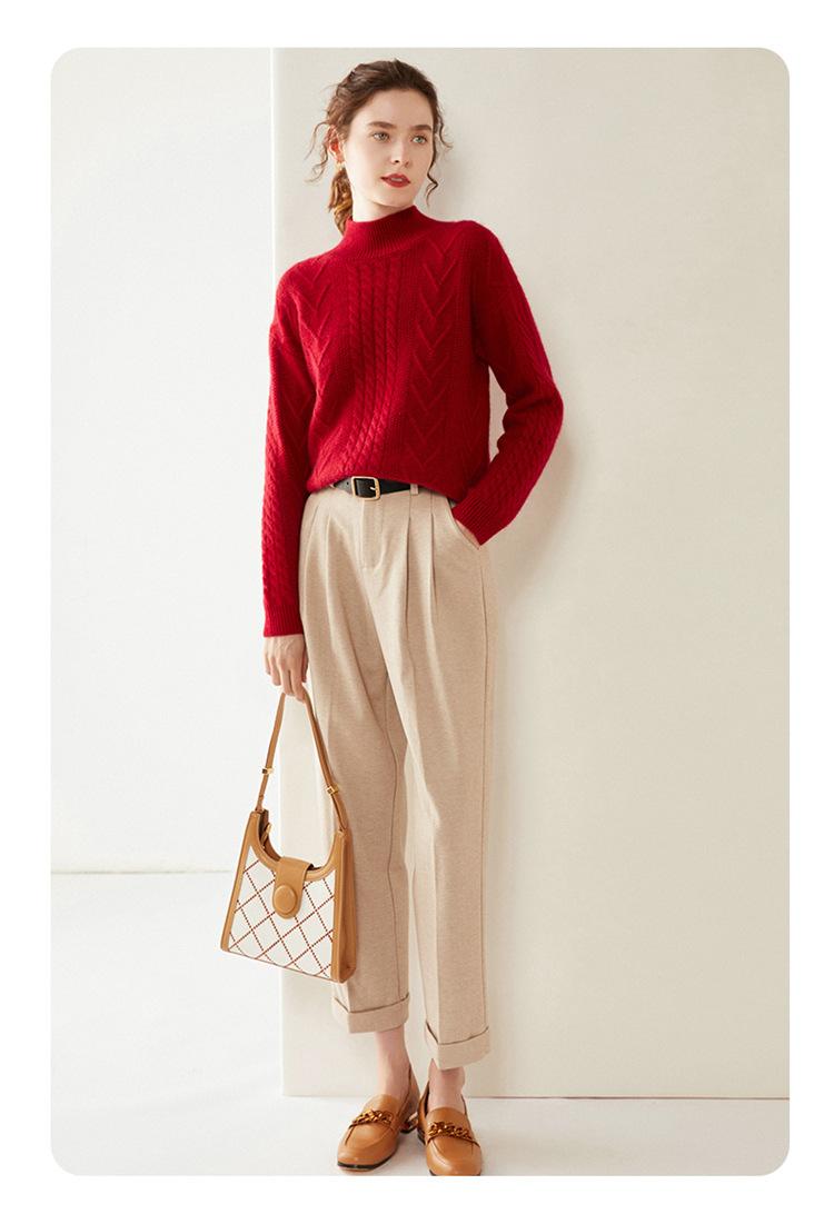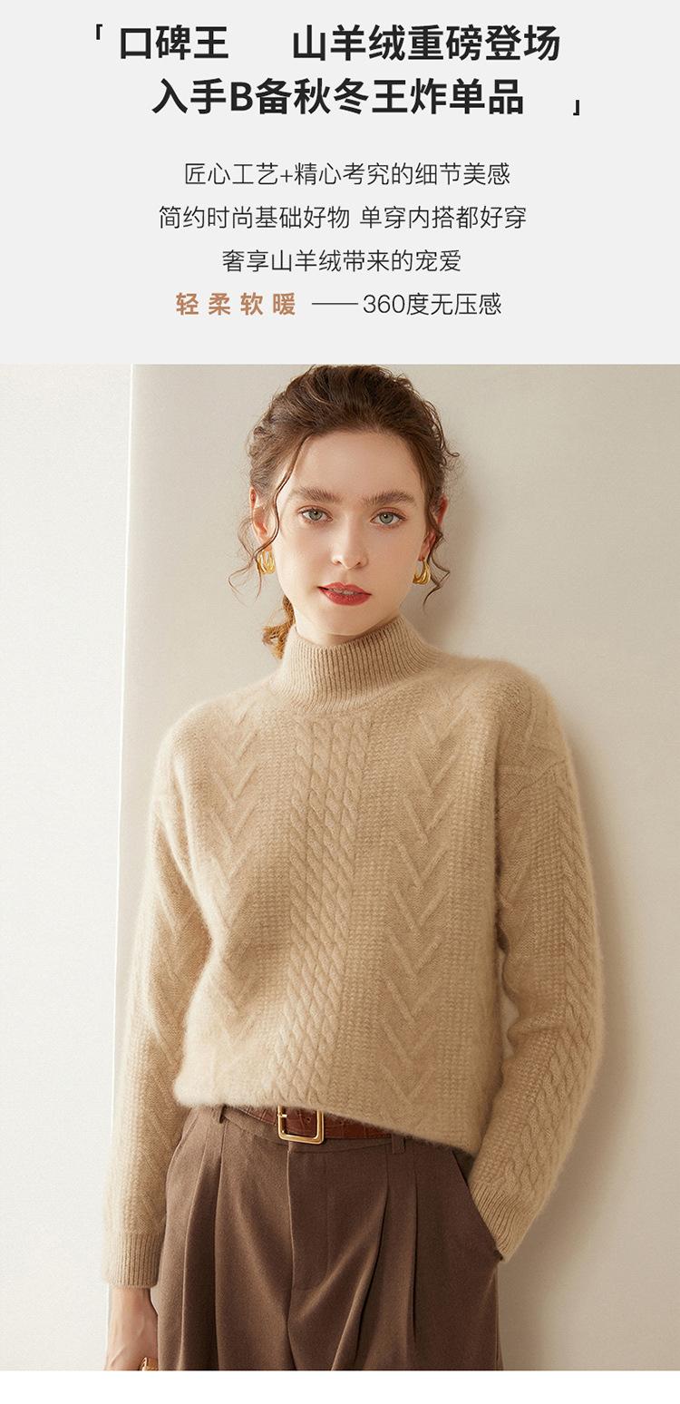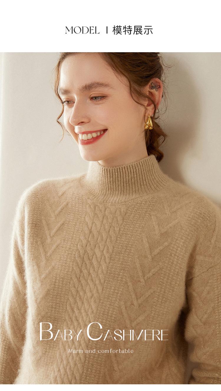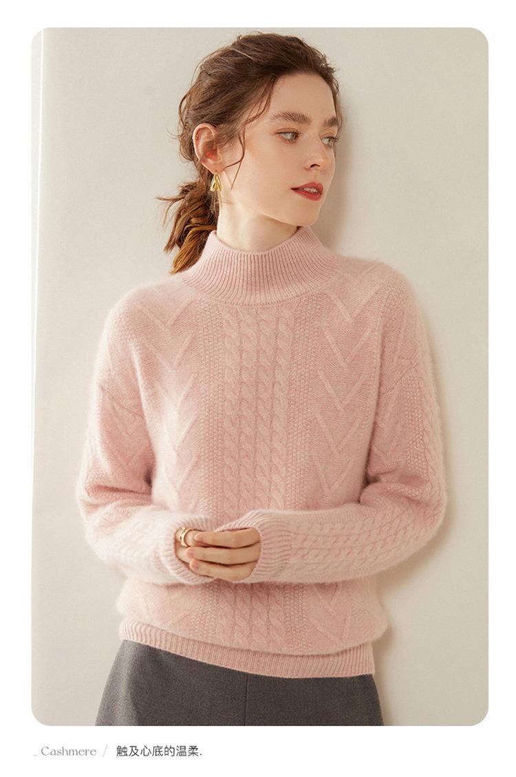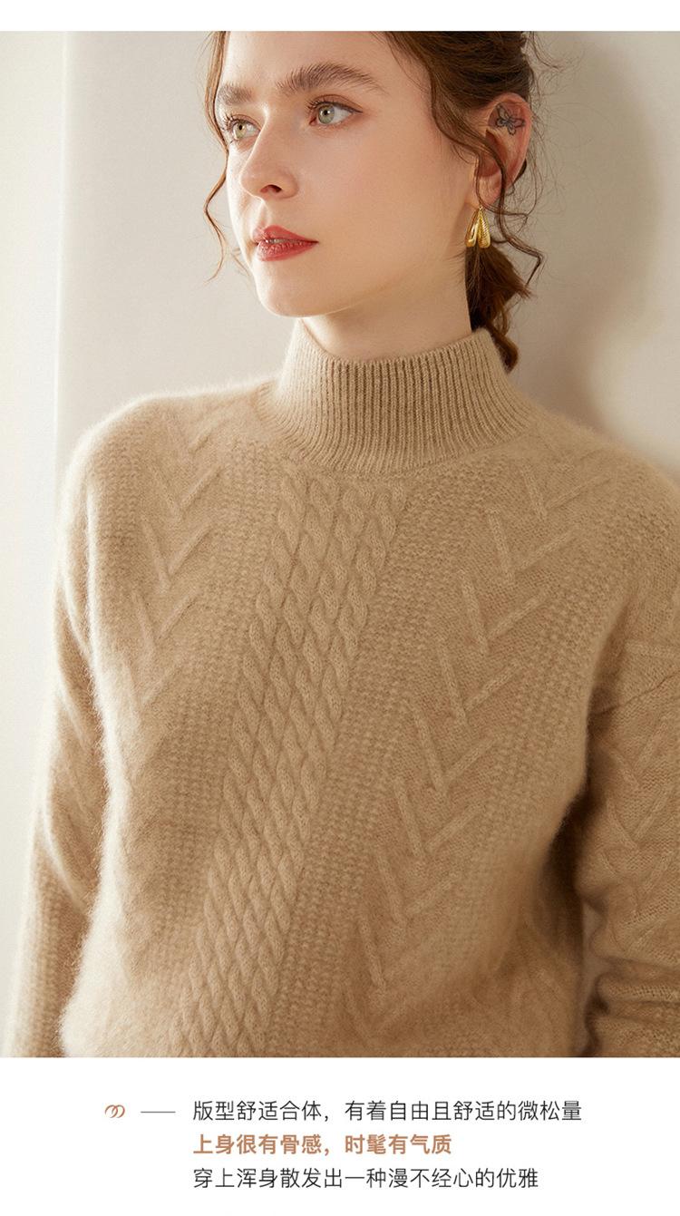 Otoño e Invierno 2024 Europa y Estados Unidos Transfronterizo Cuello alto Amazon Suéter para Mujer Tejido de Punto Trenzado Grueso Pesado Suéter Base Grueso