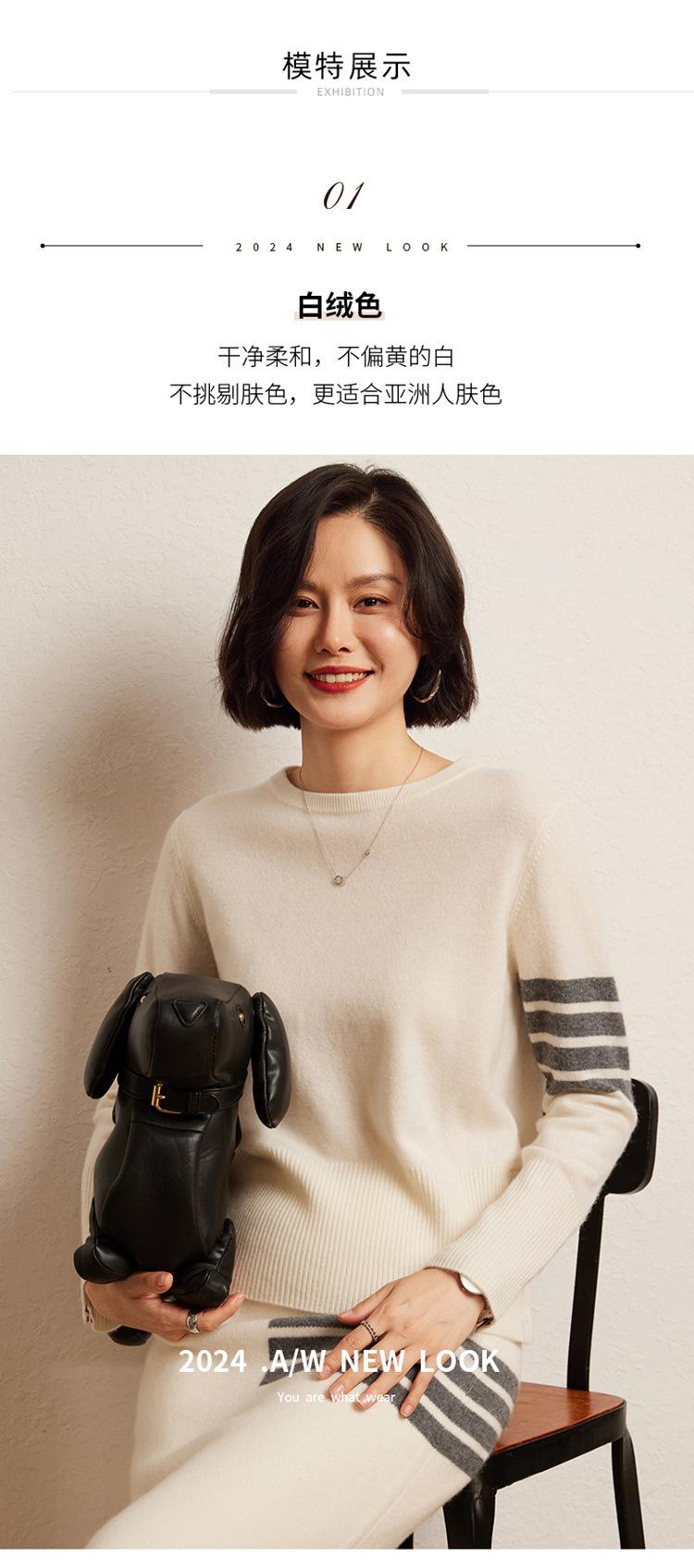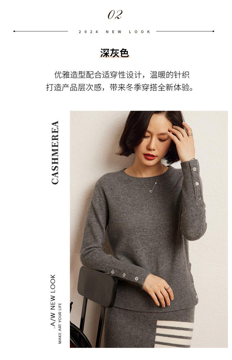 Suéter de cachemira de alta gama para mujer, otoño e invierno 2024, nuevo, corto, cuello redondo, suelto, estilo perezoso, tejido de punto, ajustado