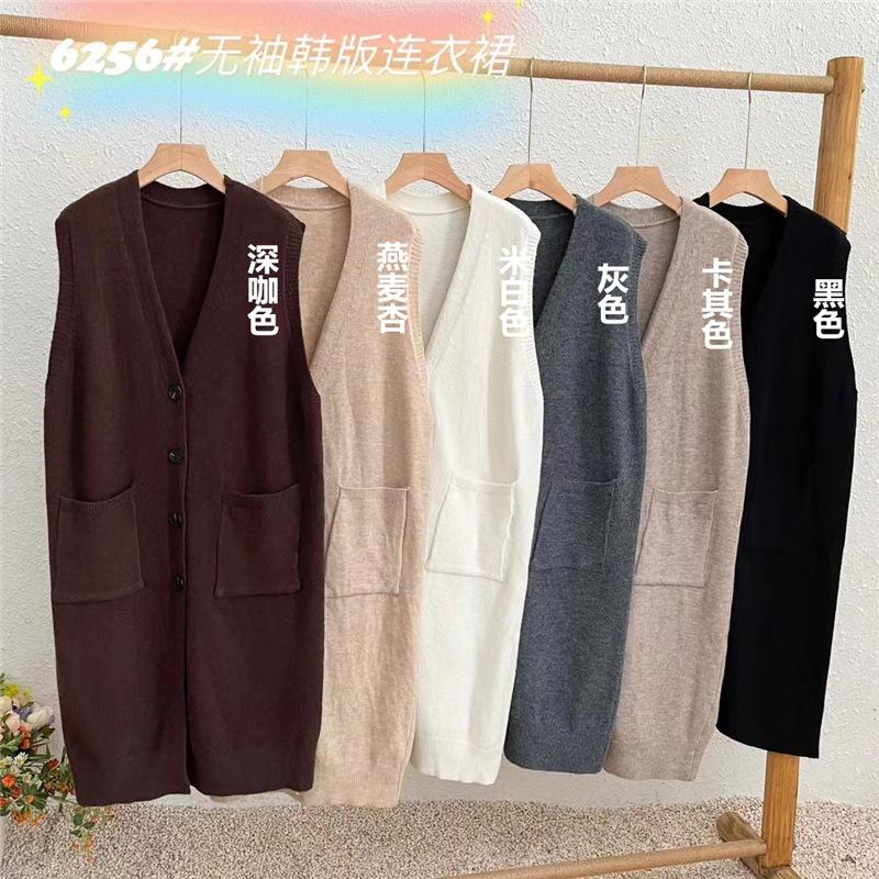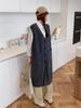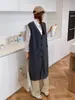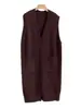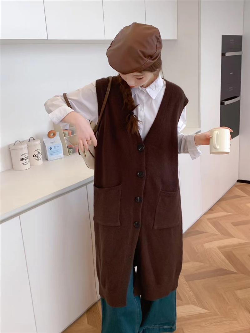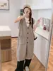Chaleco de punto largo con bolsillo para otoño e invierno, cárdigan coreano holgado sin mangas, abrigo para mujer, 2024