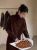 Suéter de cuello alto estilo francés para mujer, estilo holgazán, cárdigan de lana básica de punto grueso, chaqueta cárdigan corta, suéter de lana de color sólido