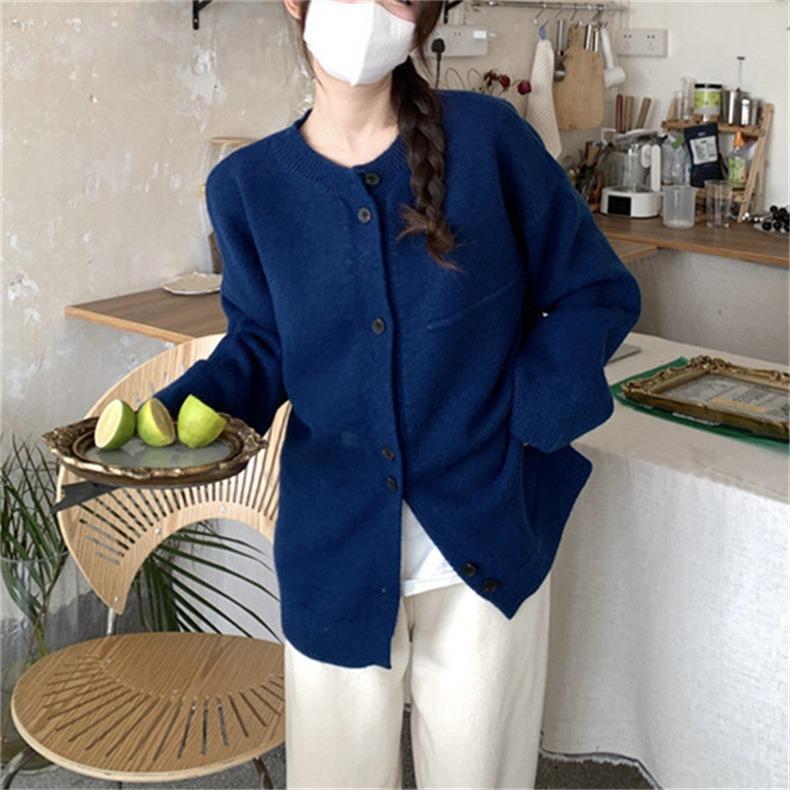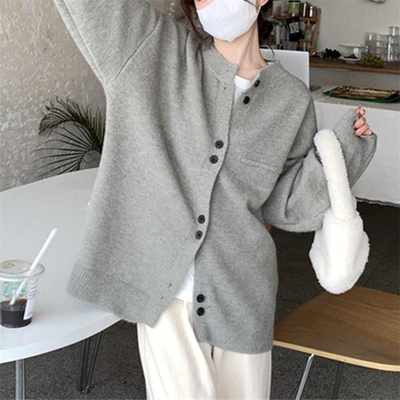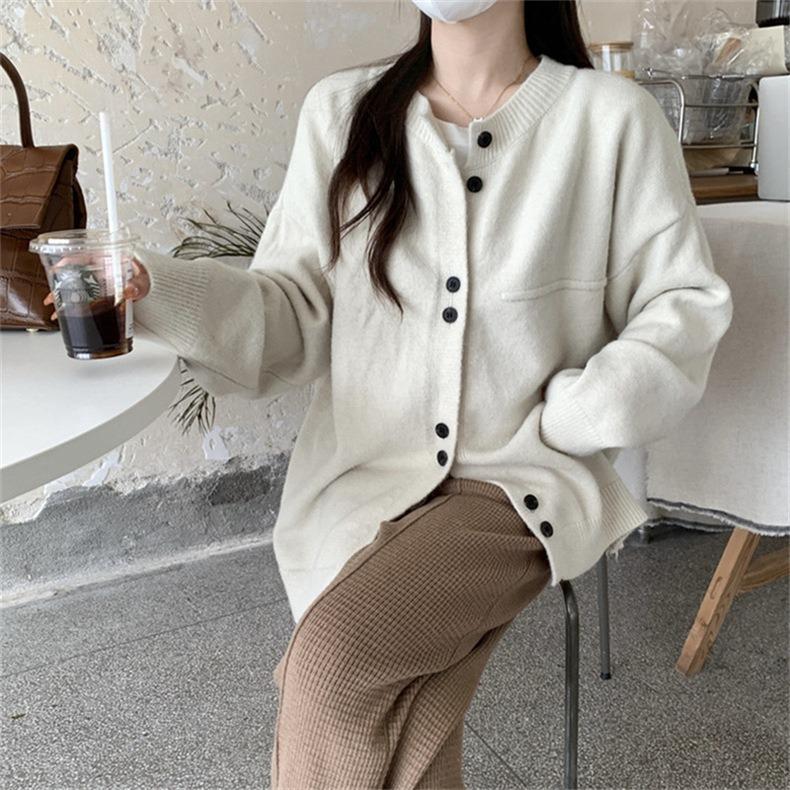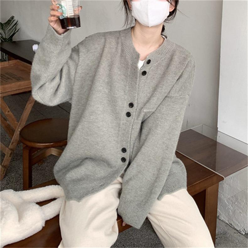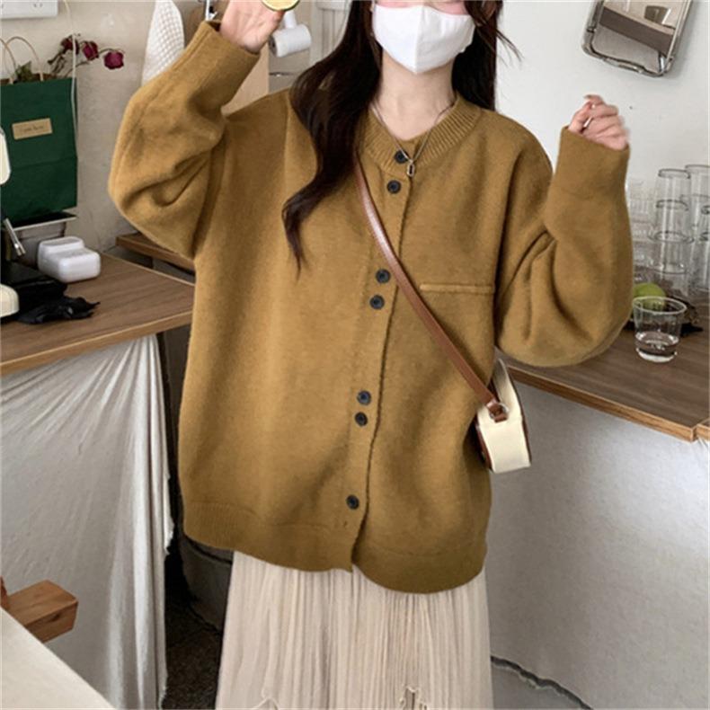Cárdigan de Punto de Color Sólido Estilo Holgado Perezoso Estilo Japonés Otoño e Invierno Suave Cera Chaqueta Suéter Diseño Top de Moda Trendy