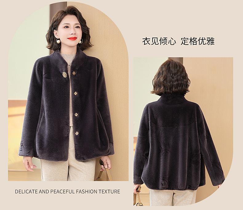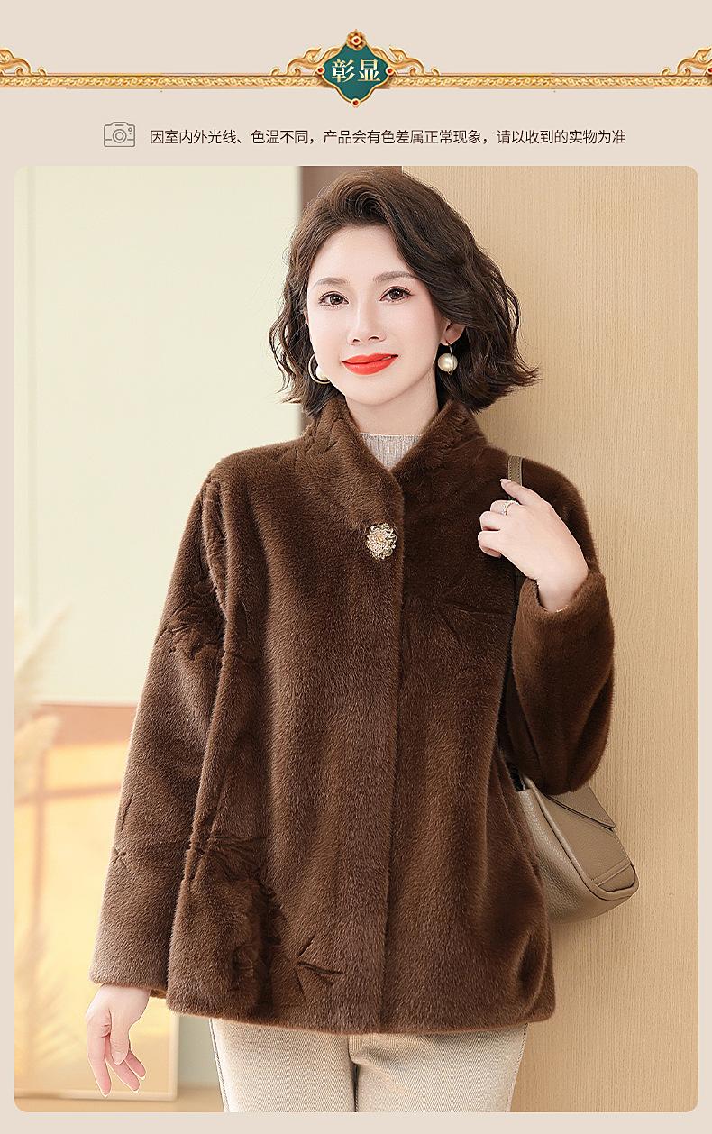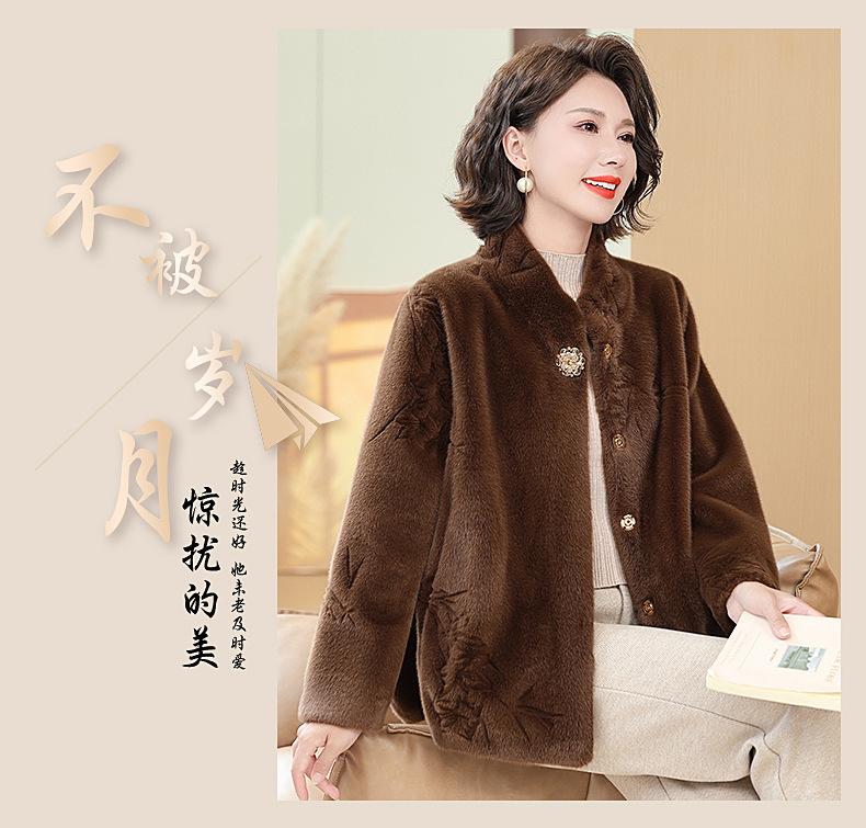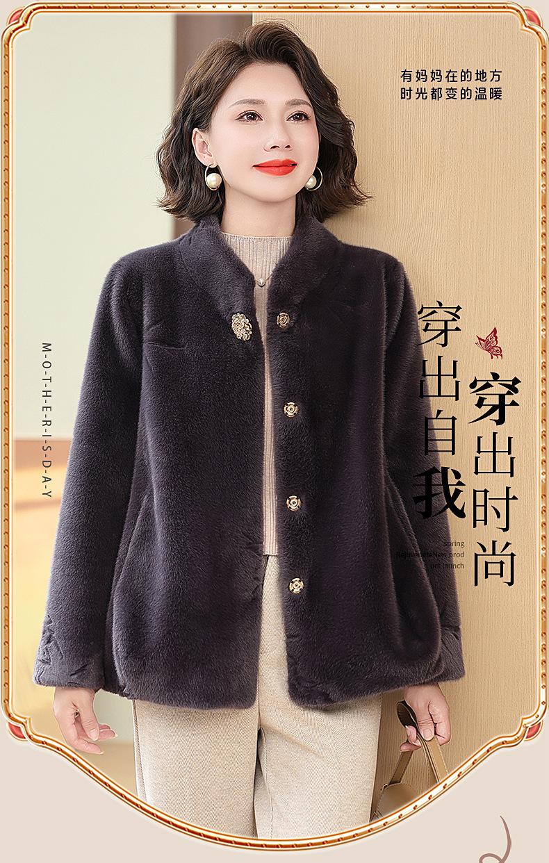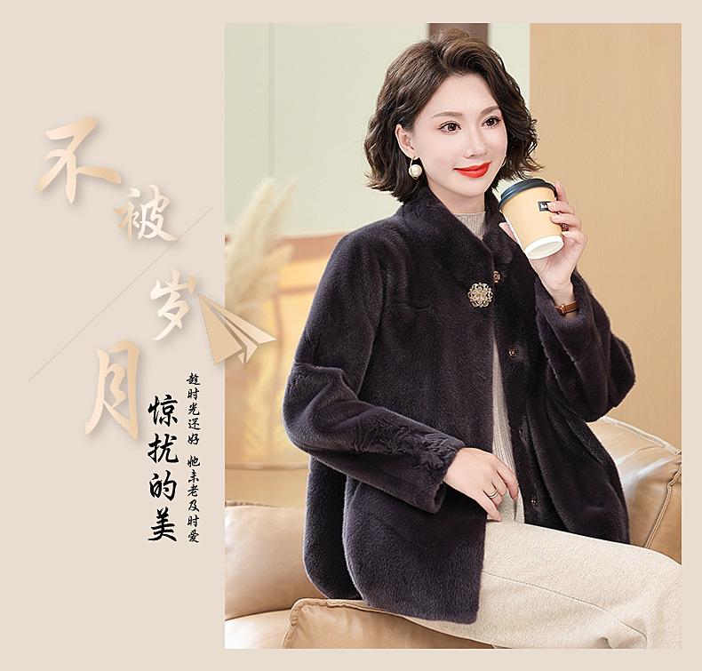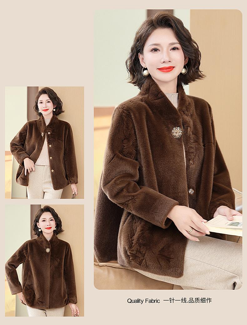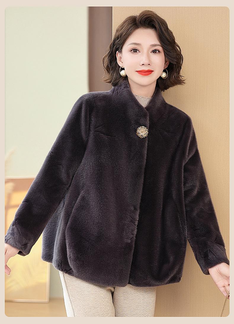 Abrigo de imitación de piel para madre de mediana edad al por mayor 2024 invierno nuevo dama rica estilo occidental abrigo corto de imitación de visón terciopelo para mujer