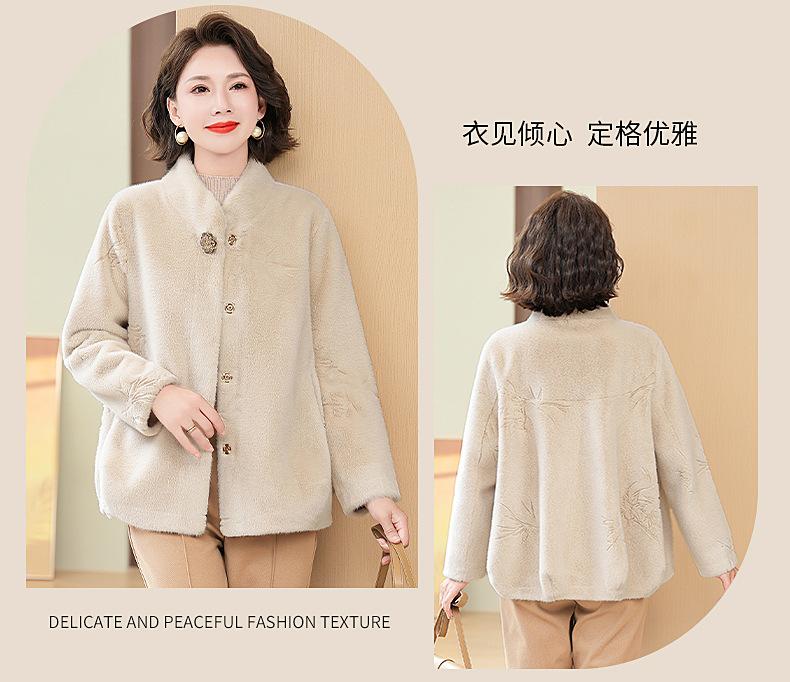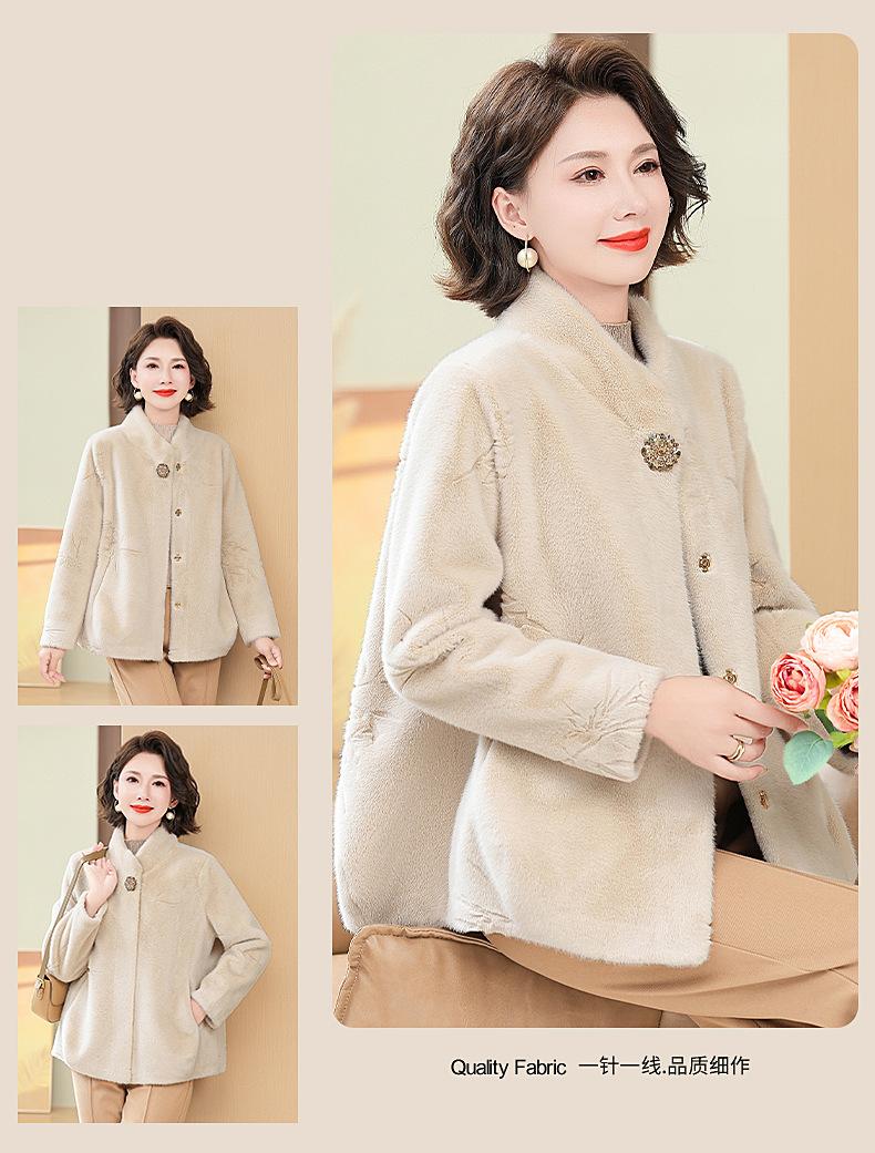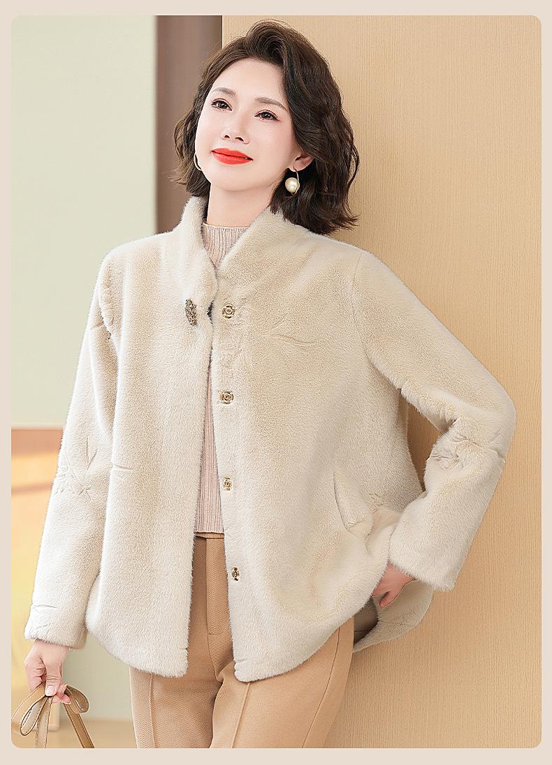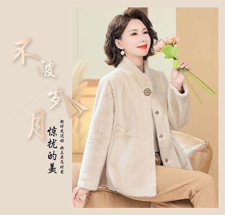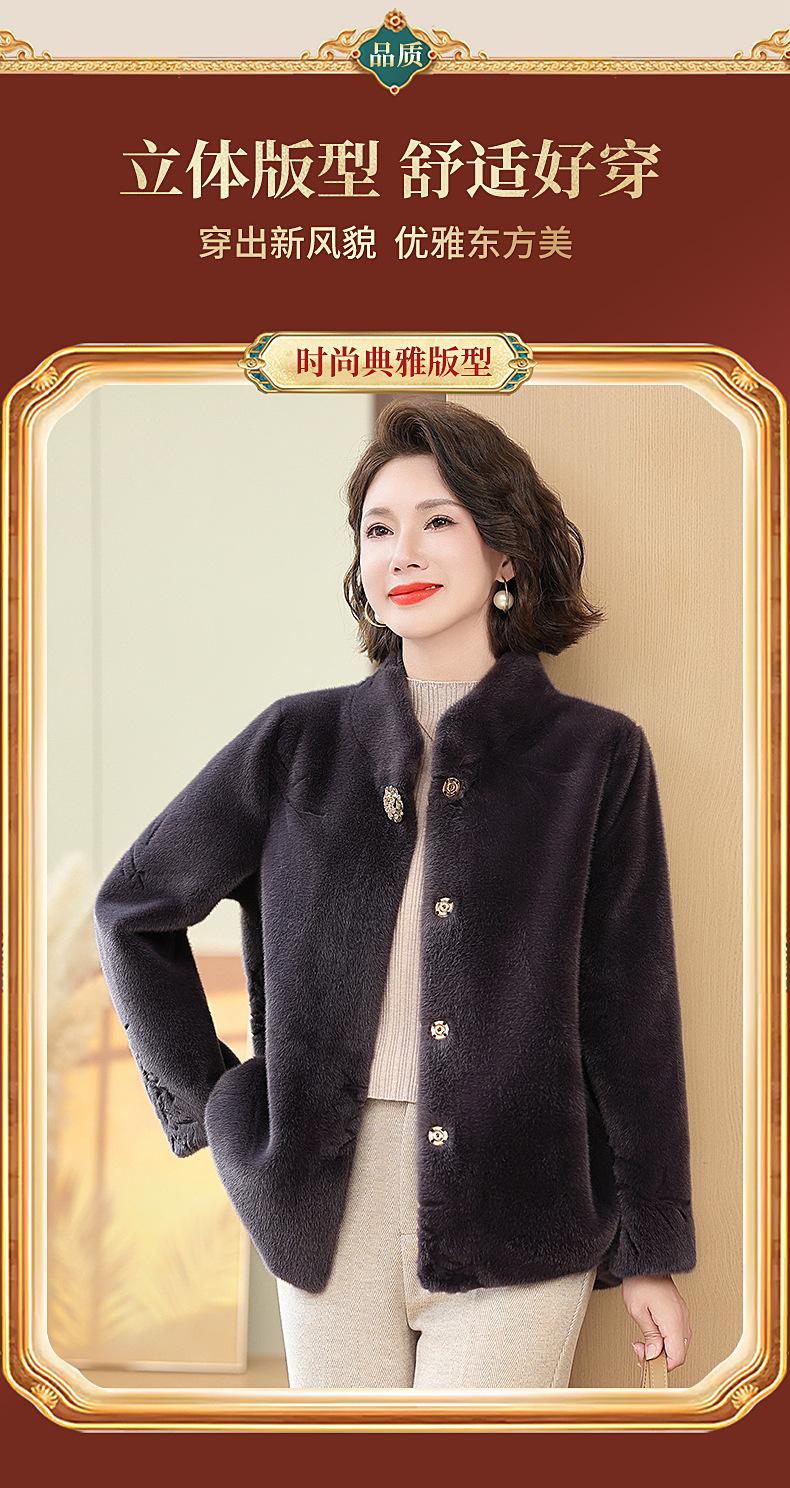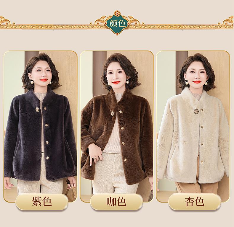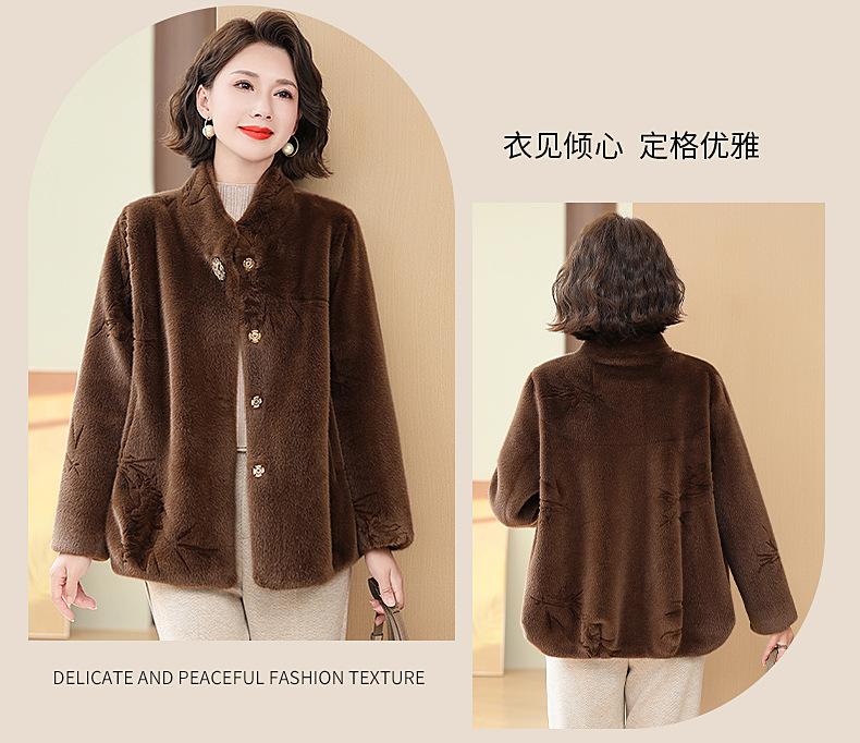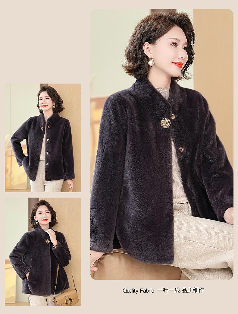 Abrigo de imitación de piel para madre de mediana edad al por mayor 2024 invierno nuevo dama rica estilo occidental abrigo corto de imitación de visón terciopelo para mujer