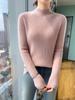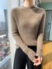 Suéter de punto de lana pura con cuello medio alto para mujer, otoño e invierno, nuevo, combinable, ajustado, con base de lana, manga larga