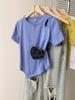 Camiseta de manga curta irregular de ombro de algodão puro Slim-fit feminino Design de verão nicho plissado elegante blusa curta