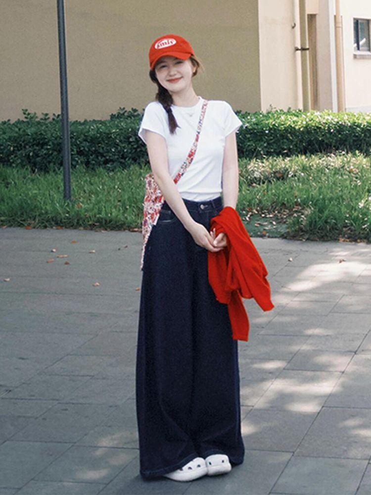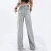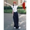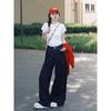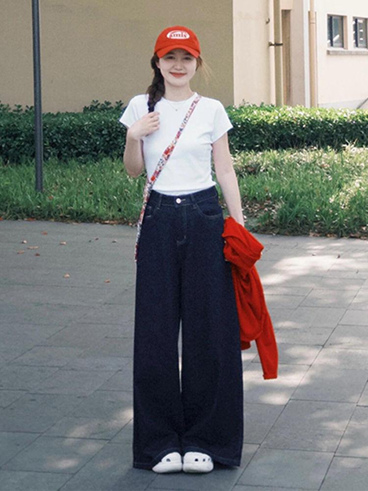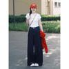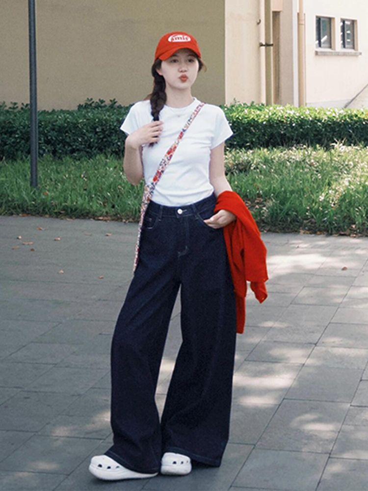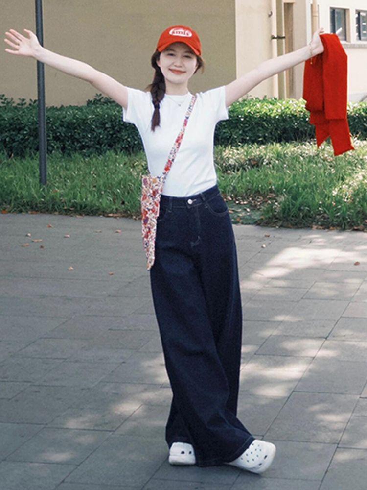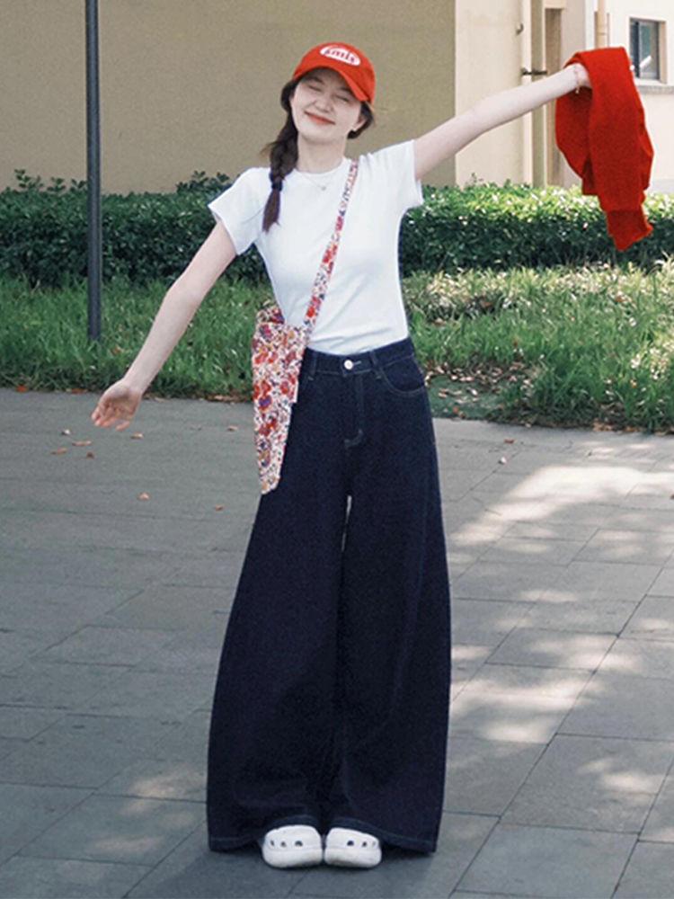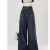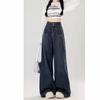 Pantalones vaqueros azul oscuro de cintura alta para mujer, de primavera y otoño, holgados, de pierna ancha, de talla grande, con forma de pera, estilo retro y recto.