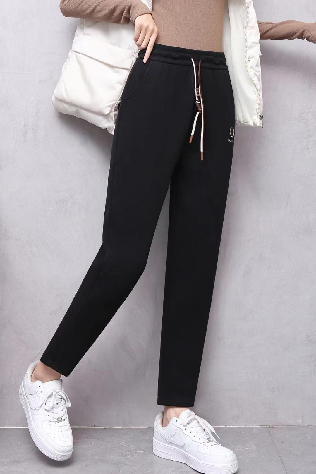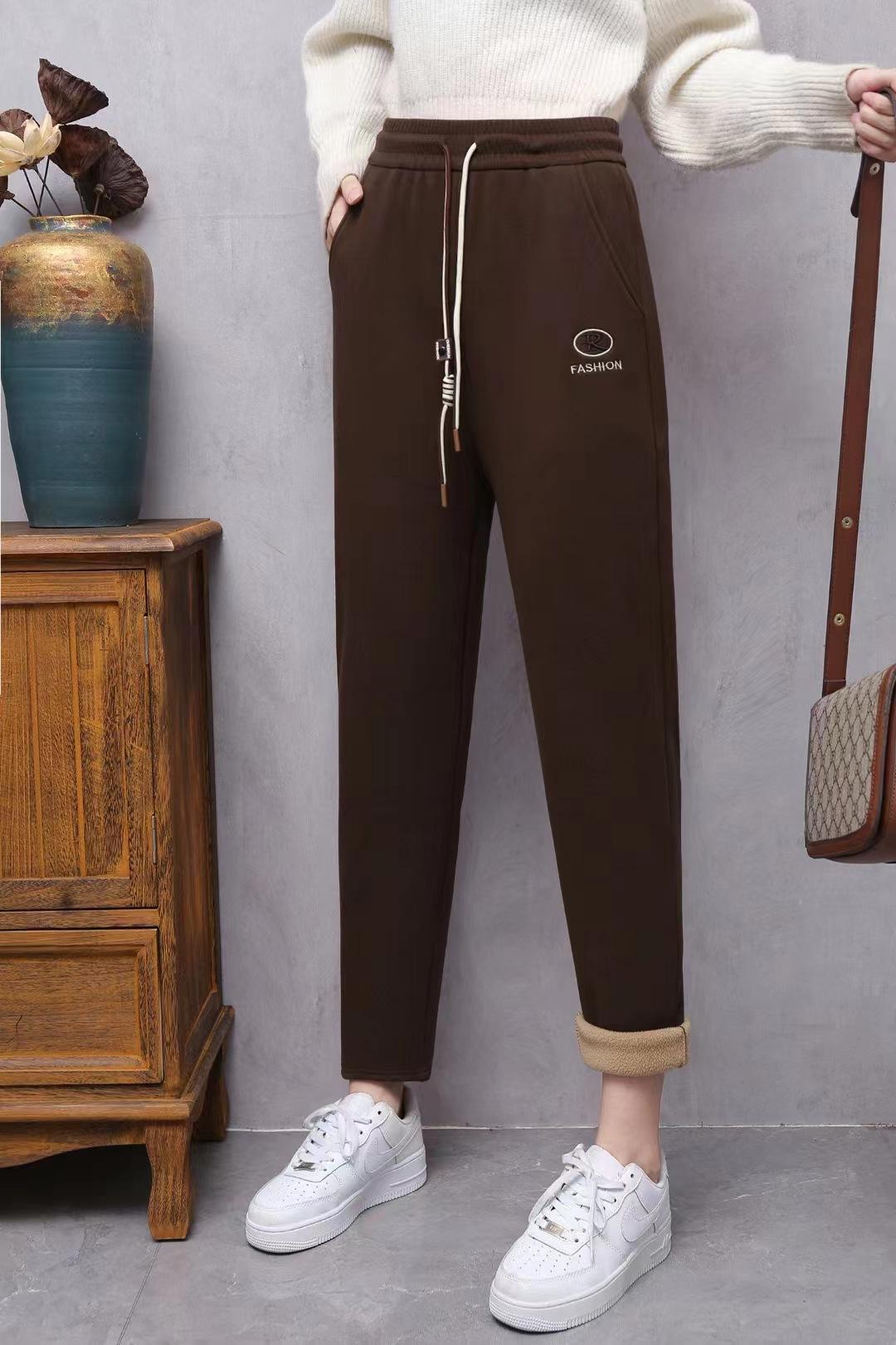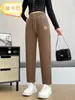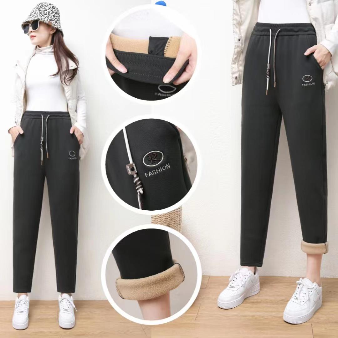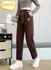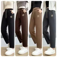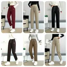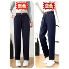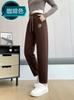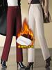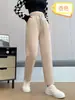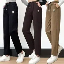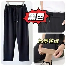 Pantalones casuales nuevos de otoño e invierno de talla grande engrosados con forro polar, pantalones casuales adelgazantes de cintura alta para mujer, pantalones rectos a prueba de viento para mamá