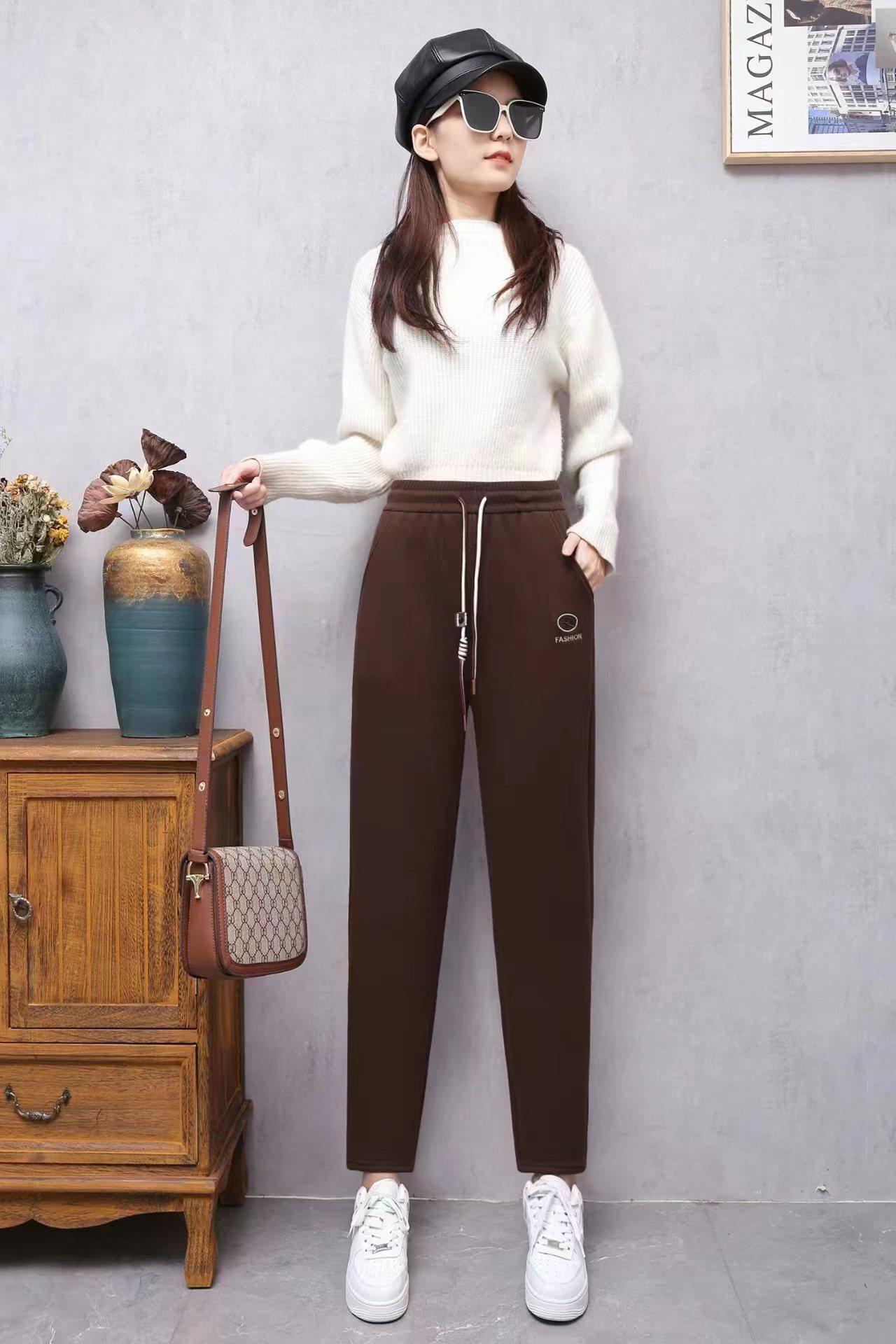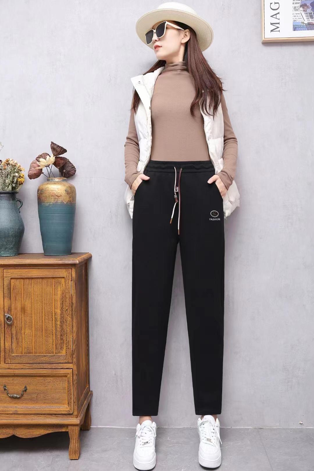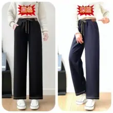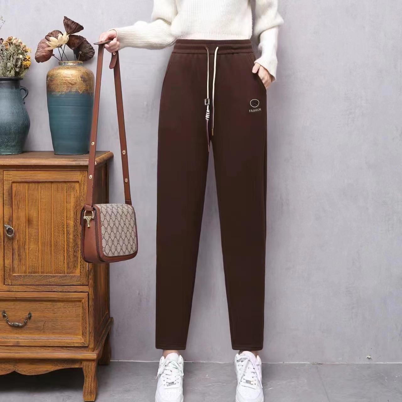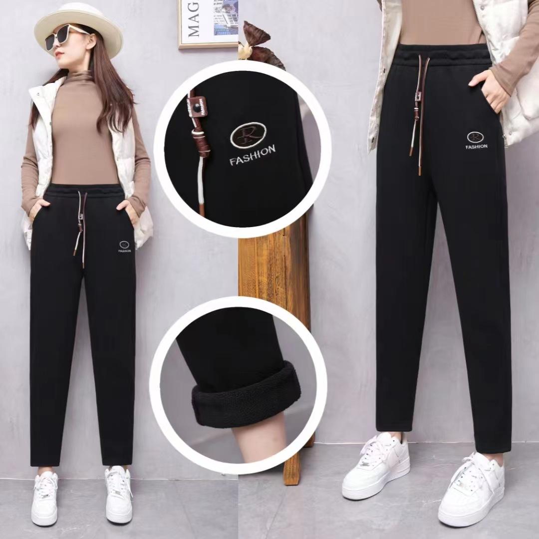Pantalones casuales nuevos de otoño e invierno de talla grande engrosados con forro polar, pantalones casuales adelgazantes de cintura alta para mujer, pantalones rectos a prueba de viento para mamá