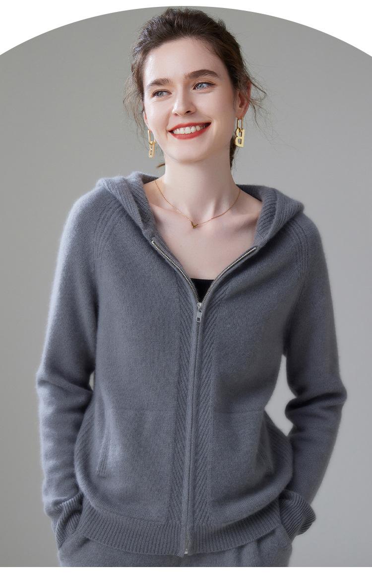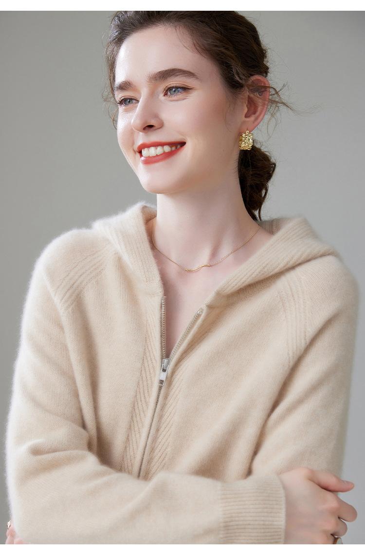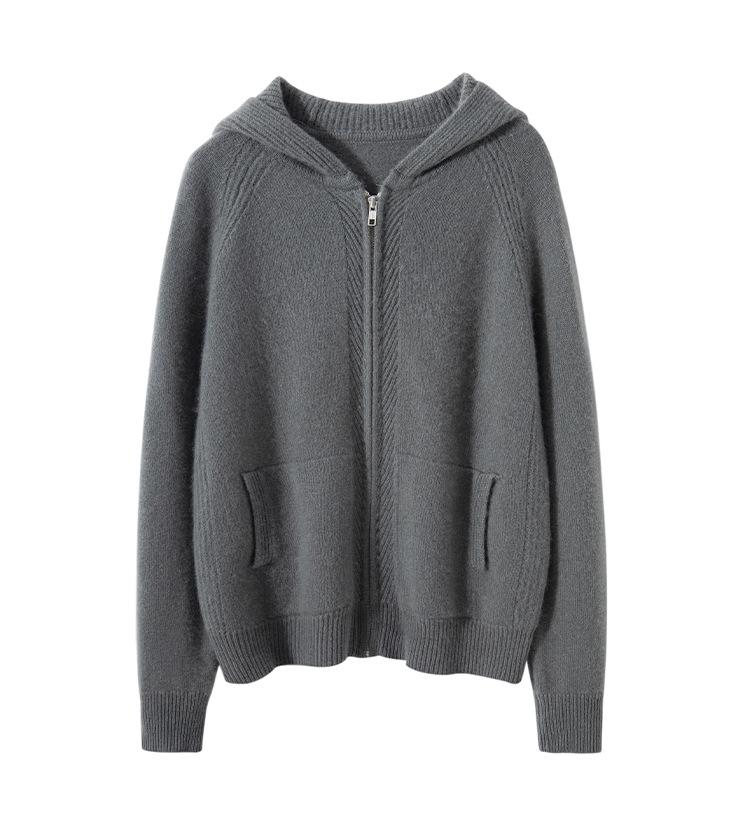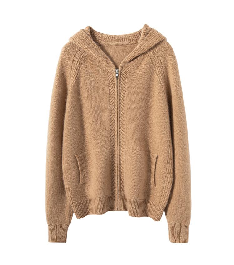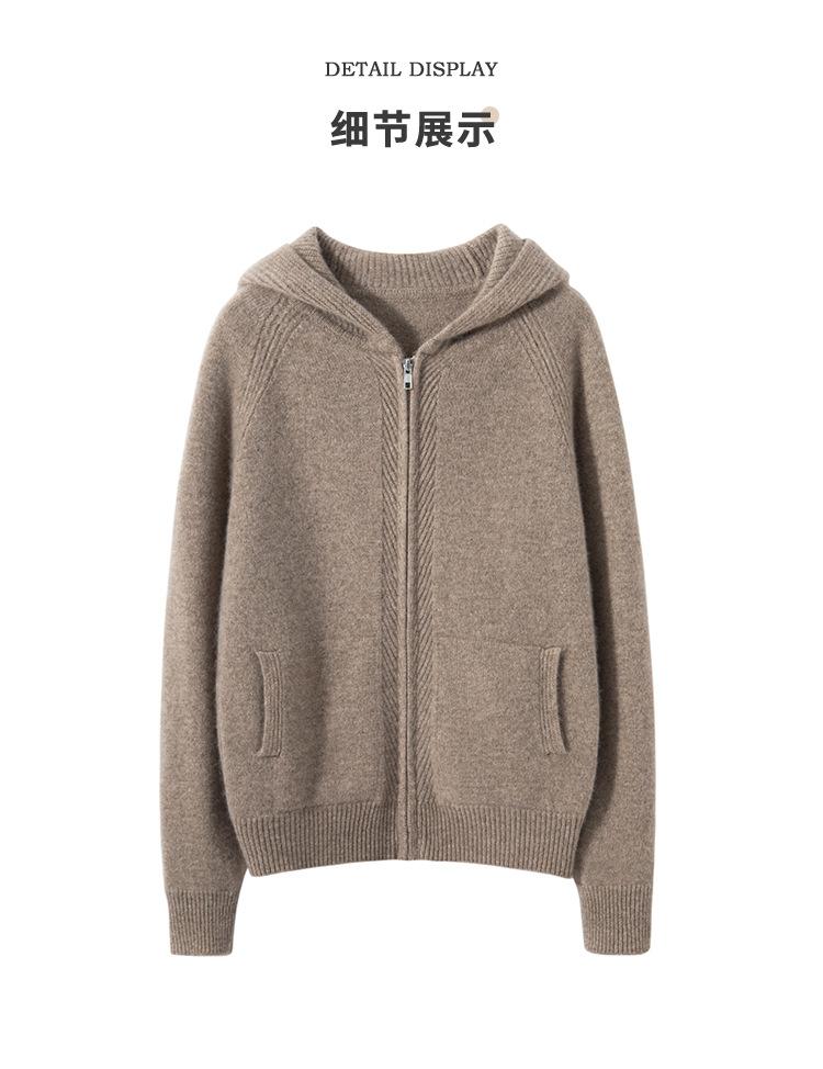 Cárdigan de Punto Grueso para Mujer Otoño e Invierno 2023 Estilo Deportivo con Capucha Casual Color Claro Suelto Casual Reductor de Edad
