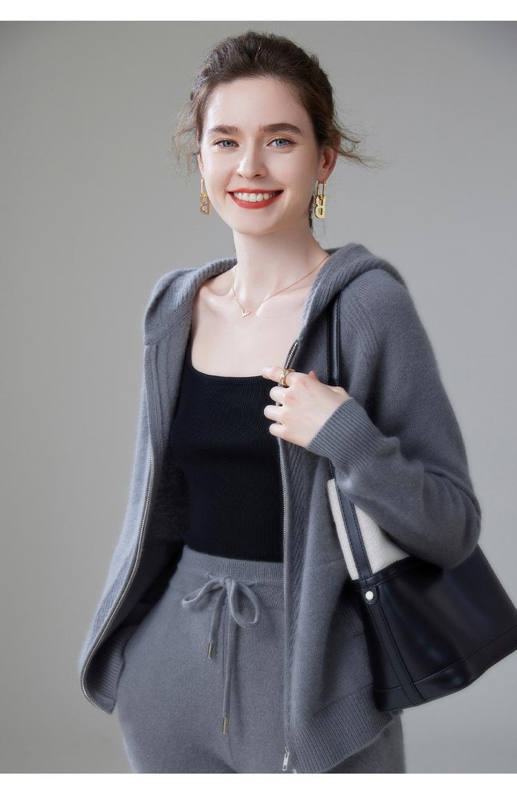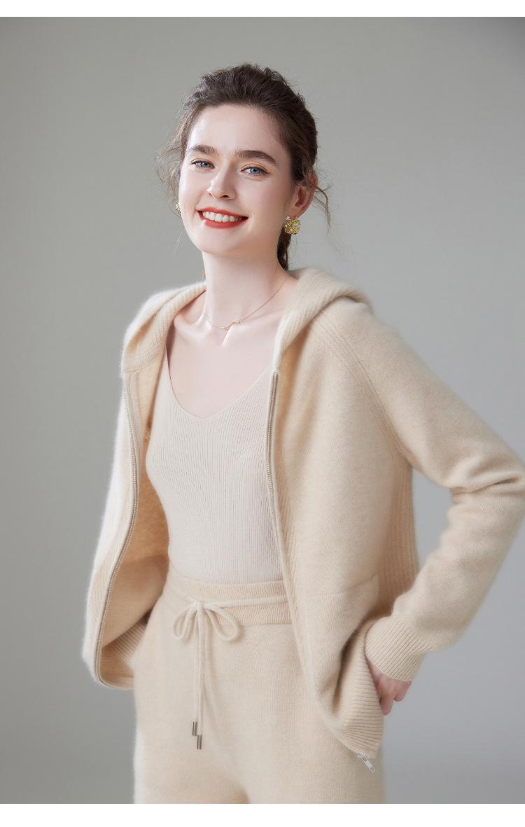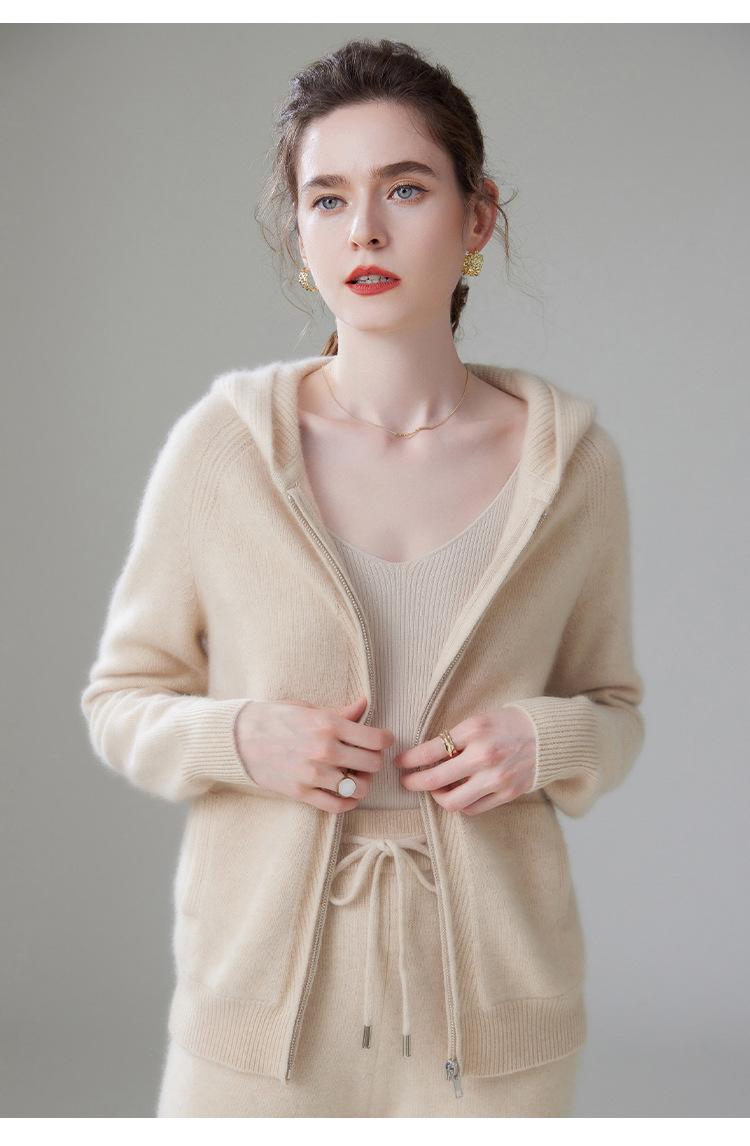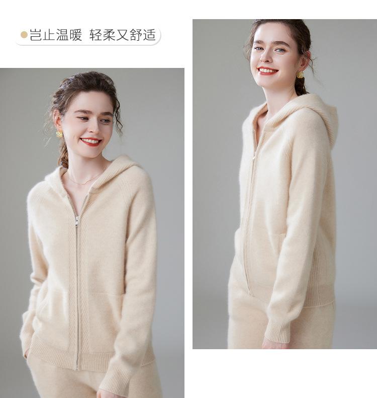 Cárdigan de Punto Grueso para Mujer Otoño e Invierno 2023 Estilo Deportivo con Capucha Casual Color Claro Suelto Casual Reductor de Edad