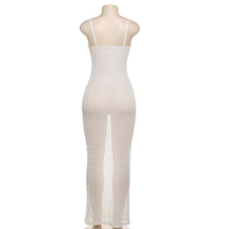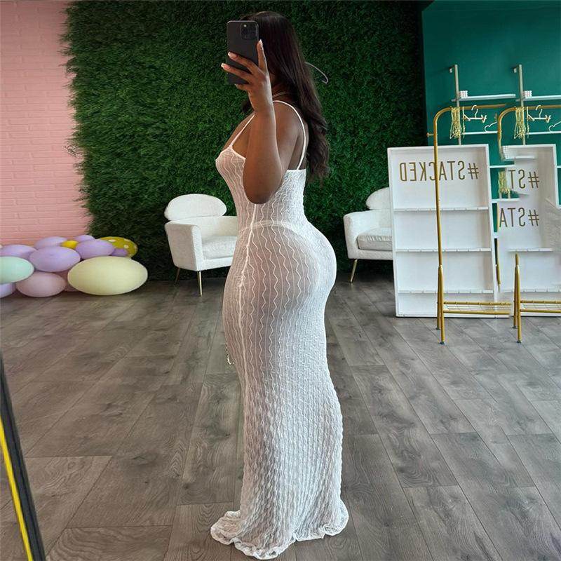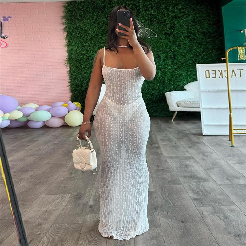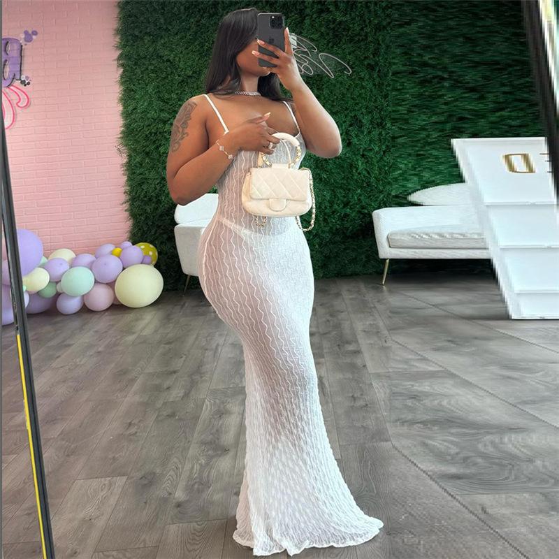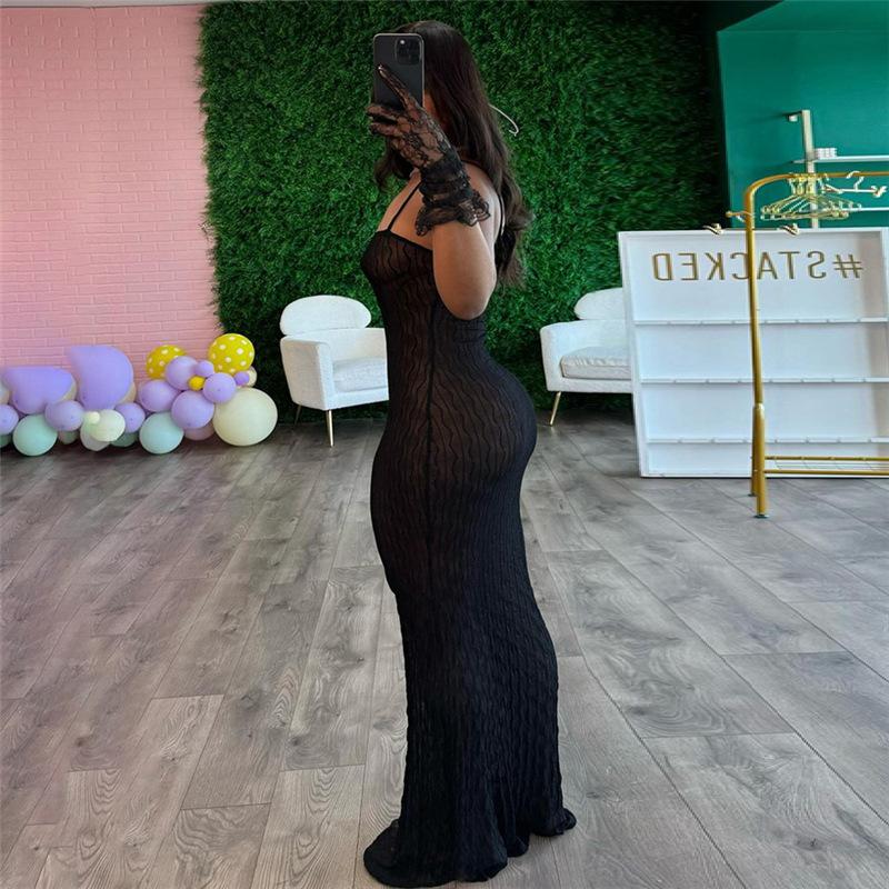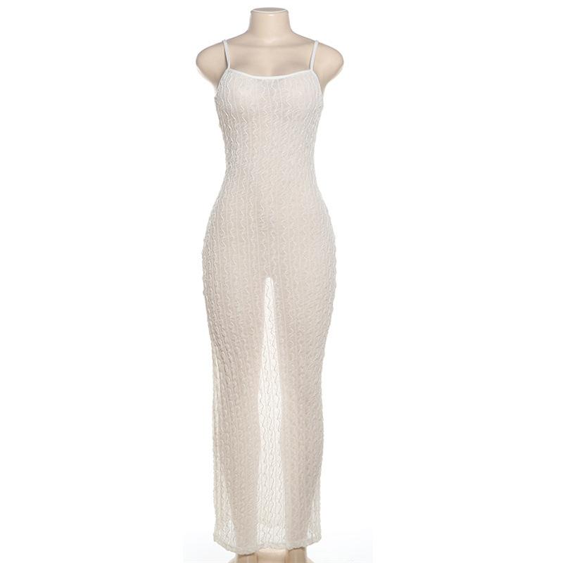 Vestido de verano 2024 estilo europeo y americano con tirantes, sexy, de corte bajo, transparente, sin espalda, ajustado, de color puro