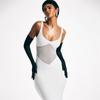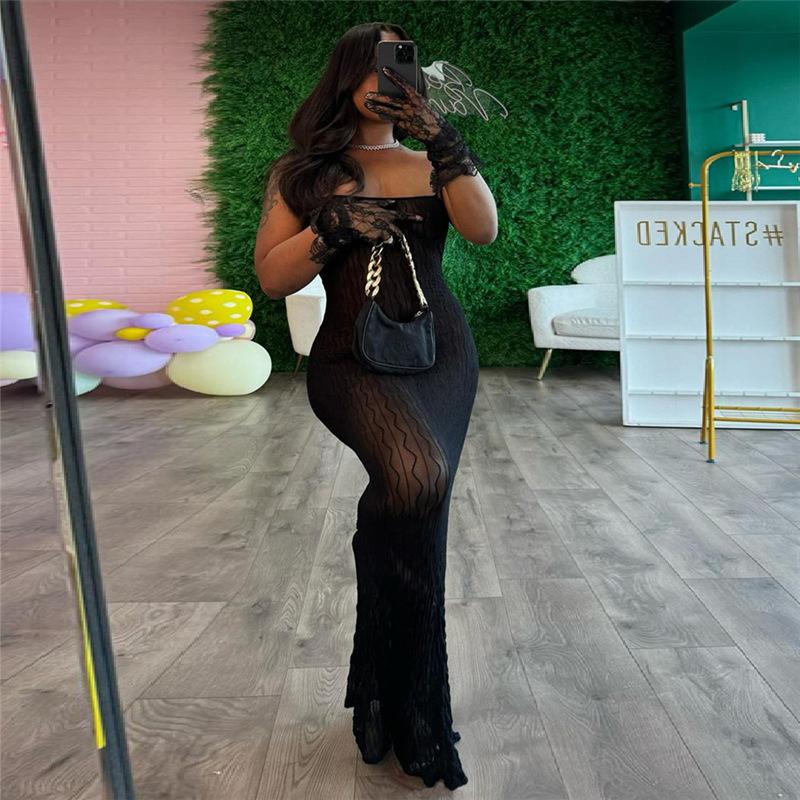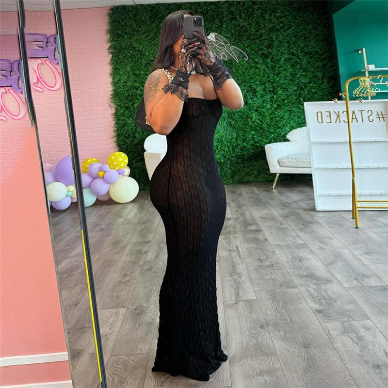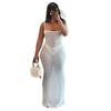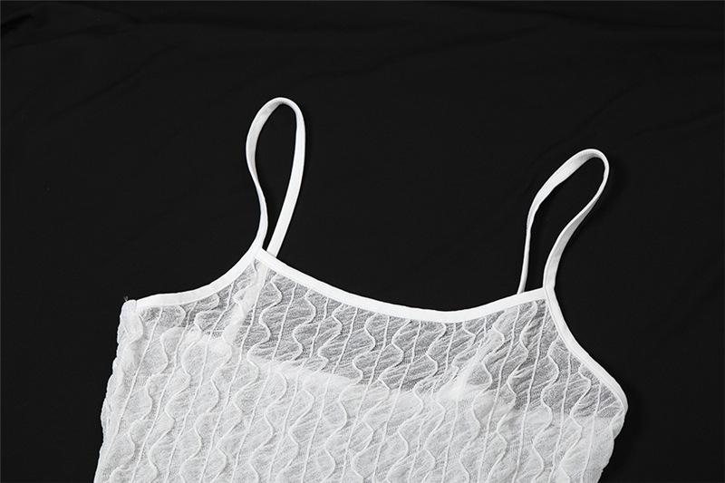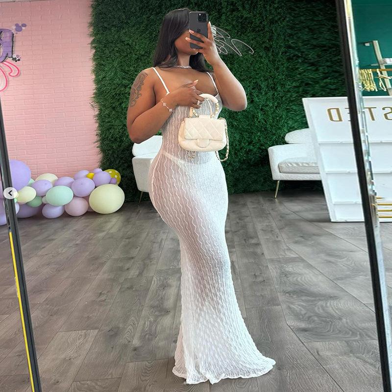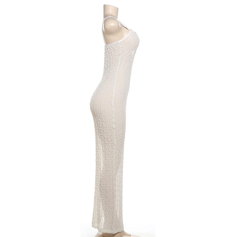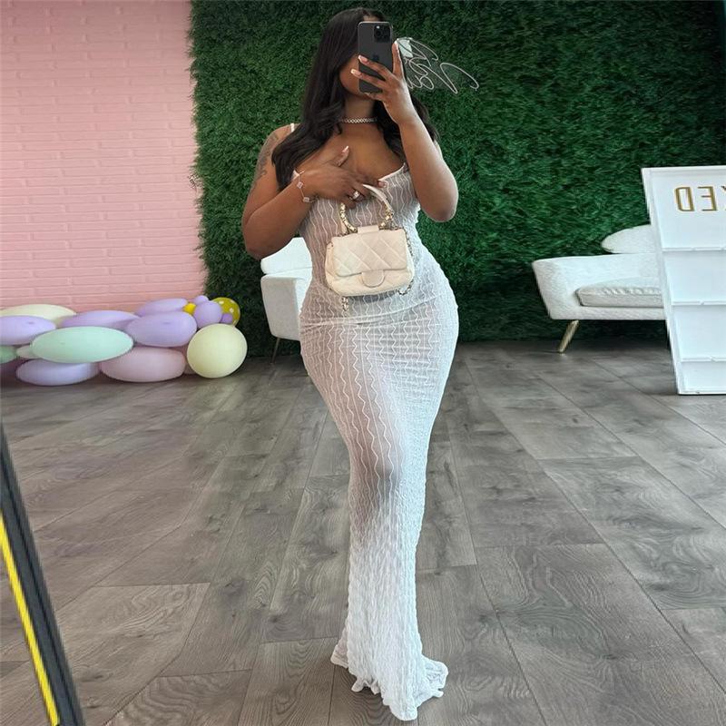 Vestido de verano 2024 estilo europeo y americano con tirantes, sexy, de corte bajo, transparente, sin espalda, ajustado, de color puro
