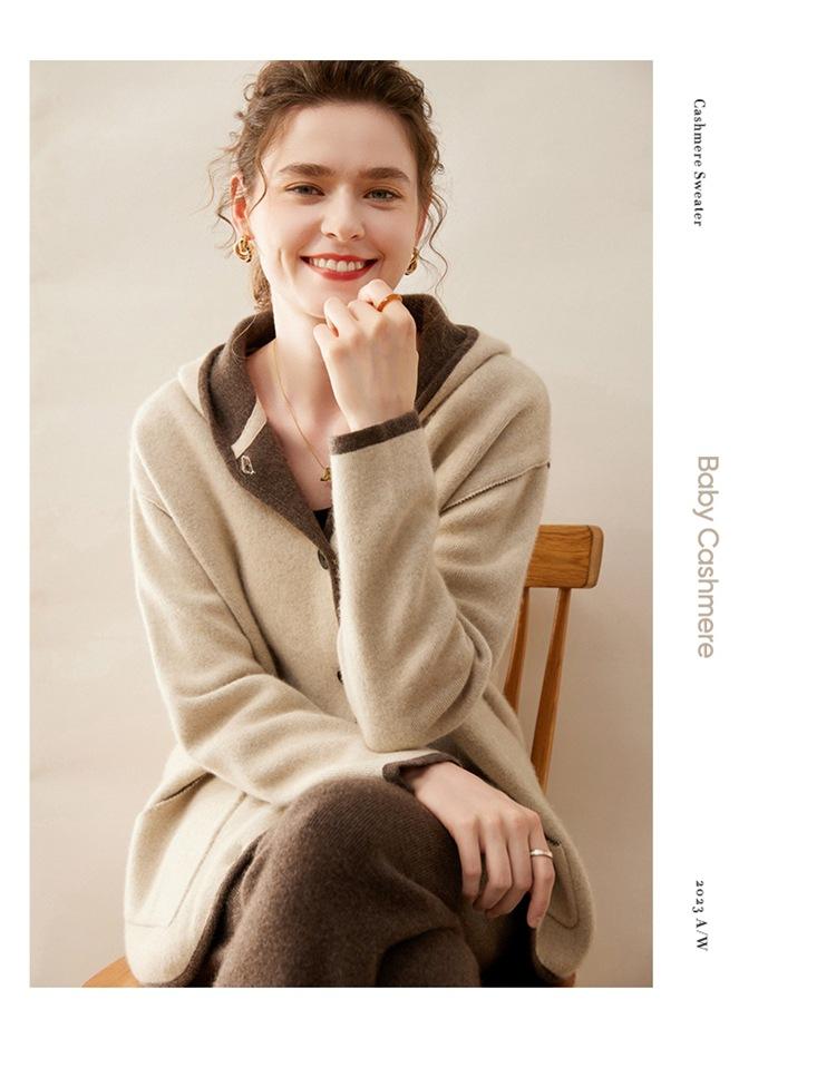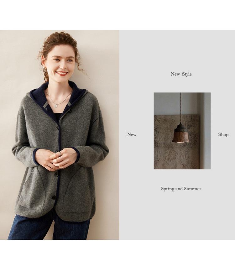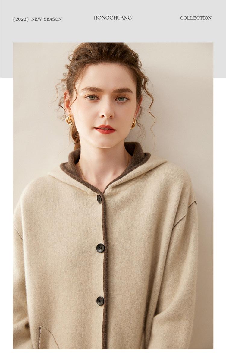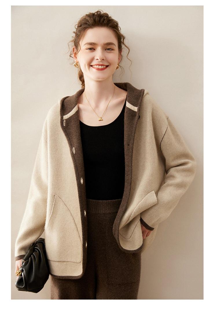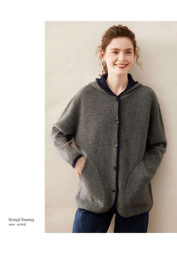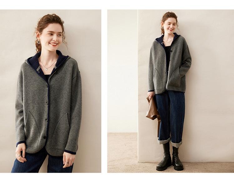 Chaqueta con capucha y bloques de color, gruesa y con capas de aire, holgada e informal, de punto con hebilla de cachemira para mujer, otoño e invierno, nueva