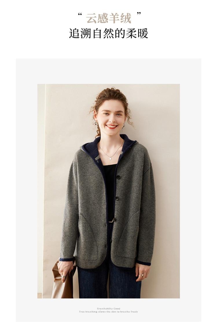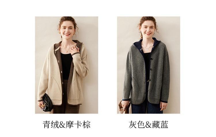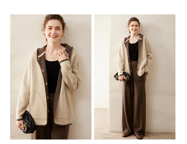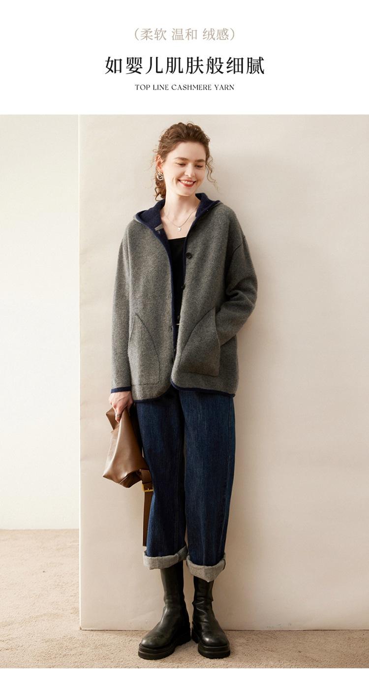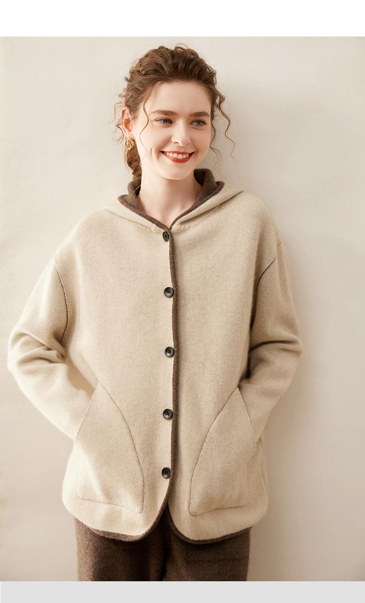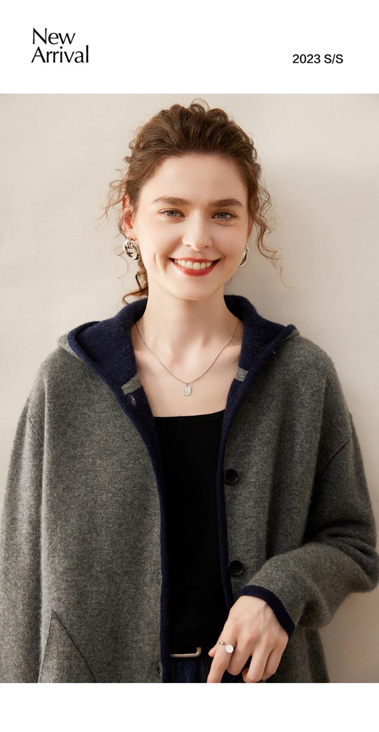 Chaqueta con capucha y bloques de color, gruesa y con capas de aire, holgada e informal, de punto con hebilla de cachemira para mujer, otoño e invierno, nueva