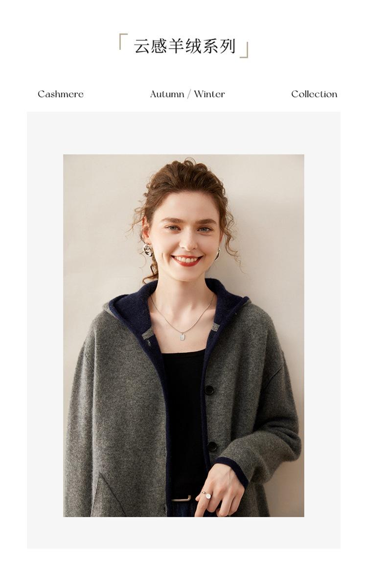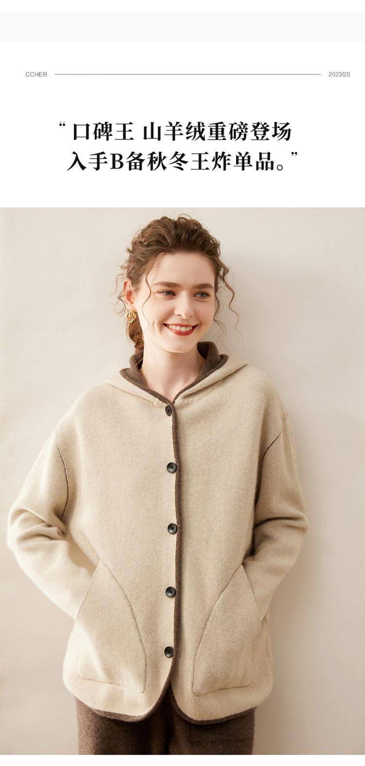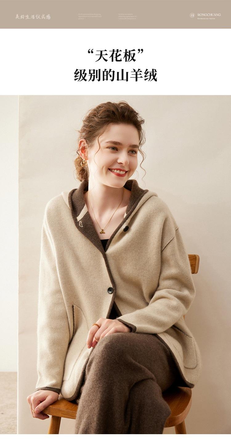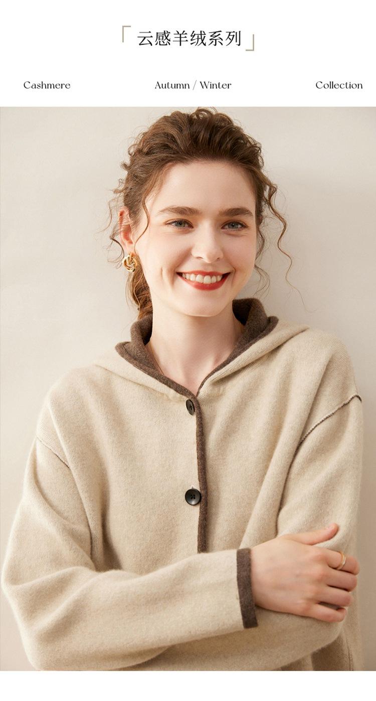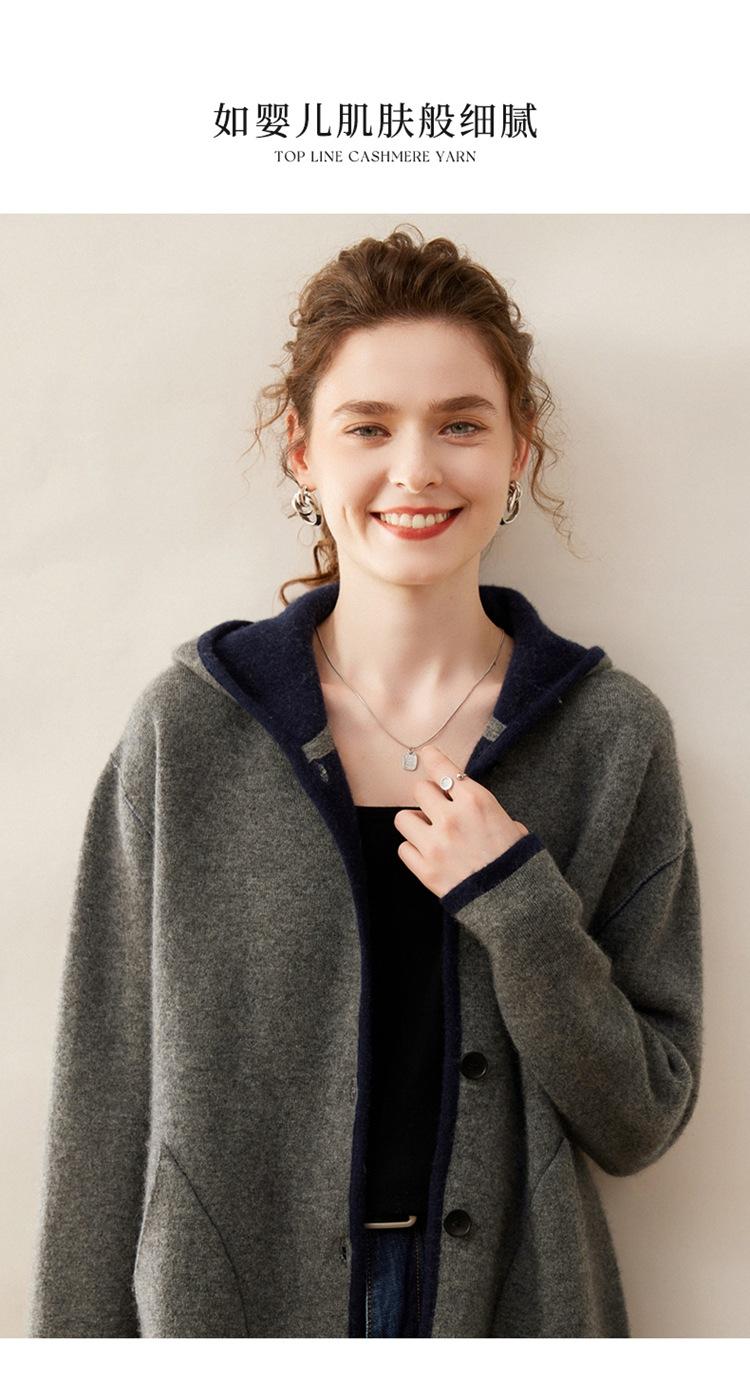 Chaqueta con capucha y bloques de color, gruesa y con capas de aire, holgada e informal, de punto con hebilla de cachemira para mujer, otoño e invierno, nueva
