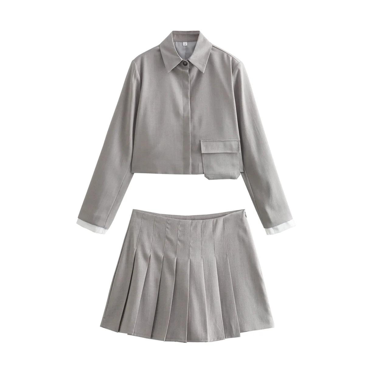 Comercio exterior transfronterizo de Amazon, ropa de mujer europea y americana, verano 2024, nuevo bolso de parche, abrigo corto, falda ancha plisada, traje