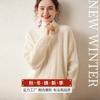 Suéter de cachemira de montaña con cuello redondo para otoño e invierno, suéter de base de lana para mujer, suéter de punto simple y suelto de color sólido, básico