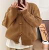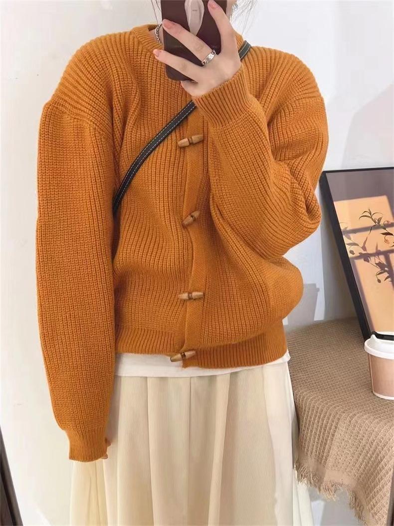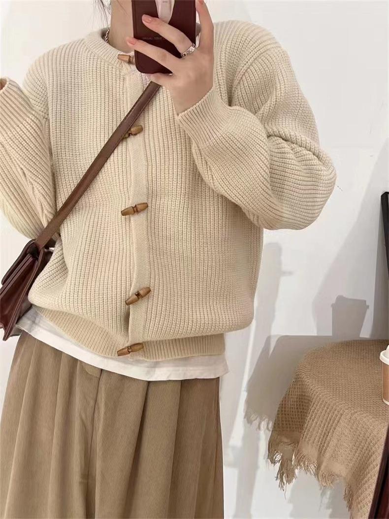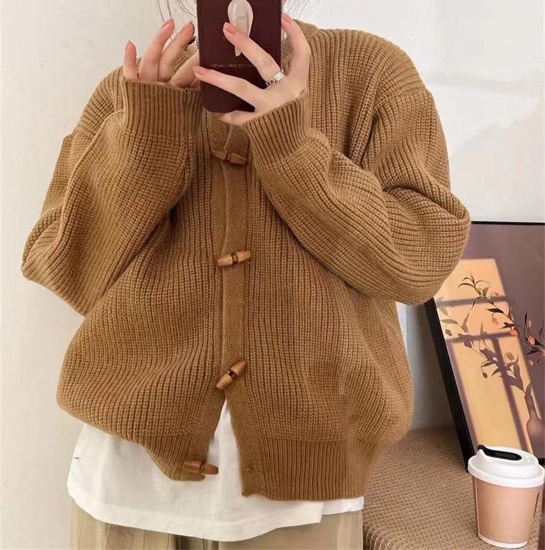 Chaqueta Cárdigan de Punto Holgada y Moderna con Botones de Bocina Retro para Mujer en Otoño e Invierno Estilo Coreano Estilo Perezoso Moda