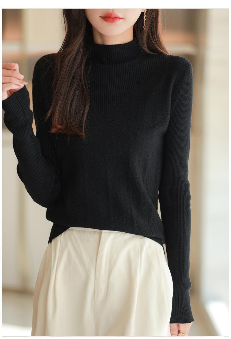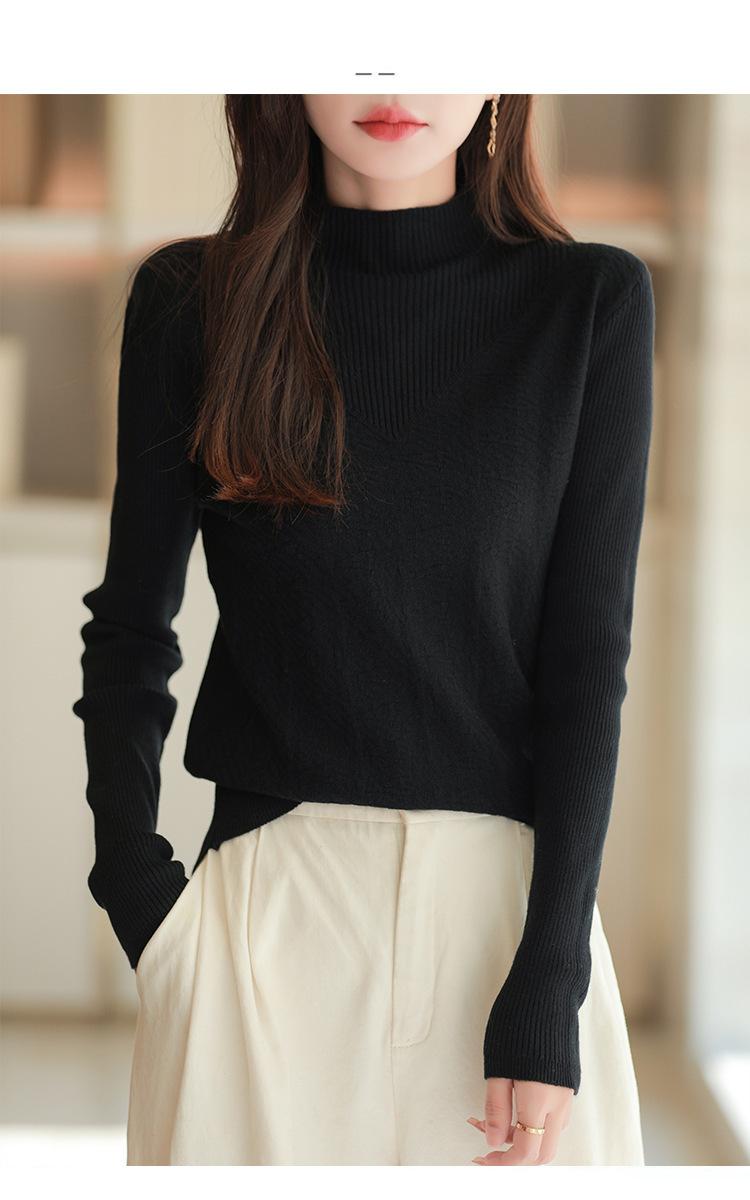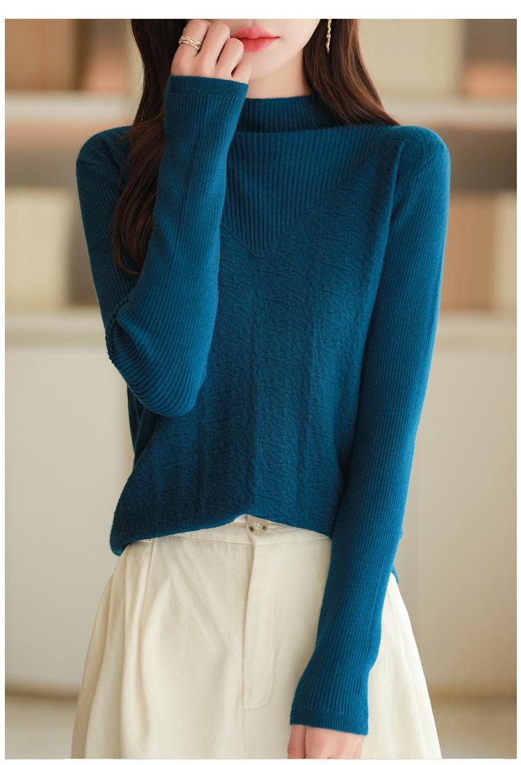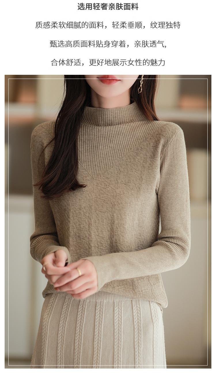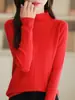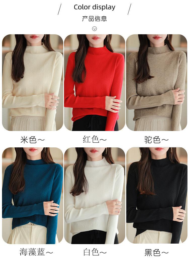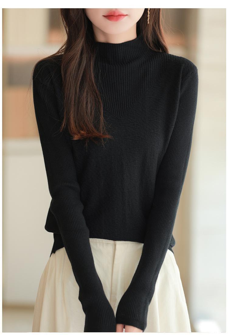 Suéter de cuello alto con media manga y cuello alto para mujer, jersey de punto de color liso, ajustado, para otoño e invierno, nuevo