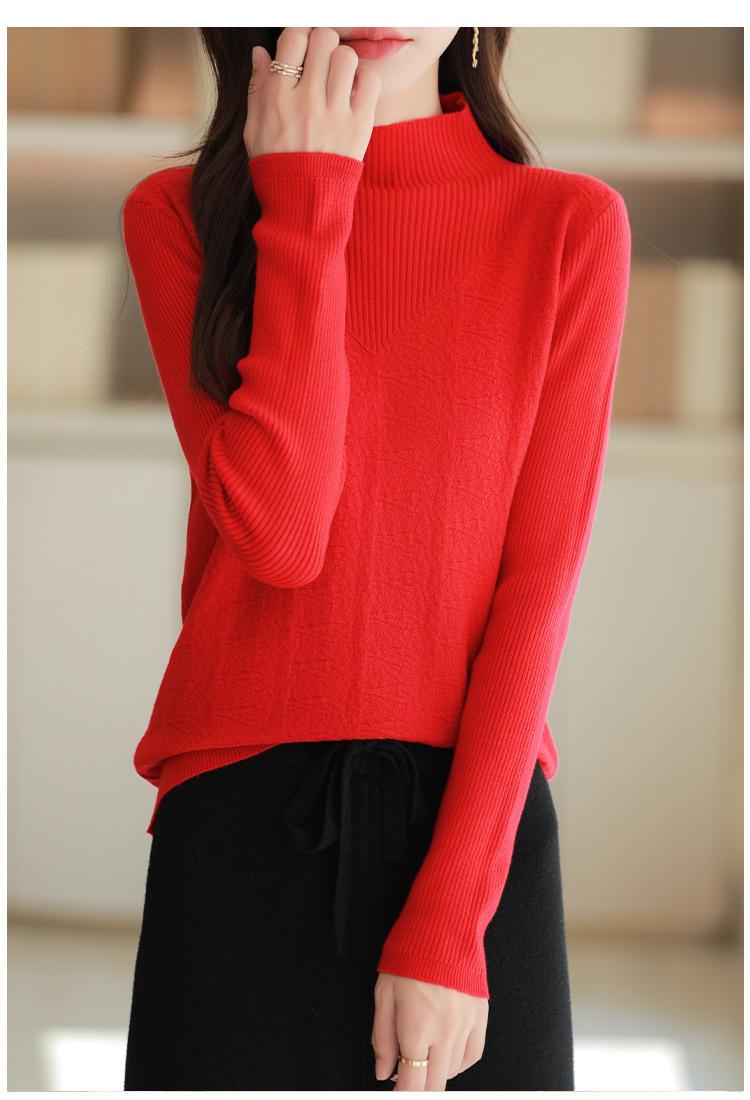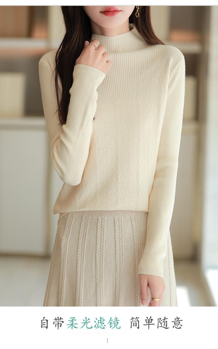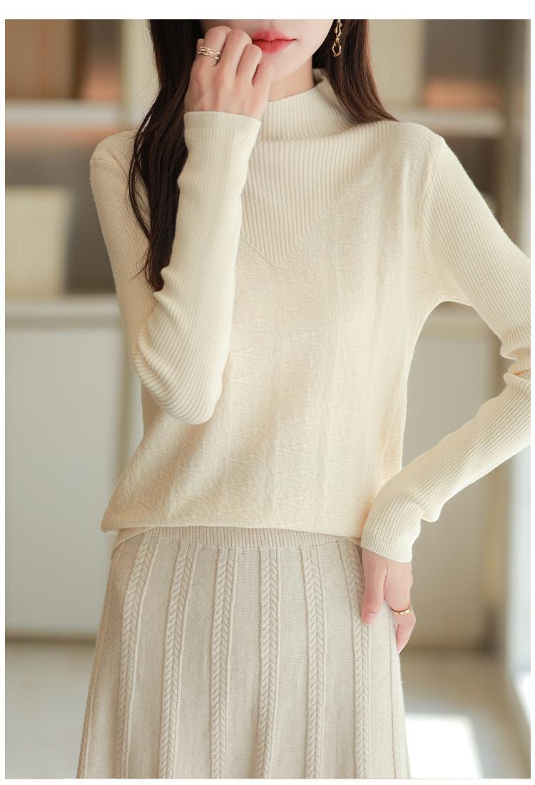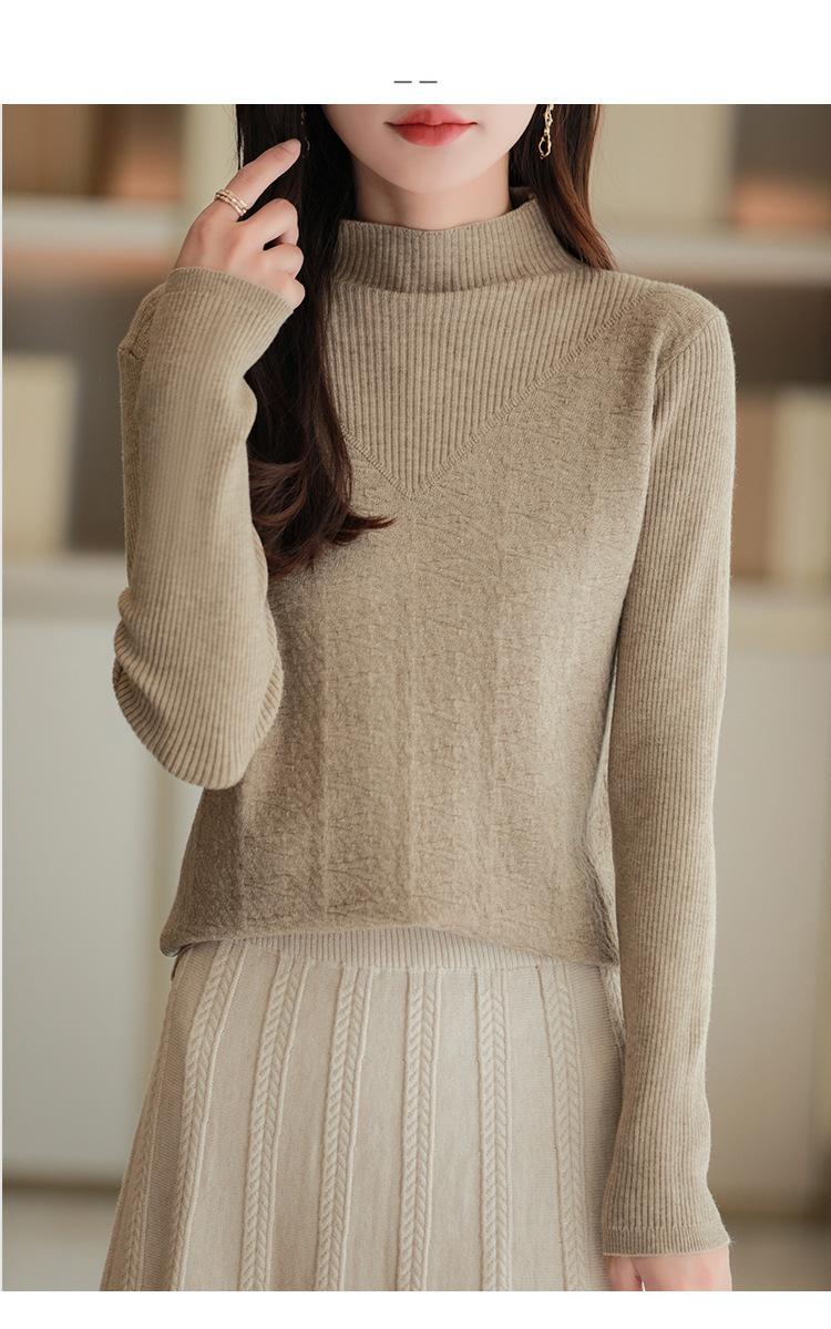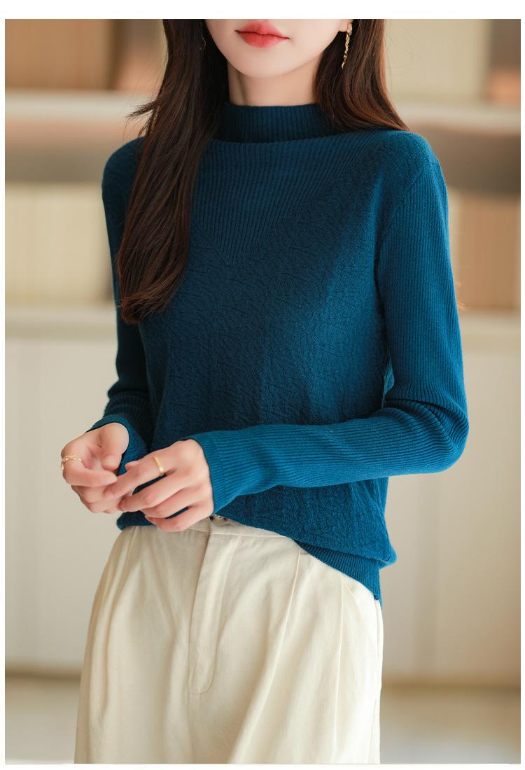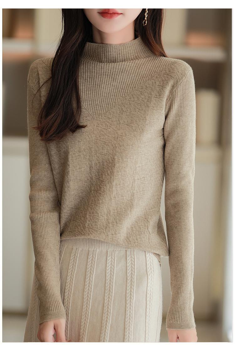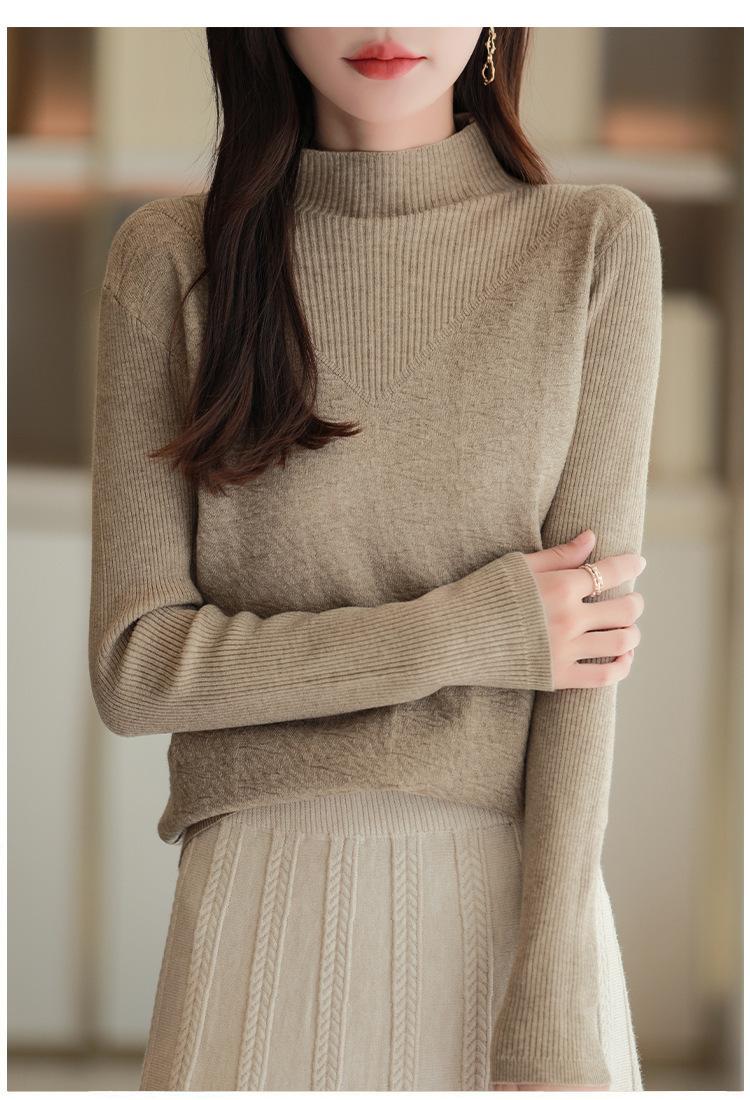 Suéter de cuello alto con media manga y cuello alto para mujer, jersey de punto de color liso, ajustado, para otoño e invierno, nuevo
