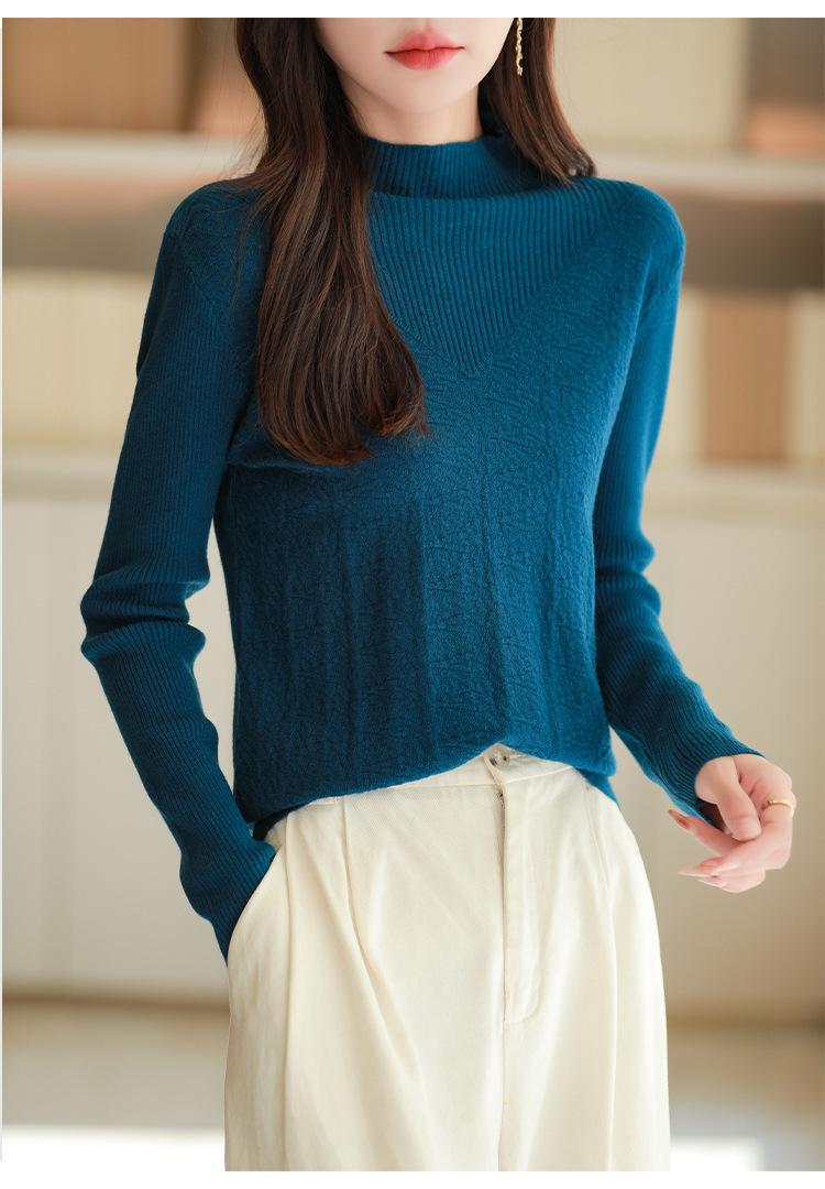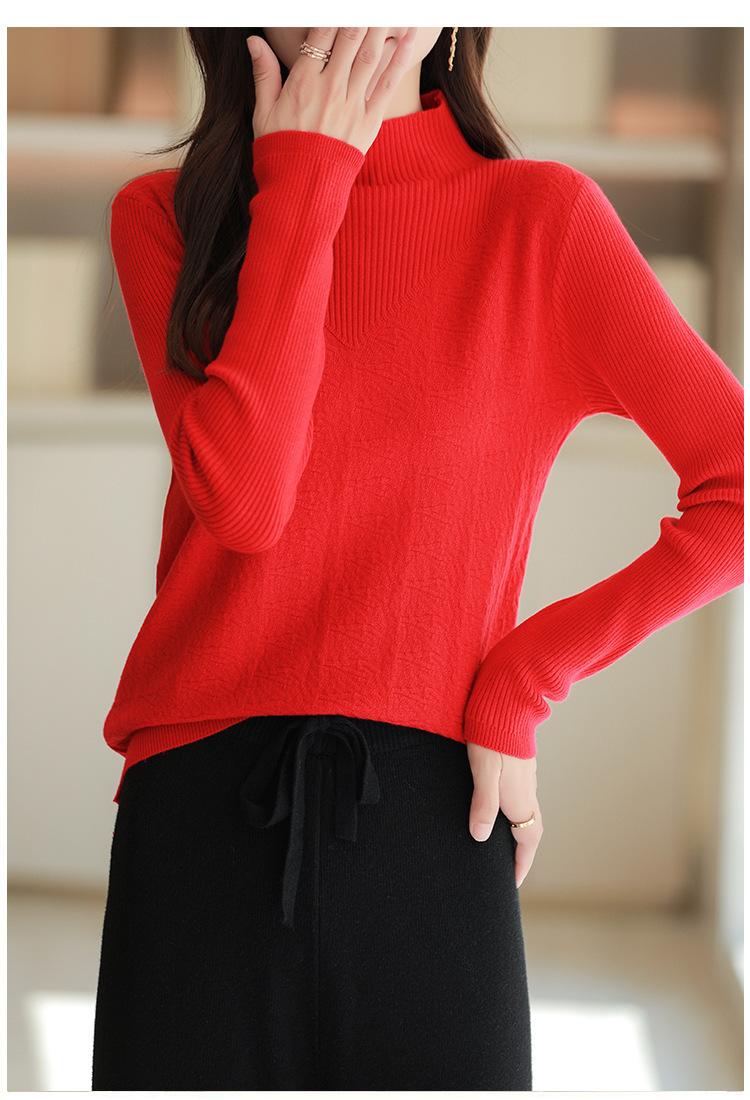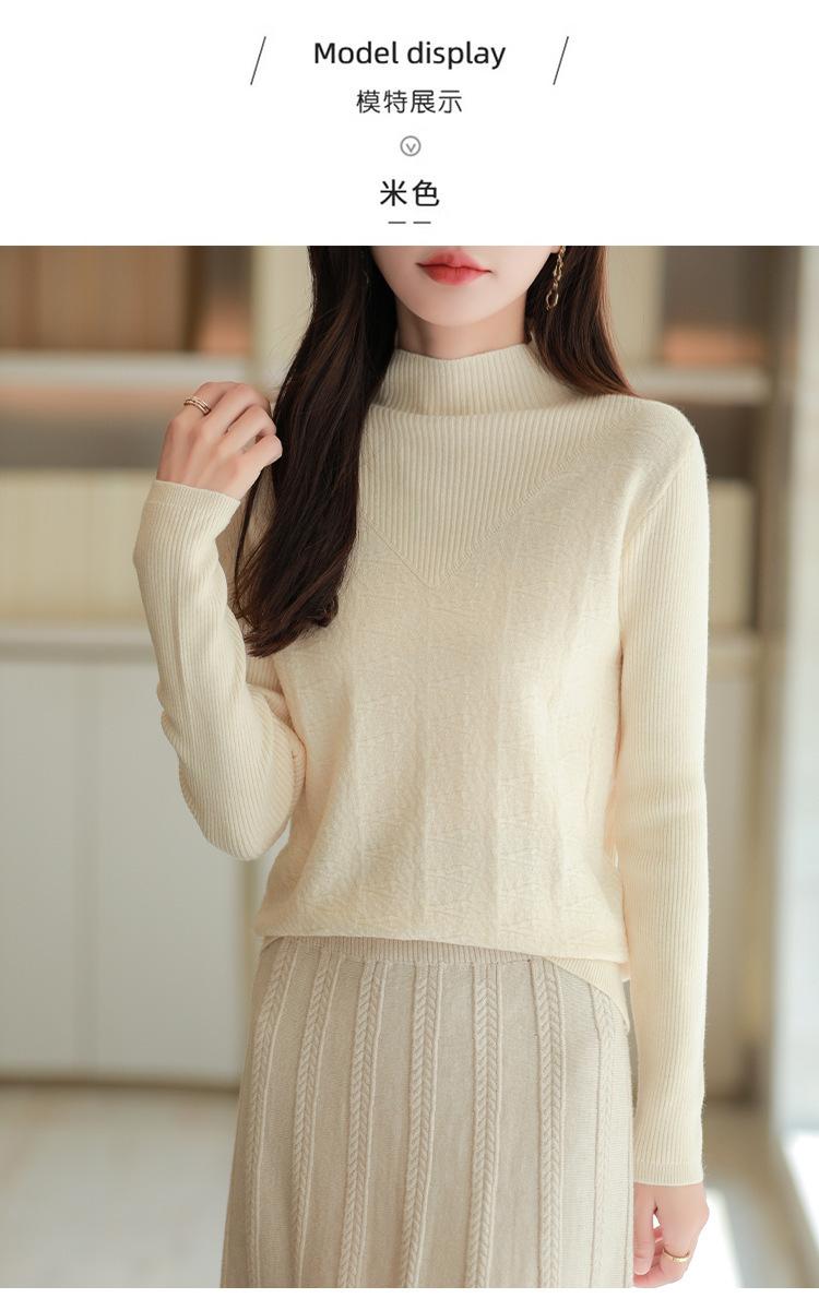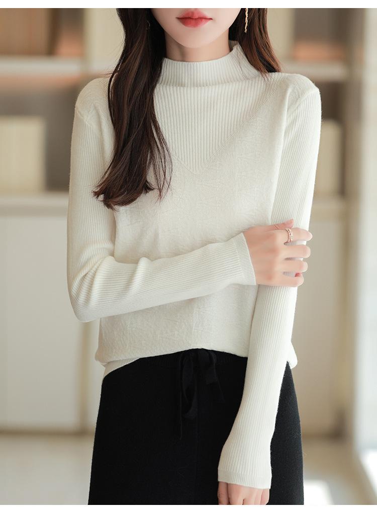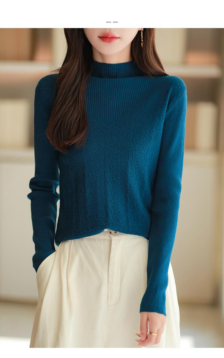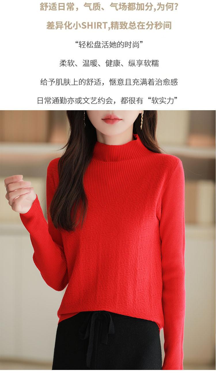 Suéter de cuello alto con media manga y cuello alto para mujer, jersey de punto de color liso, ajustado, para otoño e invierno, nuevo