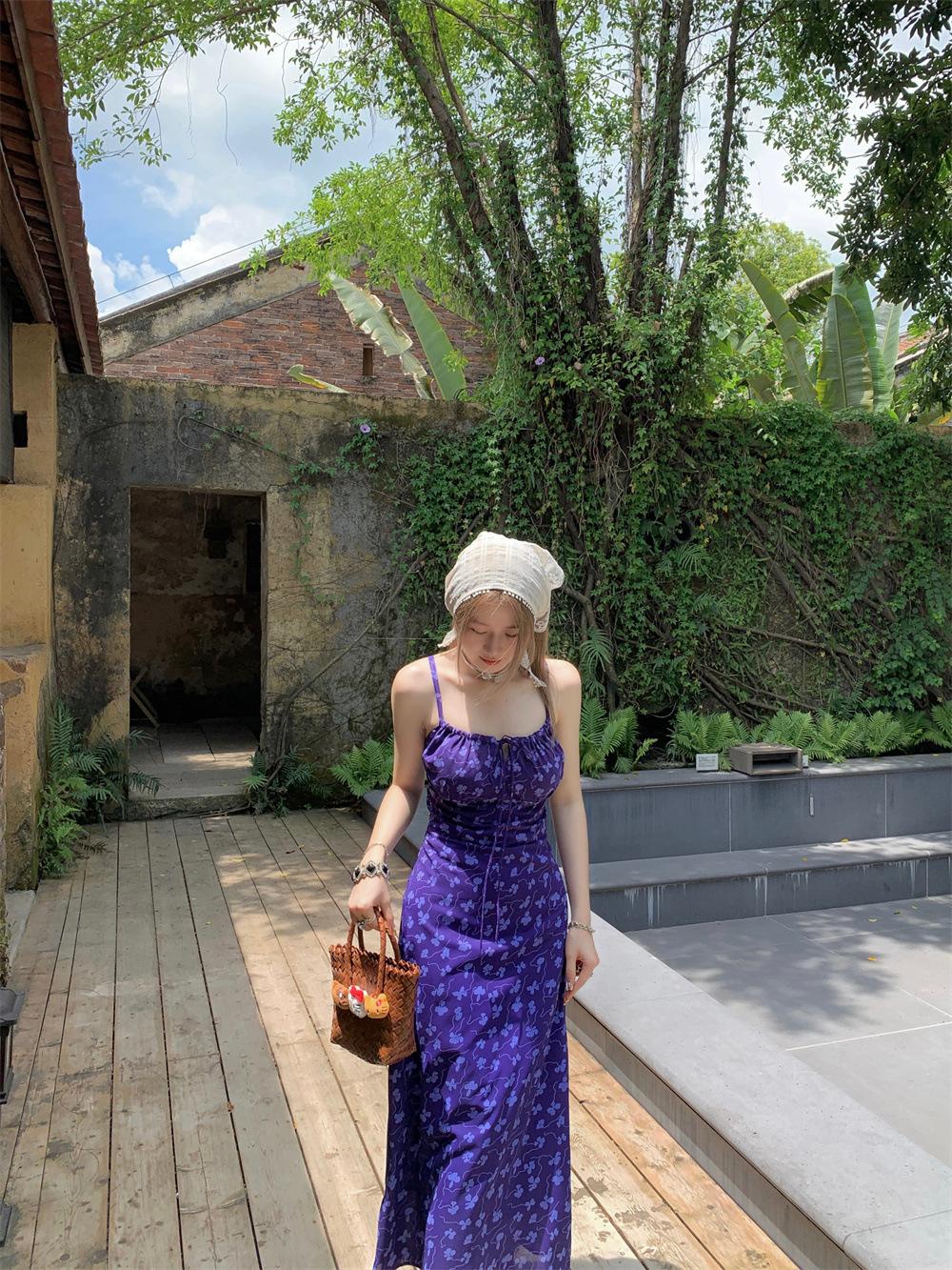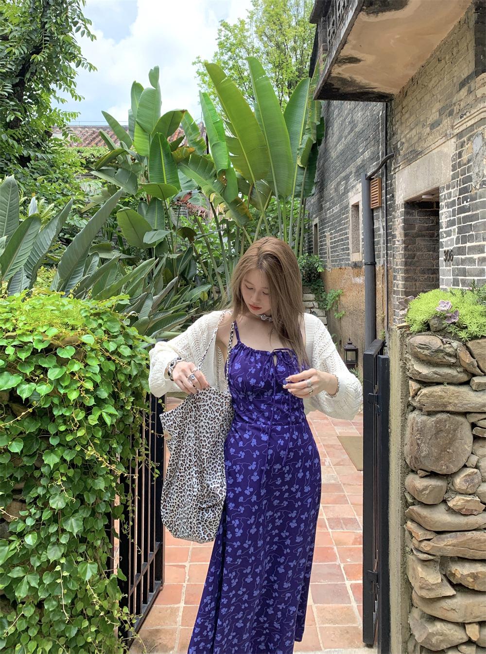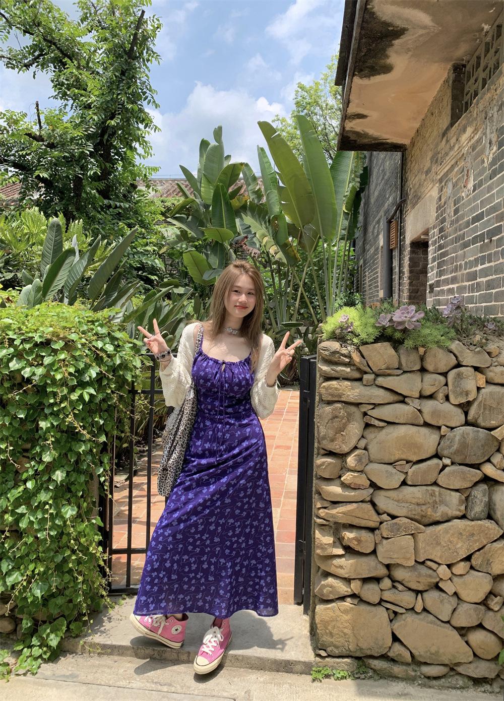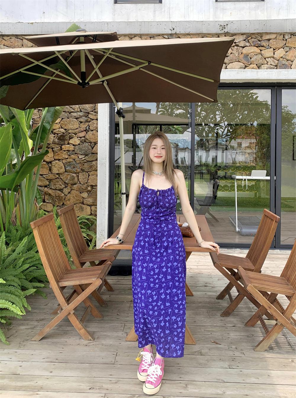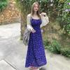 Talla Grande Retro Elegante Cintura Adelgazante Look Vestido Floral de Tirantes Blanco Estilo Viaje Resort Línea A Tirantes Falda Larga