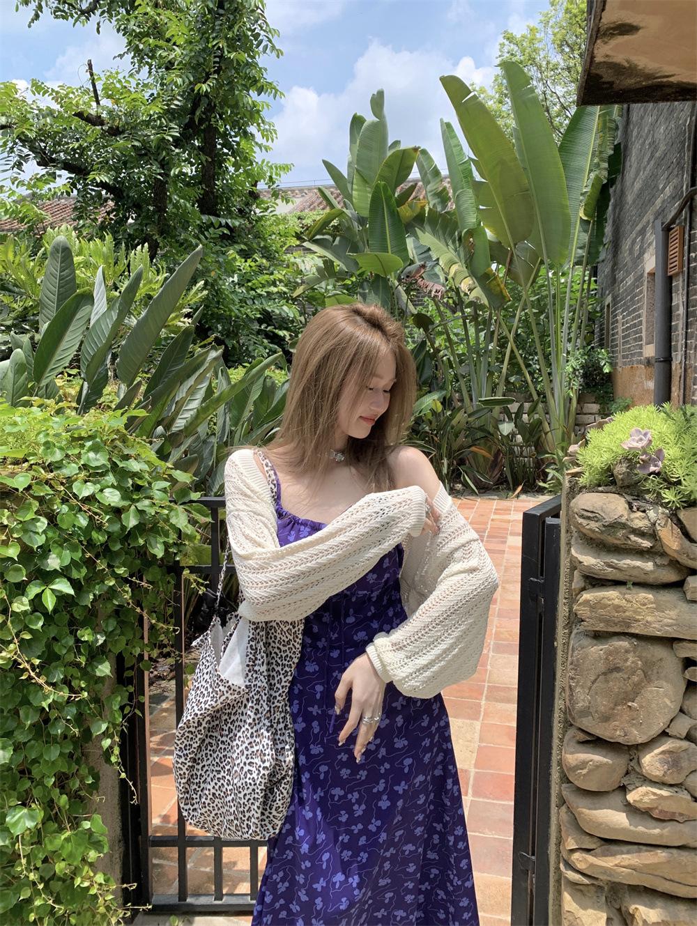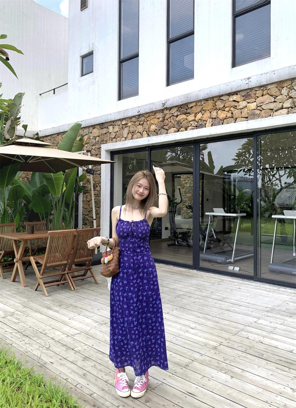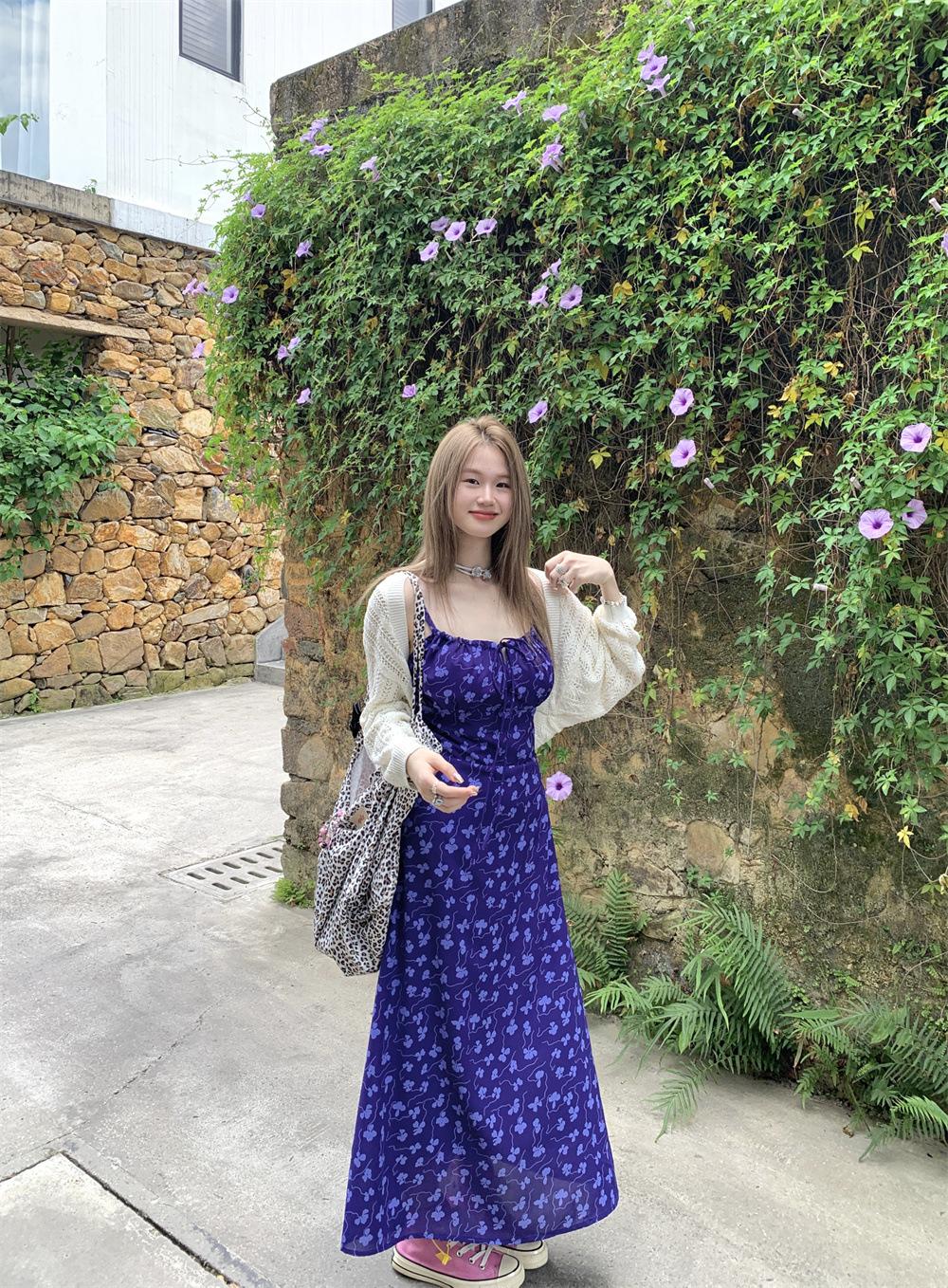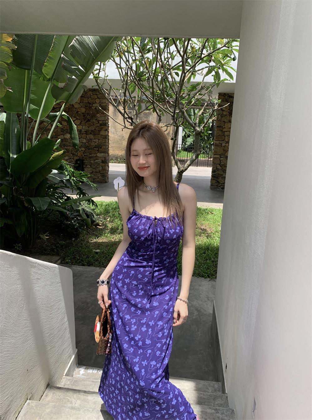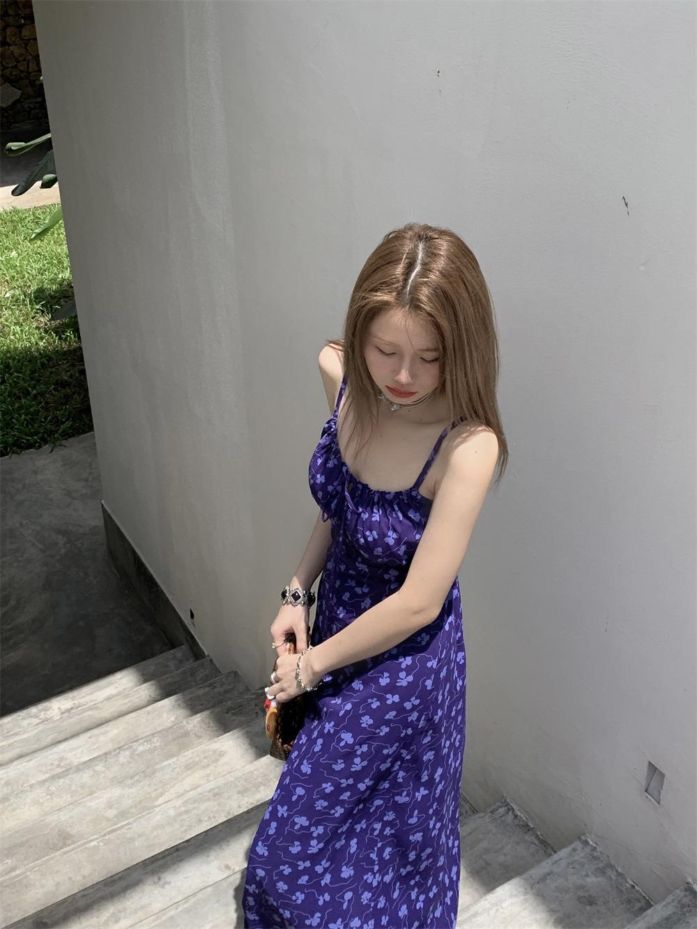 Talla Grande Retro Elegante Cintura Adelgazante Look Vestido Floral de Tirantes Blanco Estilo Viaje Resort Línea A Tirantes Falda Larga