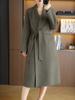 Abrigo de lana de doble cara para mujer, nuevo abrigo de lana 100% pura con cuello de fruta verde a la moda, con cordones y combinable con todo, para otoño e invierno.