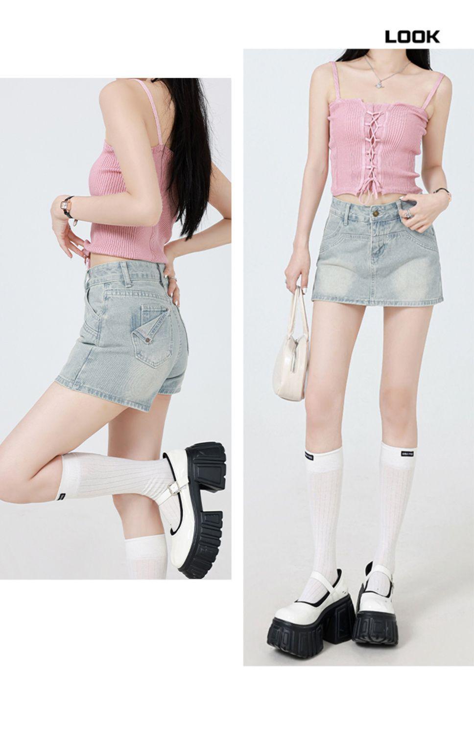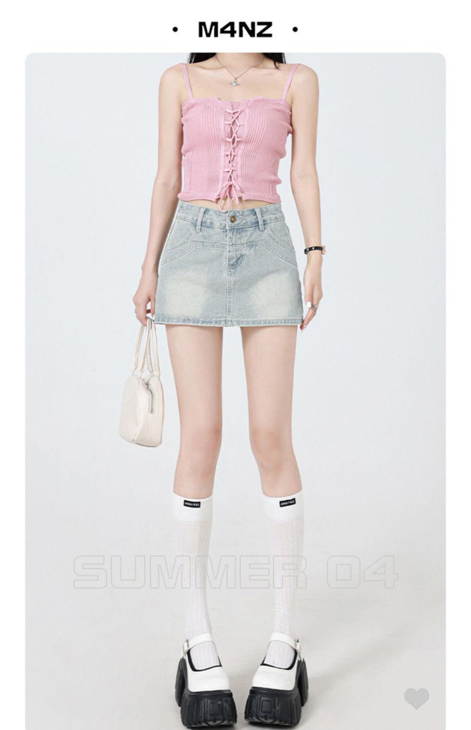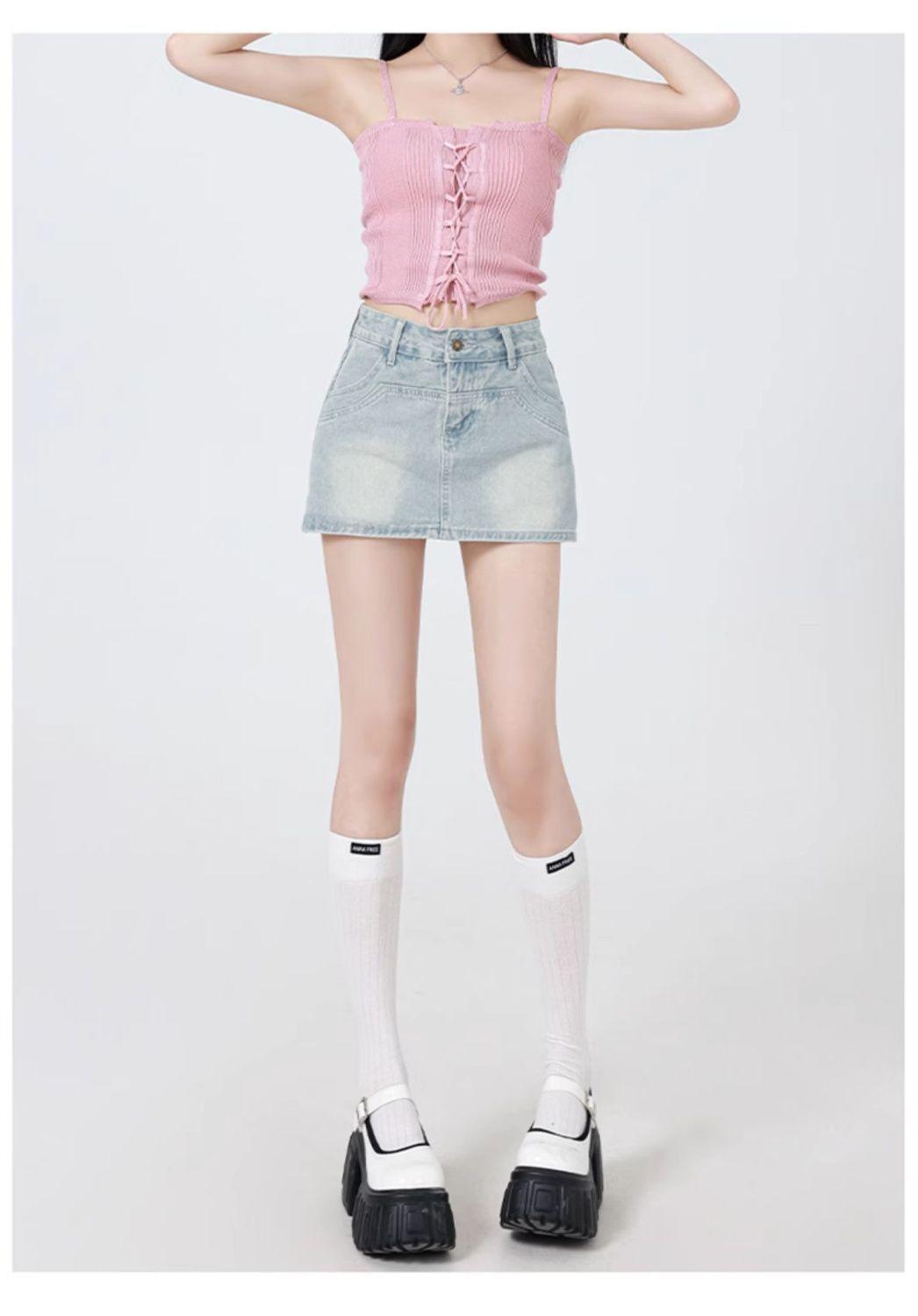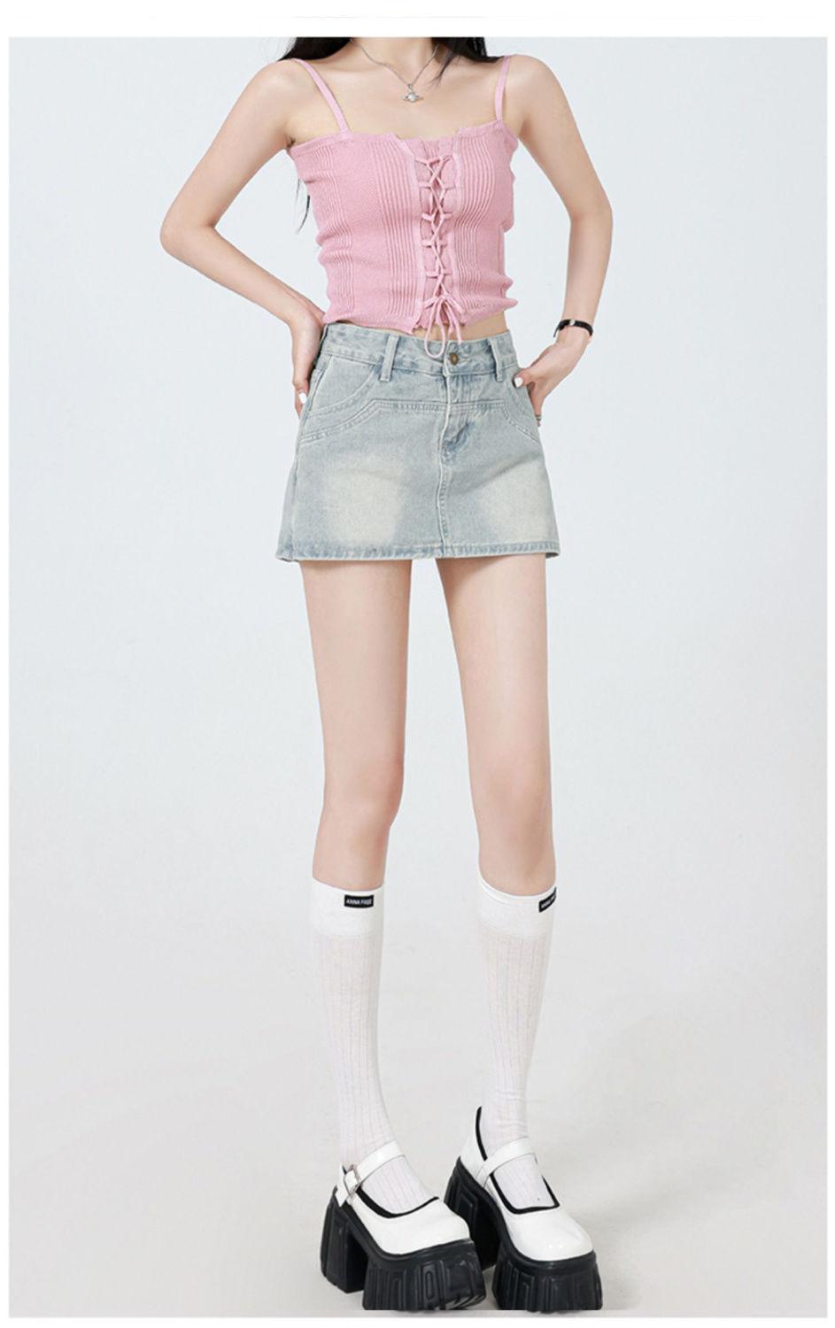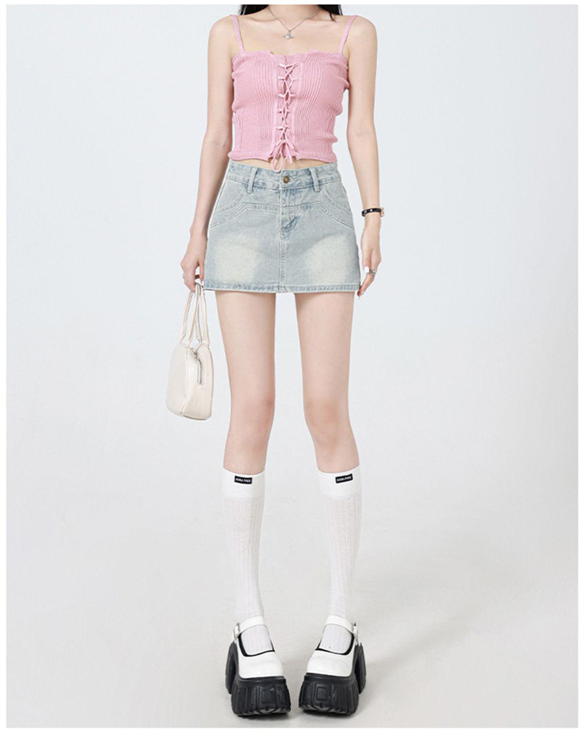Falda vaquera retro estilo americano para mujer, primavera y verano, adelgazante, sexy, estilo Spice Girls, ajustada a la cadera, corta, de cintura alta