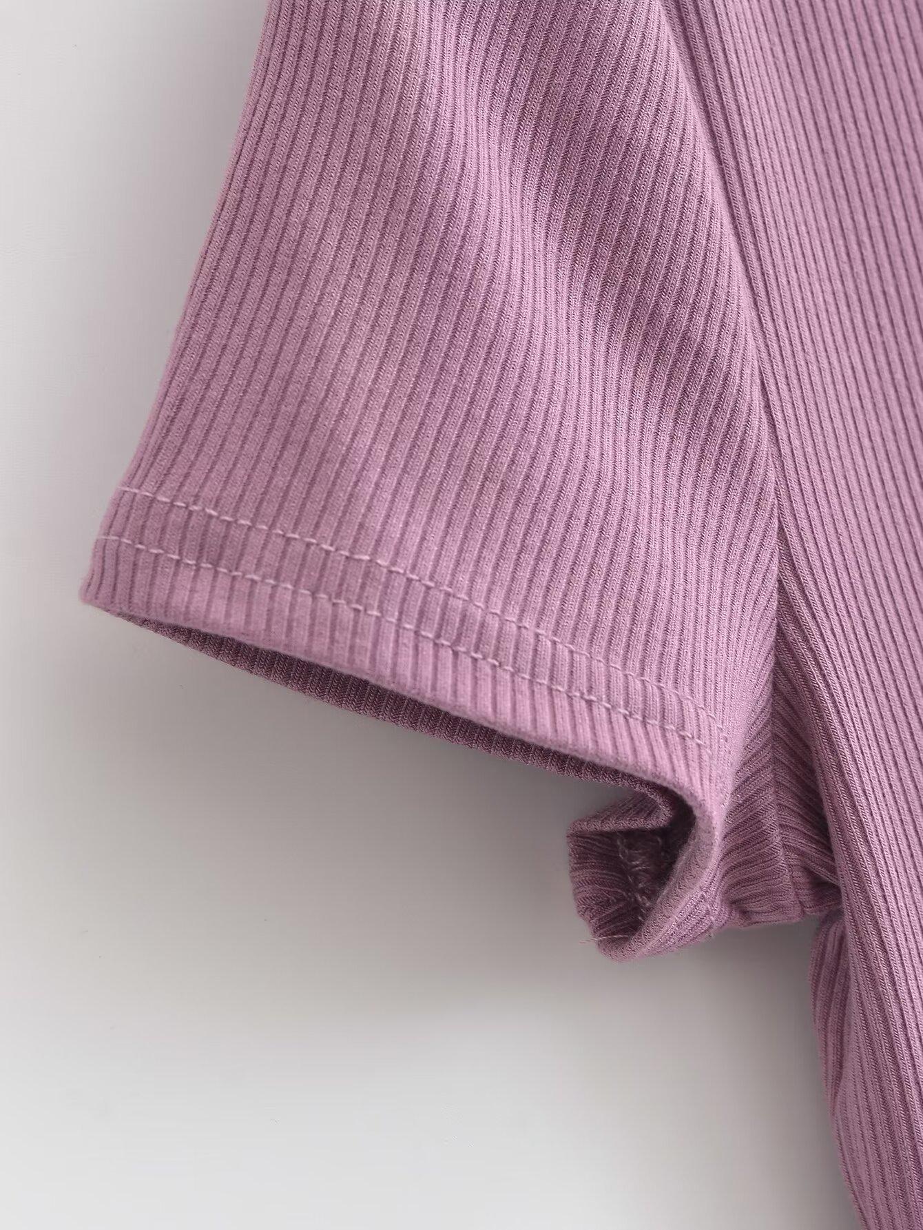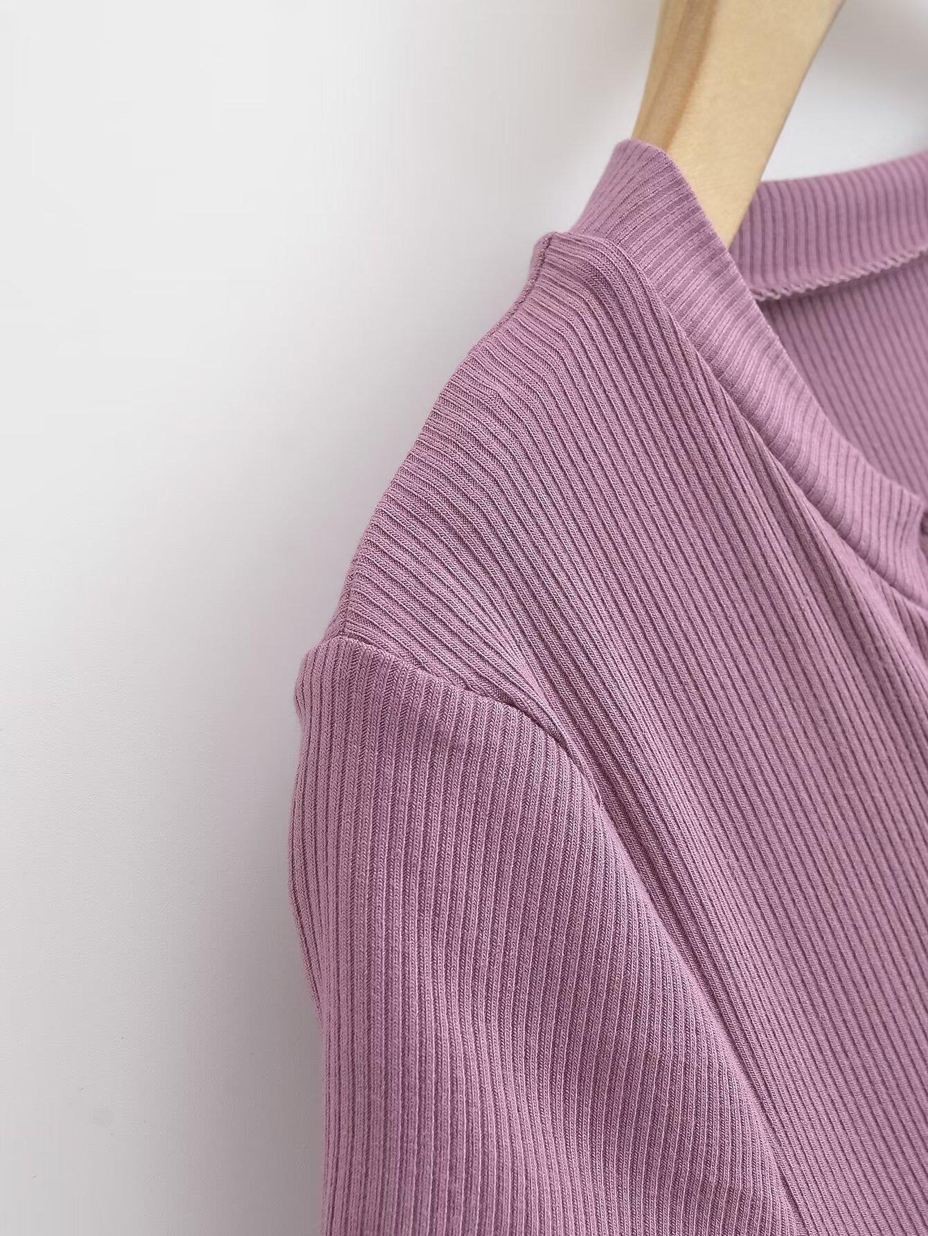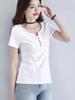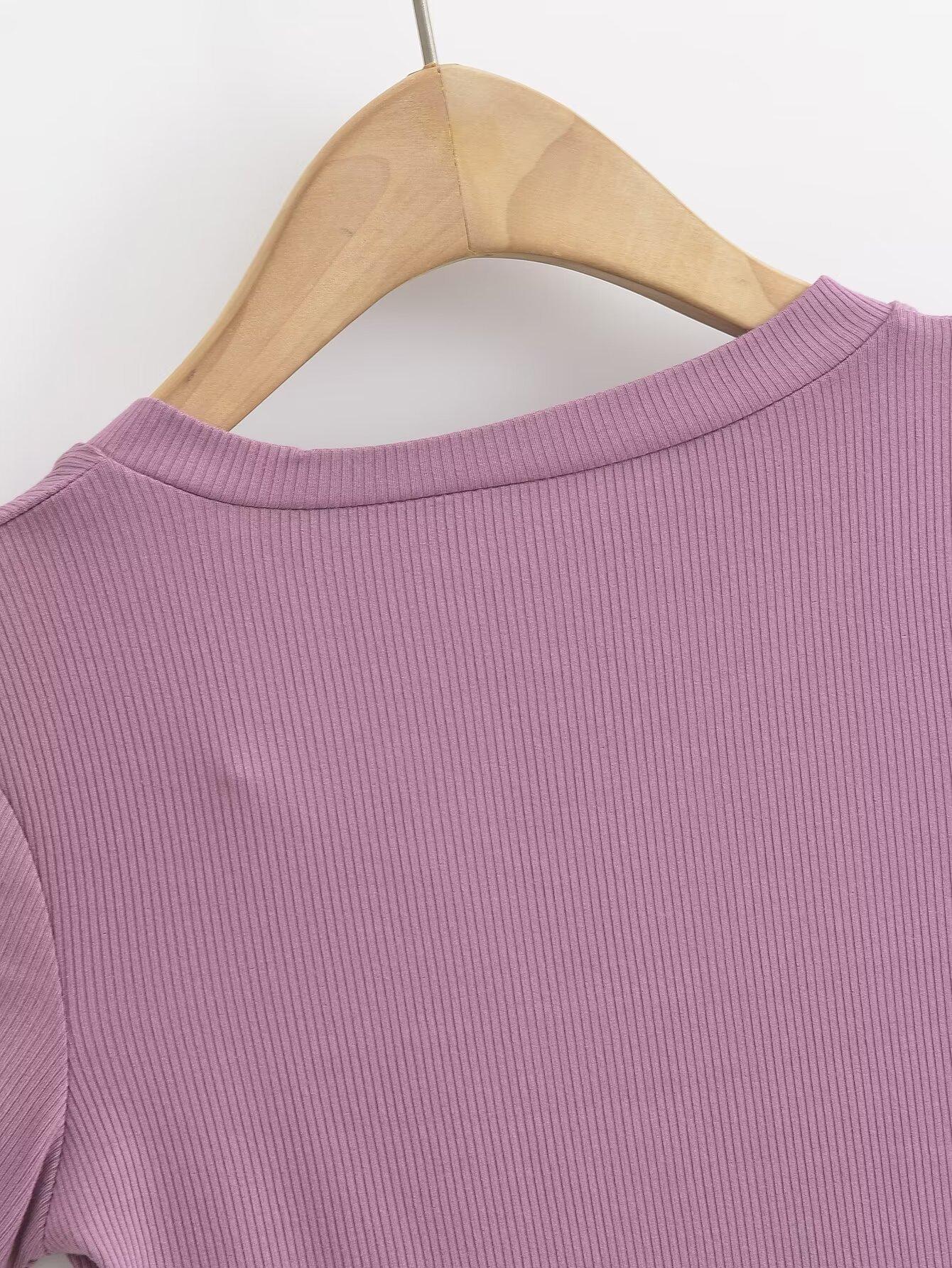 AP23108 Otoño Nuevo Estilo Europeo y Americano Cuello en V Bolso Hebilla Dobladillo Curvo Color Sólido Estilo Simple Camiseta de Manga Corta Entallada