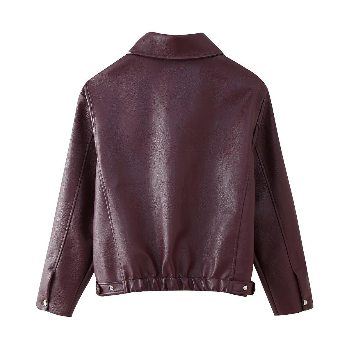 2024 otoño nuevo europeo y americano transfronterizo moda callejera para mujer solapa manga larga chaqueta de cuero abrigo w028 6471