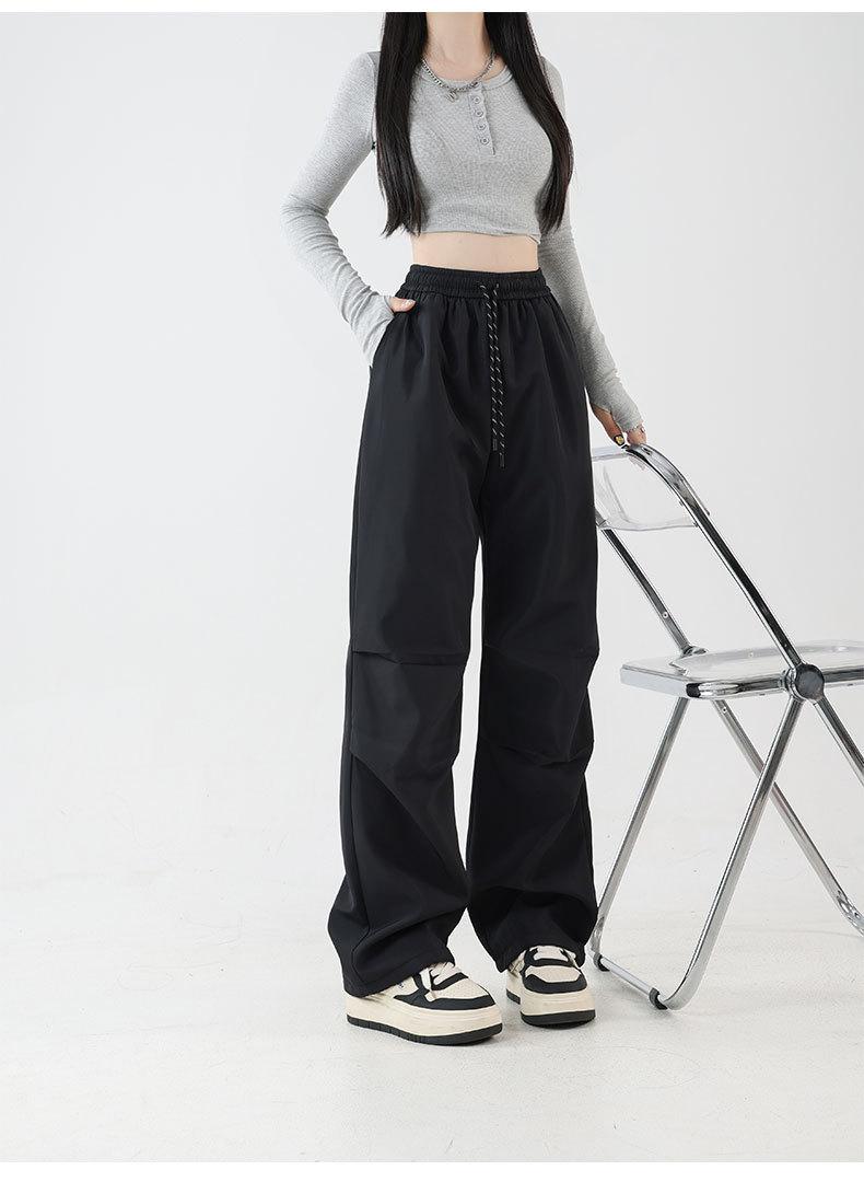 Pantalones Cargo de Mujer Estilo Americano Primavera y Otoño 2025 Nuevos Pantalones Casuales Sueltos de Cintura Alta y Pierna Ancha Secado Rápido para Senderismo Pantalones Paracaídas