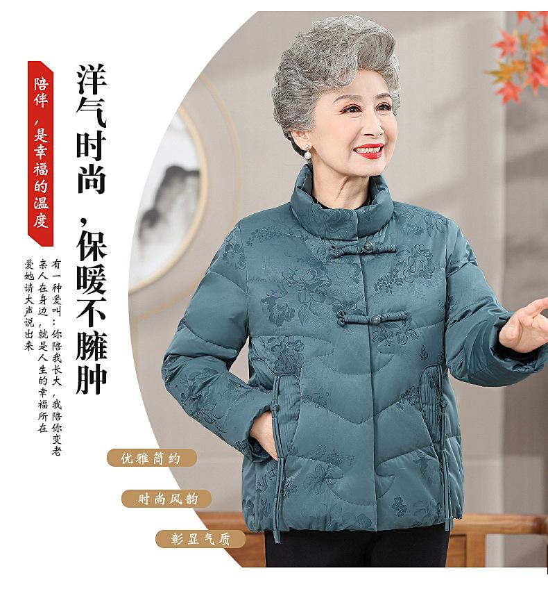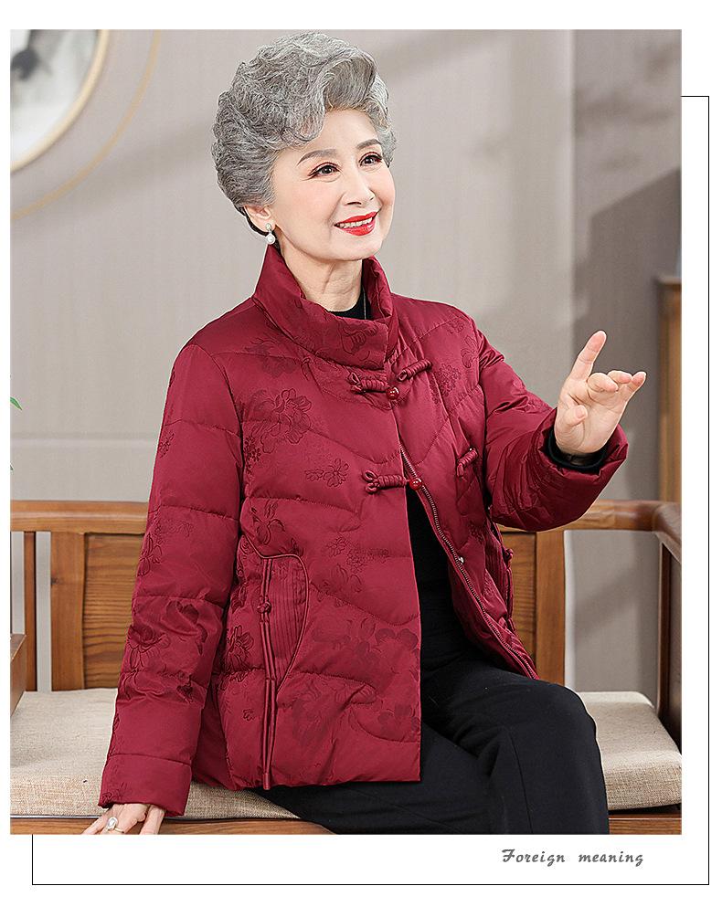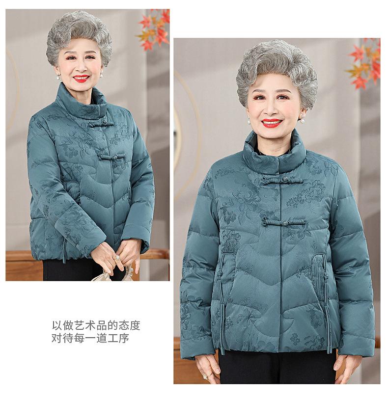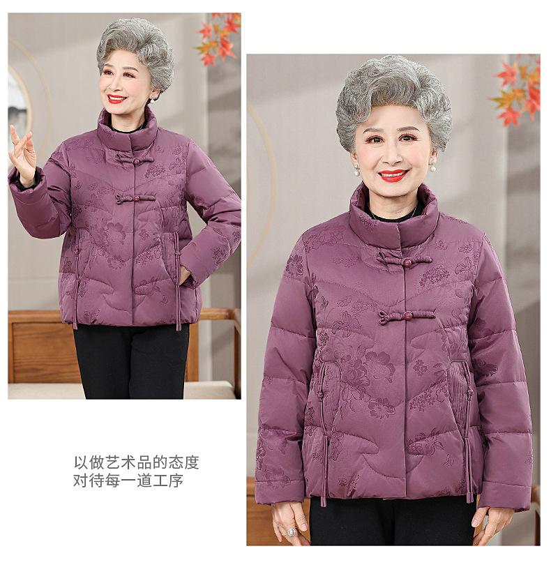 Invierno Chaqueta Corta Holgada Cálida de Plumón para Abuela de Mediana Edad y Anciana Nueva Chaqueta de Plumón de Pato Blanco para Madre Chaqueta de Plumón