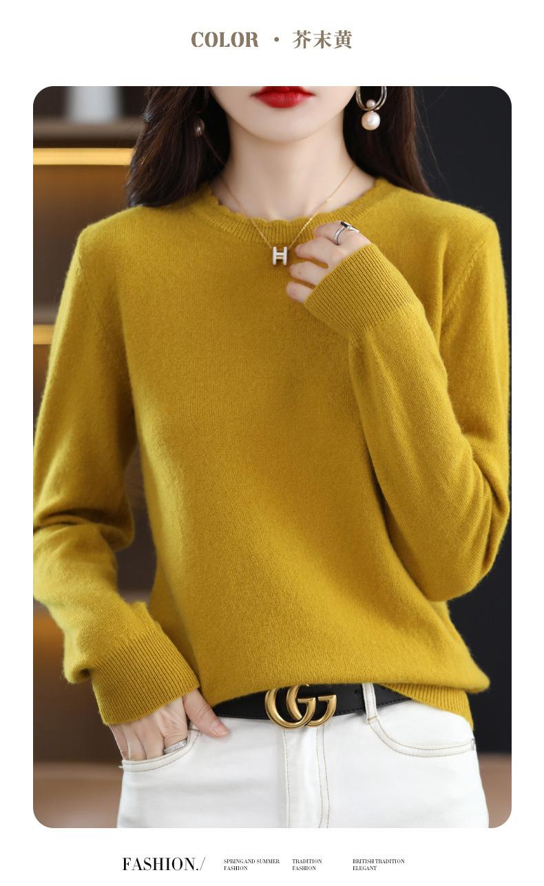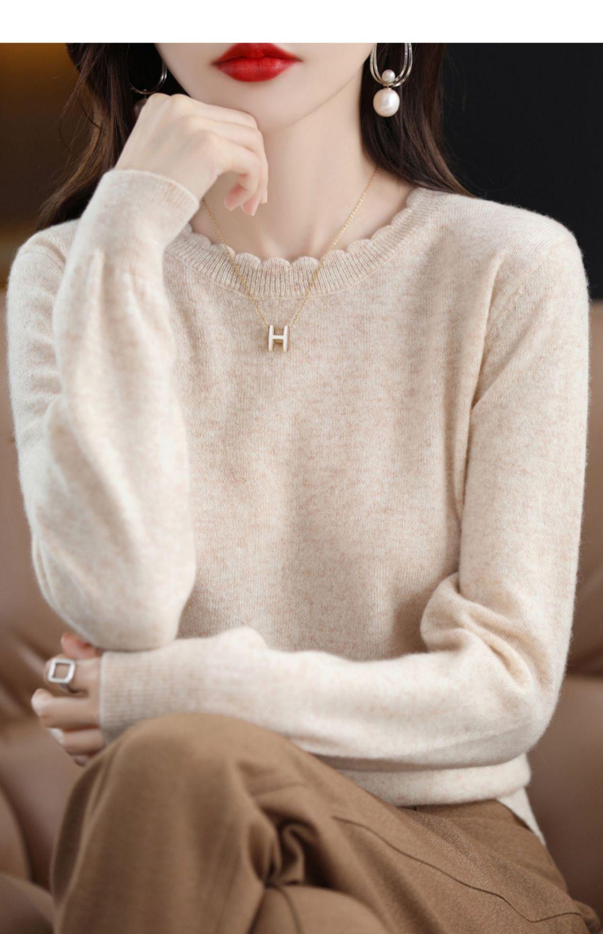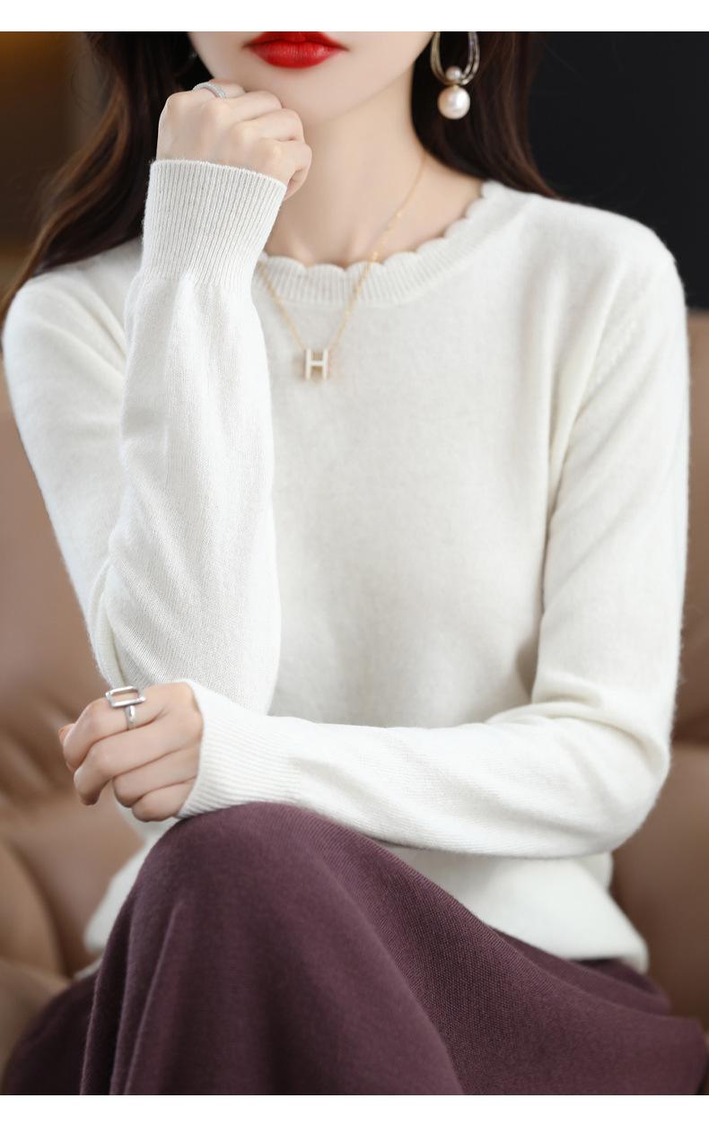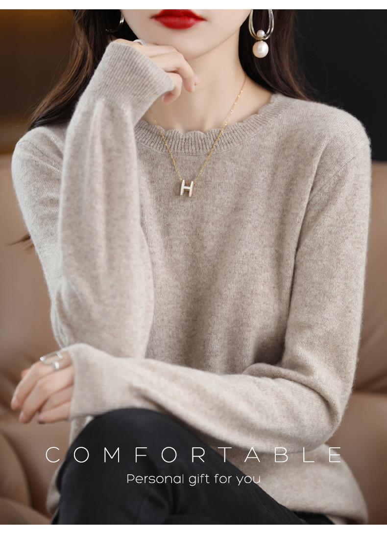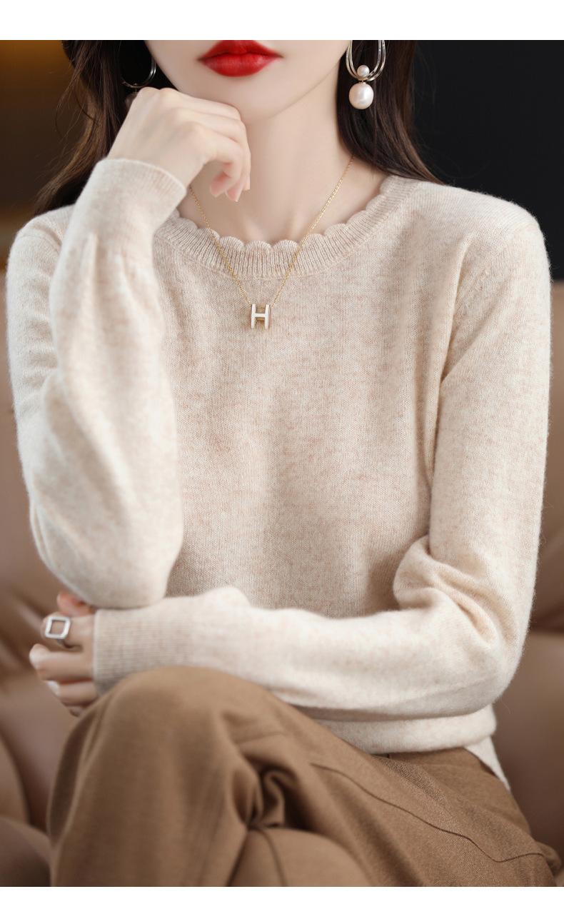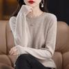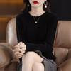 Camiseta básica de encaje suave y casual de cuello redondo para mujer, Suéter de nuevo estilo Otoño e Invierno 2025, Suéter de manga larga, Holgado