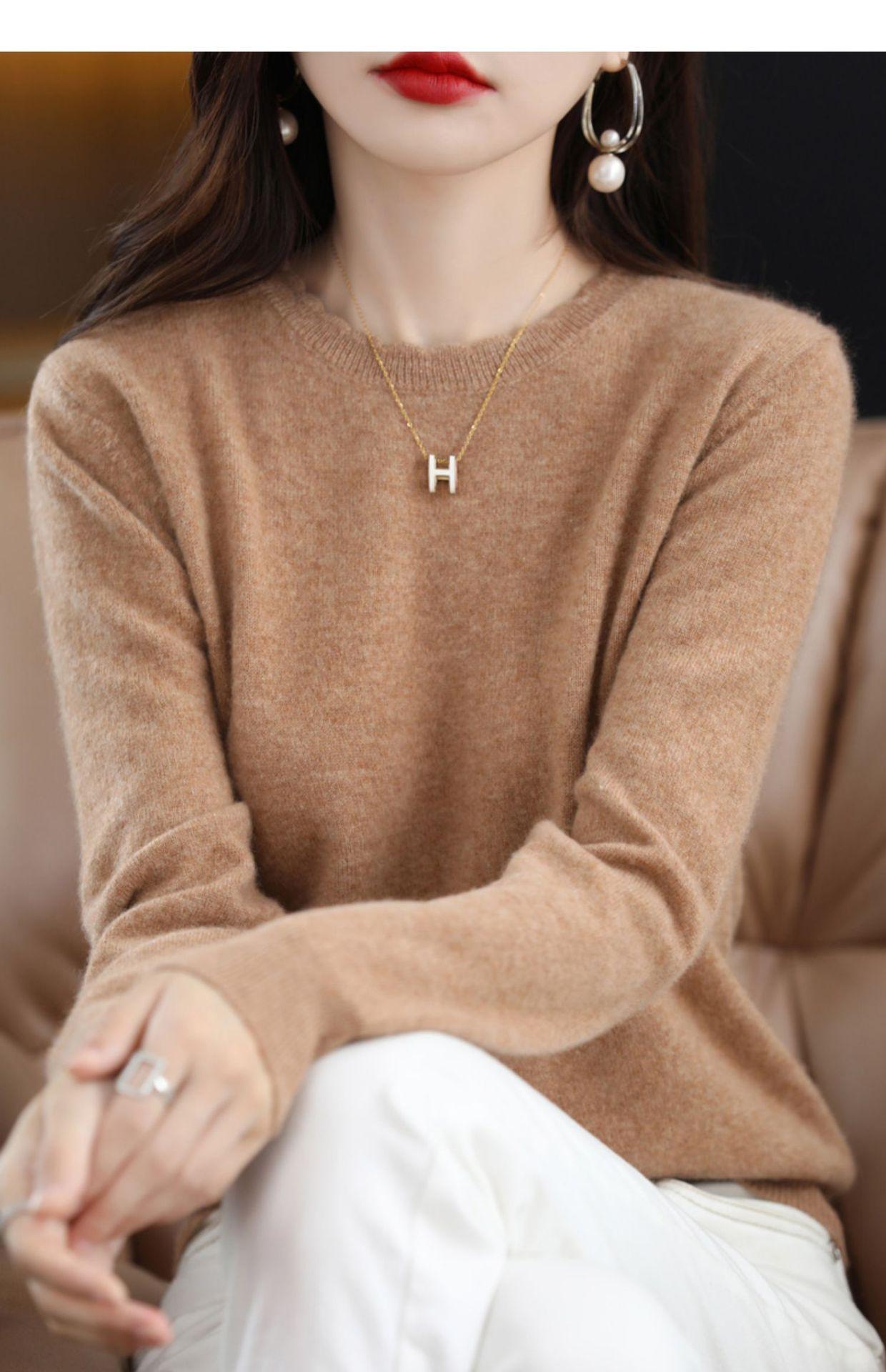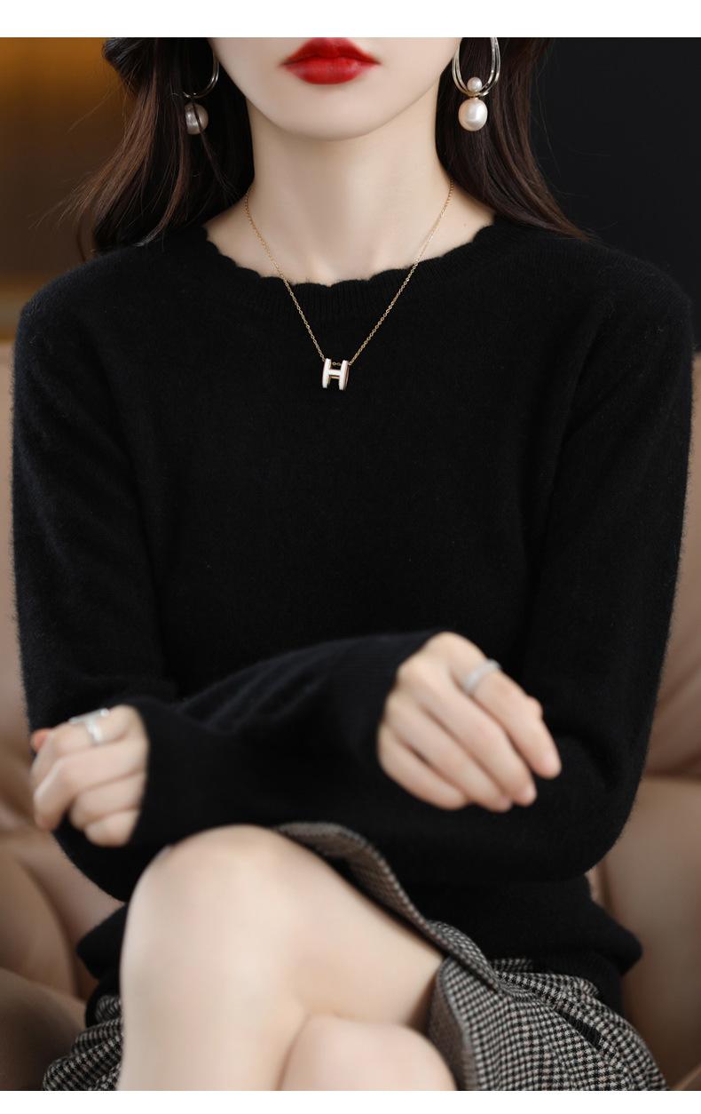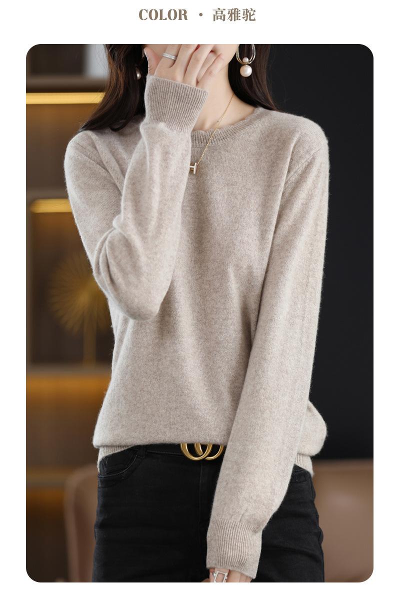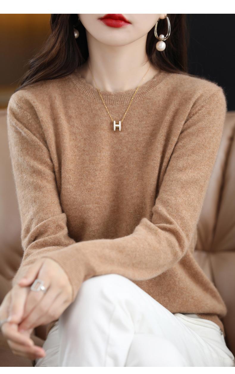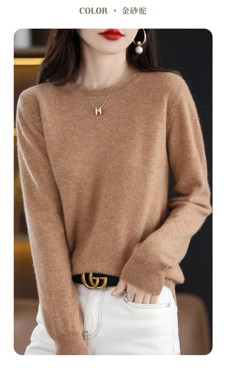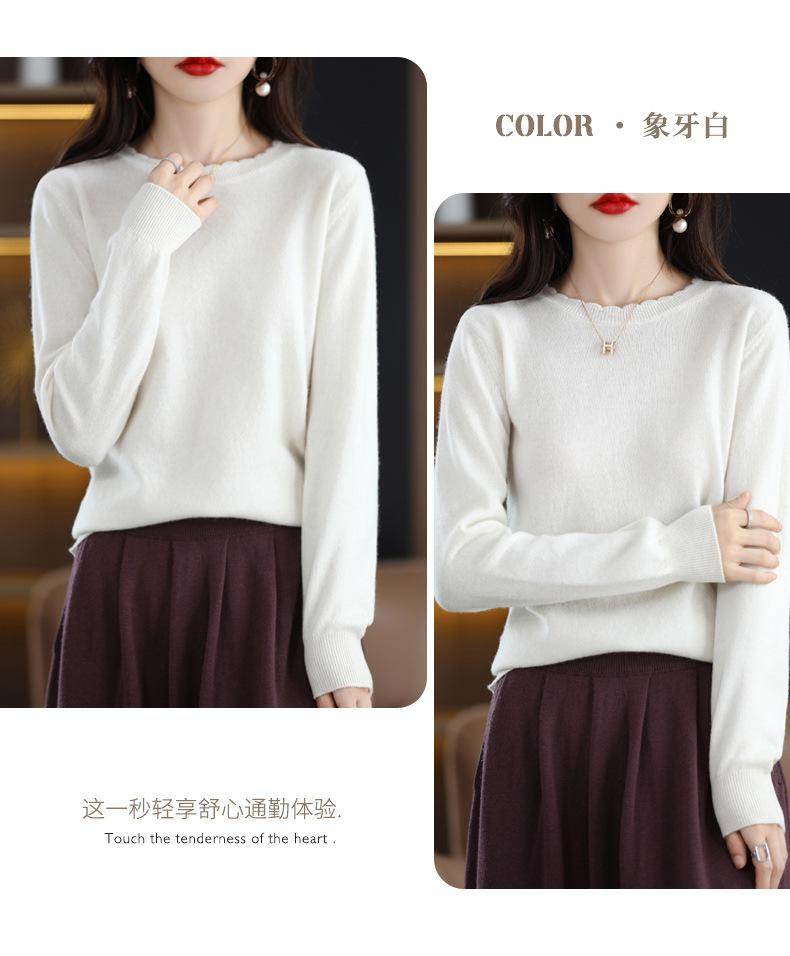 Camiseta básica de encaje suave y casual de cuello redondo para mujer, Suéter de nuevo estilo Otoño e Invierno 2025, Suéter de manga larga, Holgado