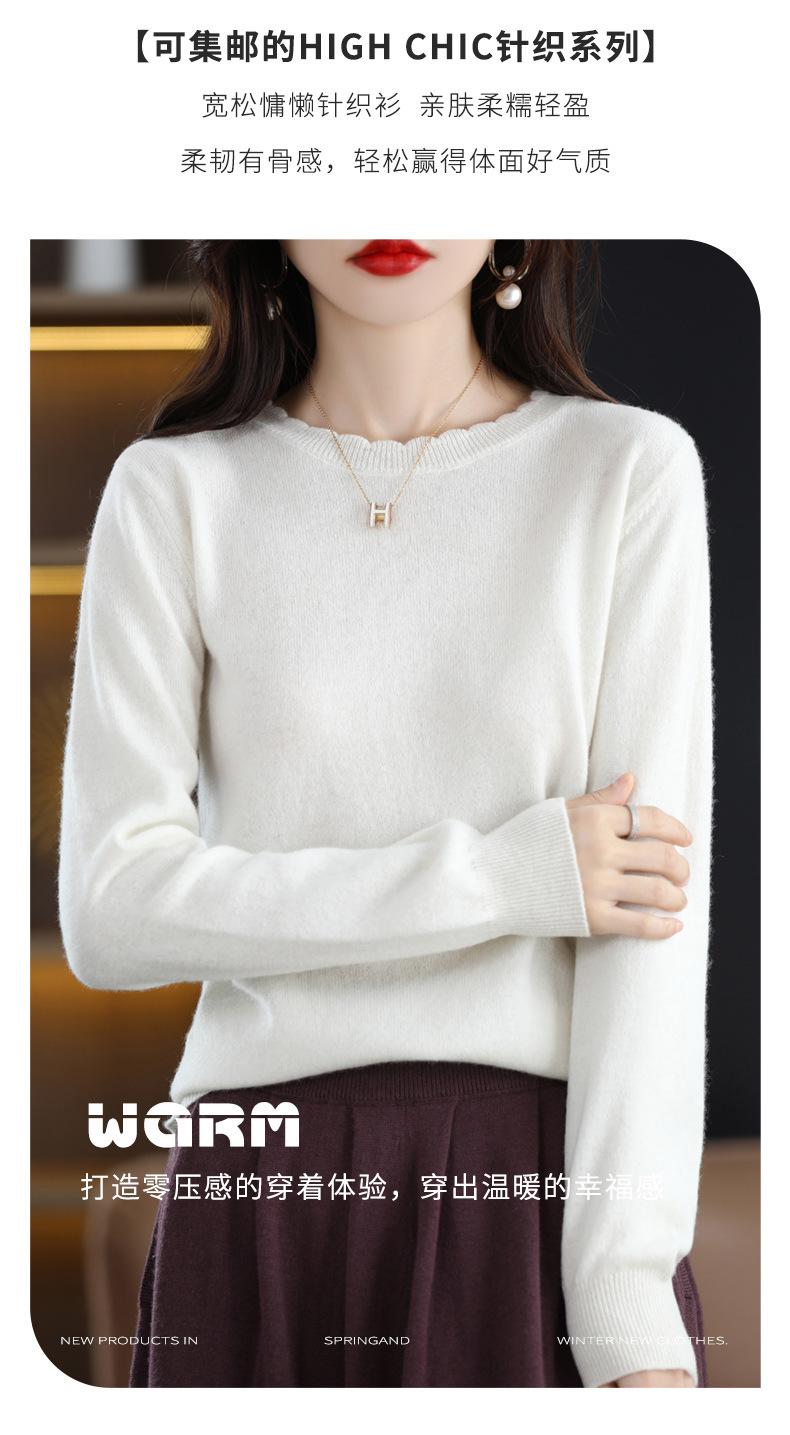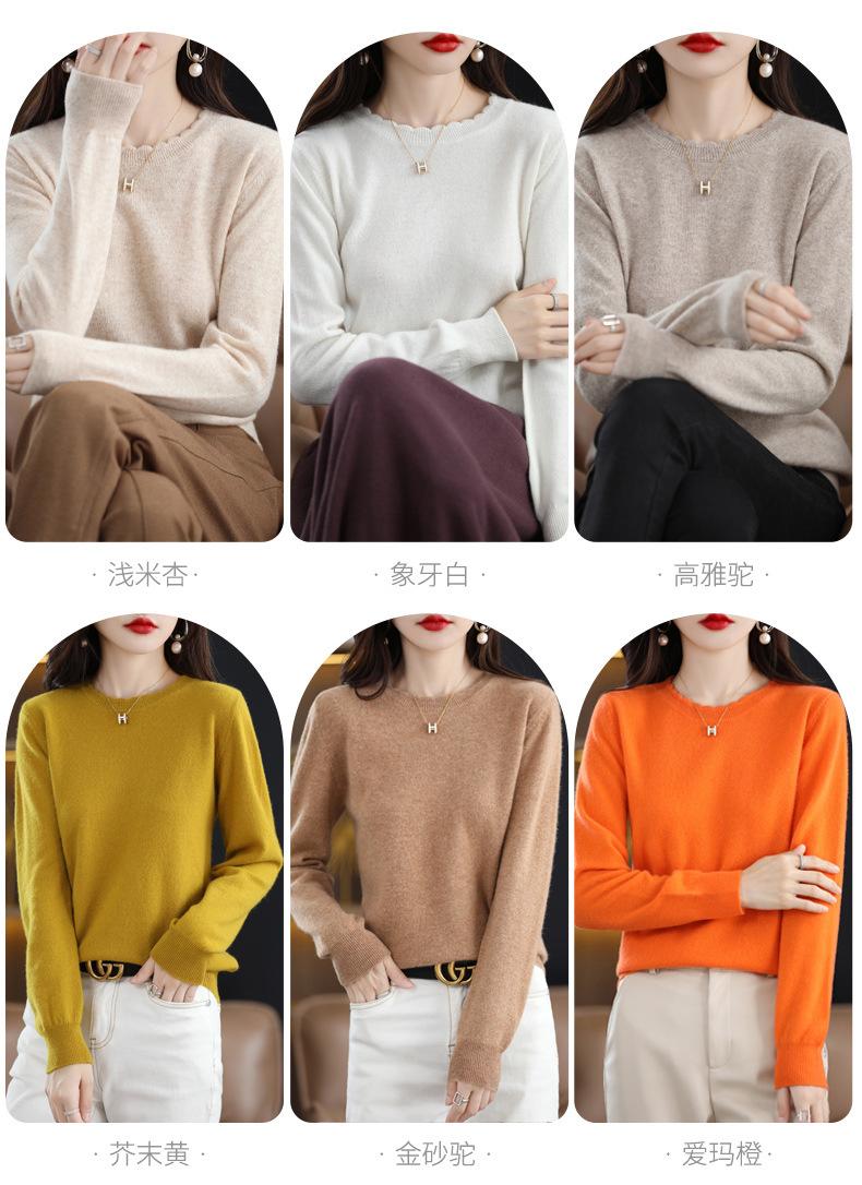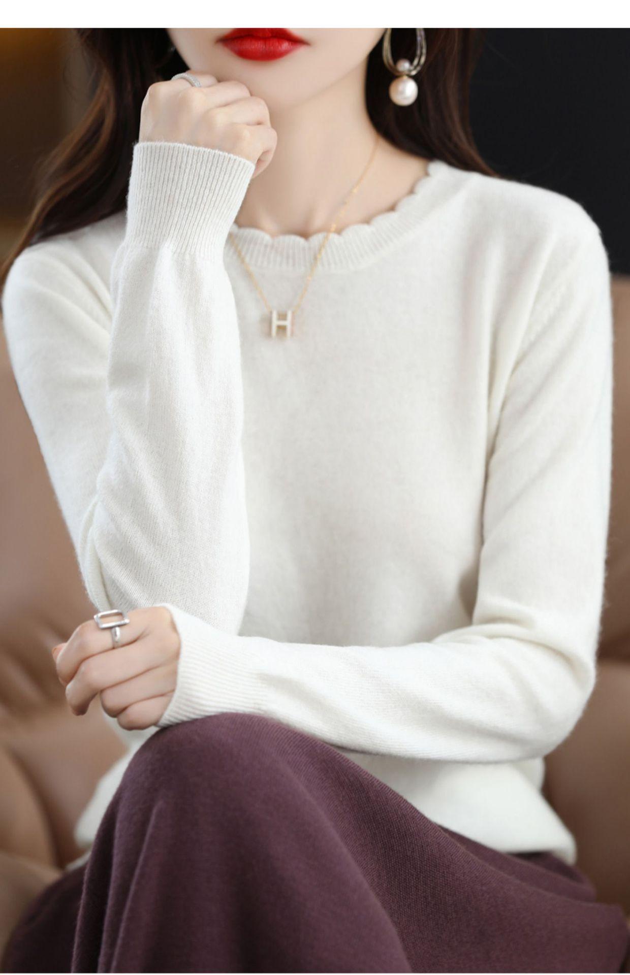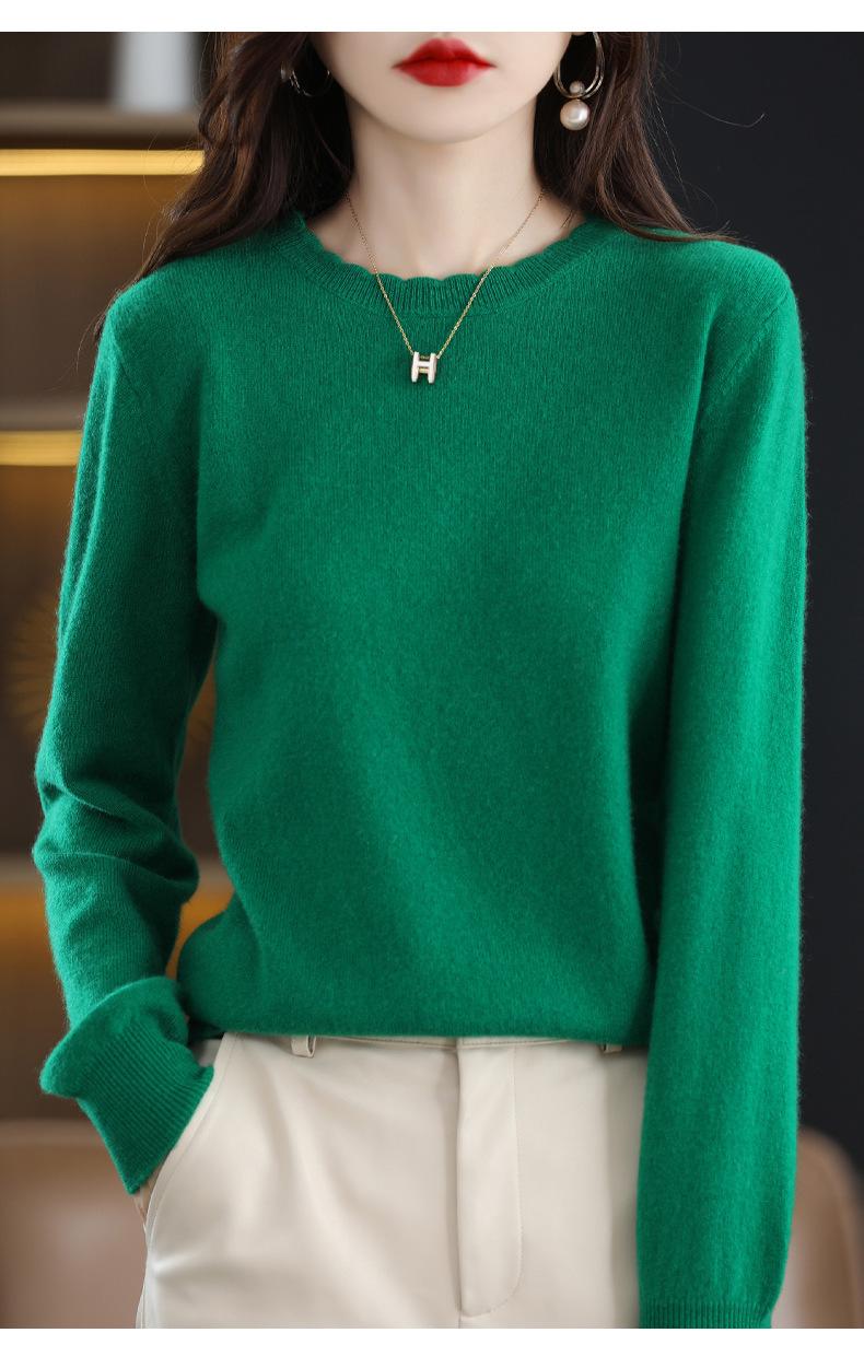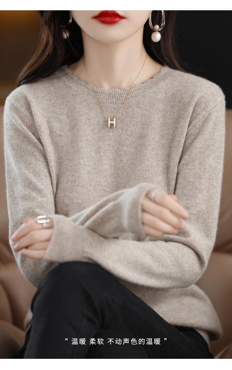 Camiseta básica de encaje suave y casual de cuello redondo para mujer, Suéter de nuevo estilo Otoño e Invierno 2025, Suéter de manga larga, Holgado