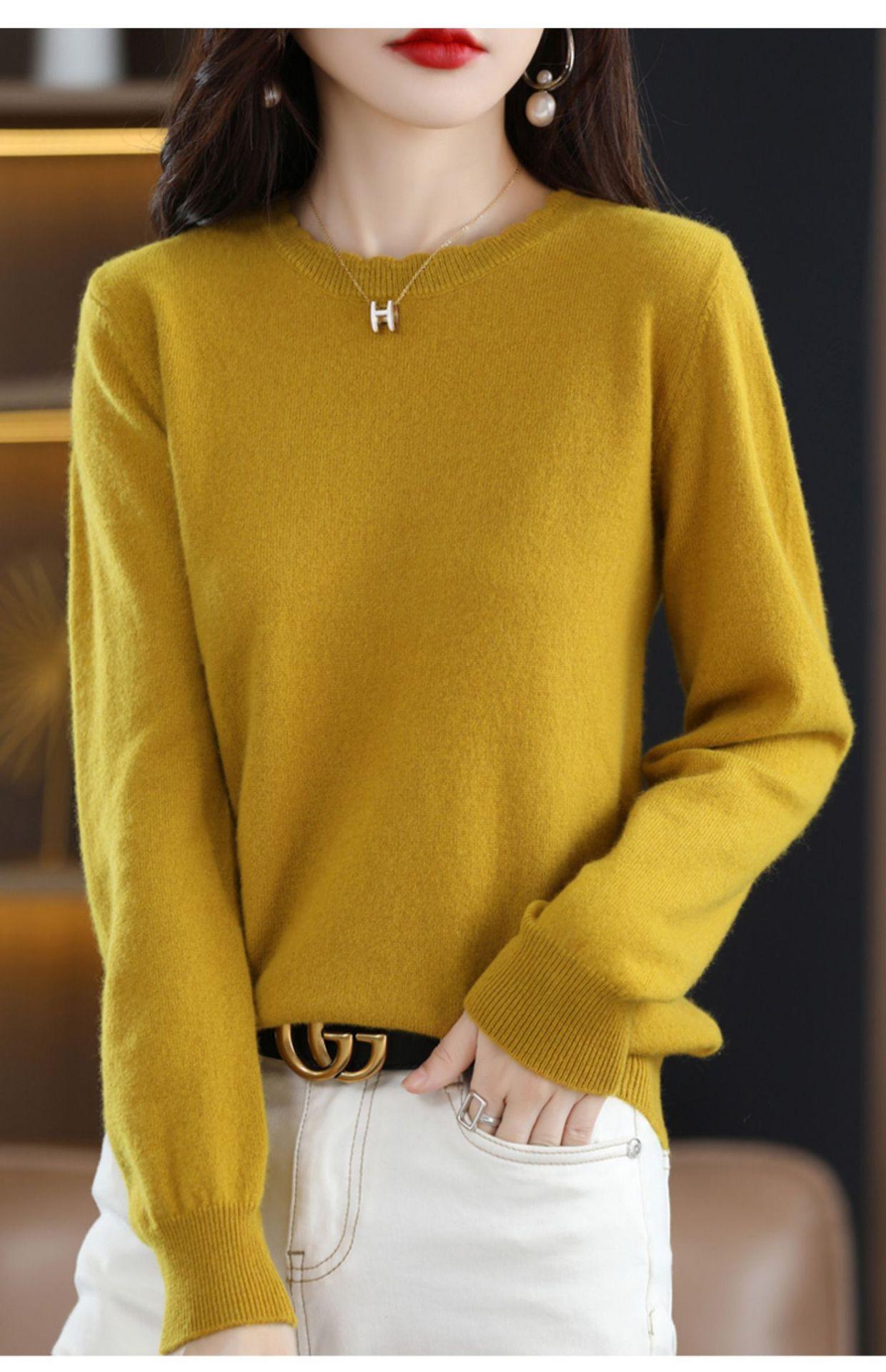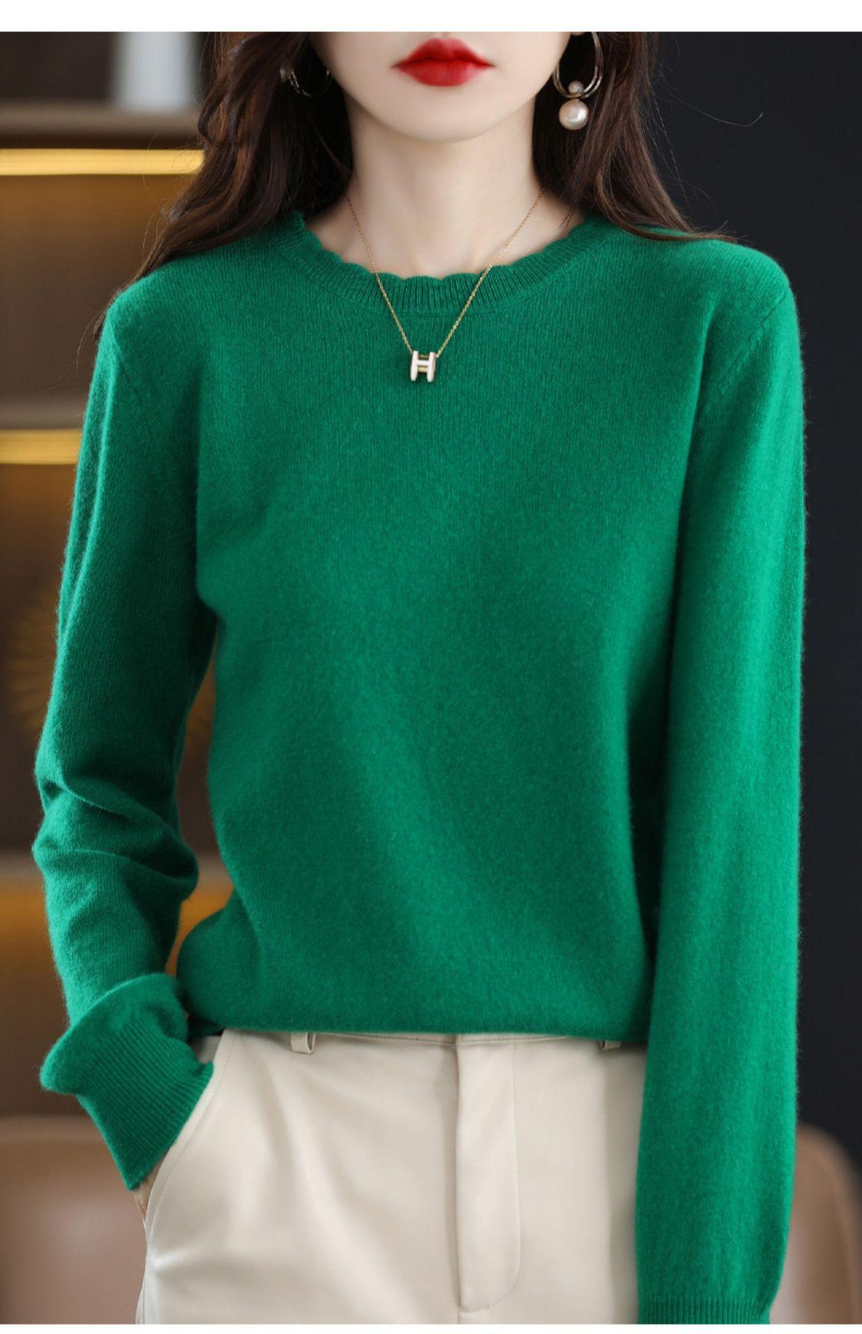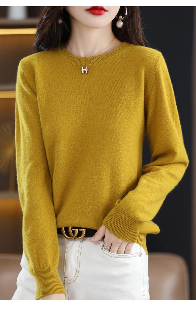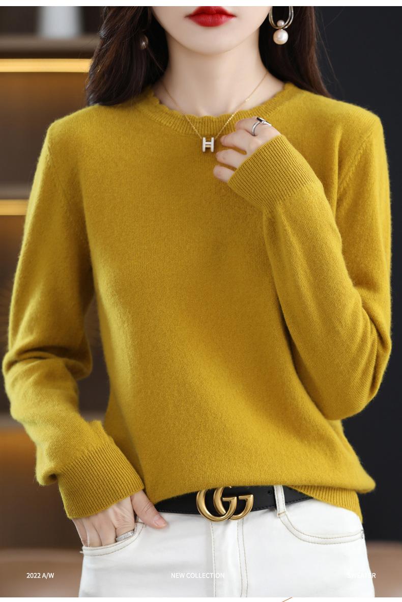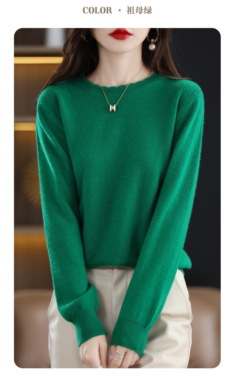 Camiseta básica de encaje suave y casual de cuello redondo para mujer, Suéter de nuevo estilo Otoño e Invierno 2025, Suéter de manga larga, Holgado