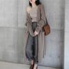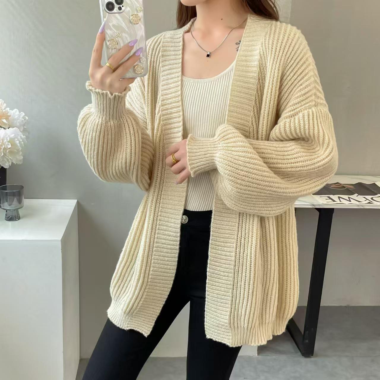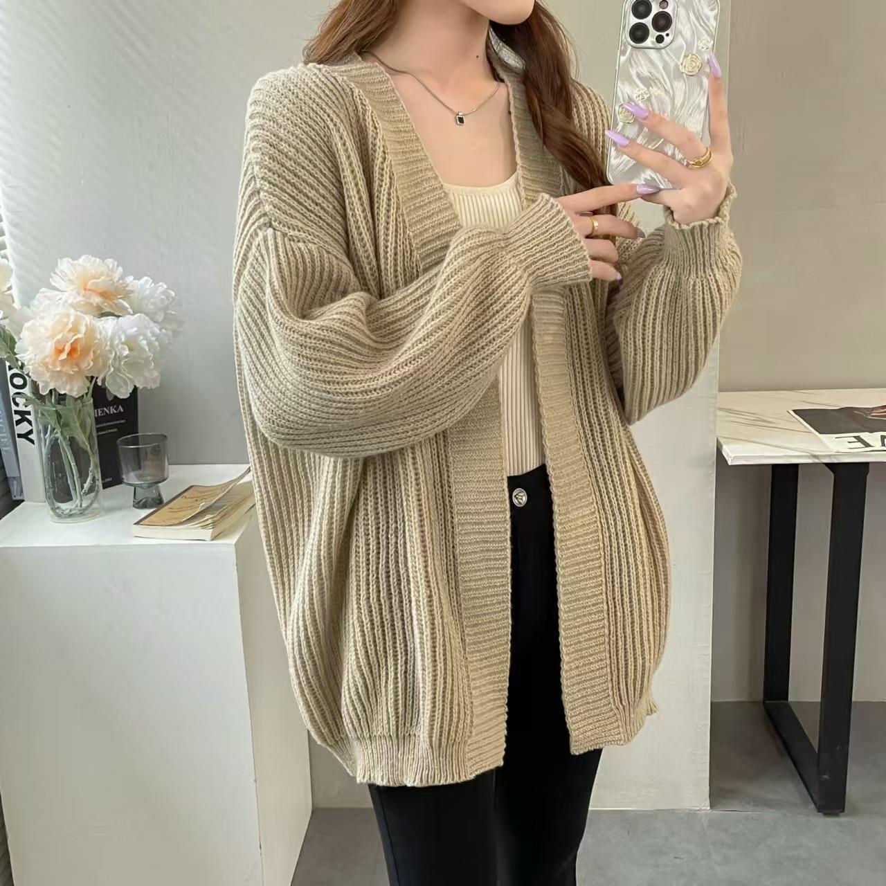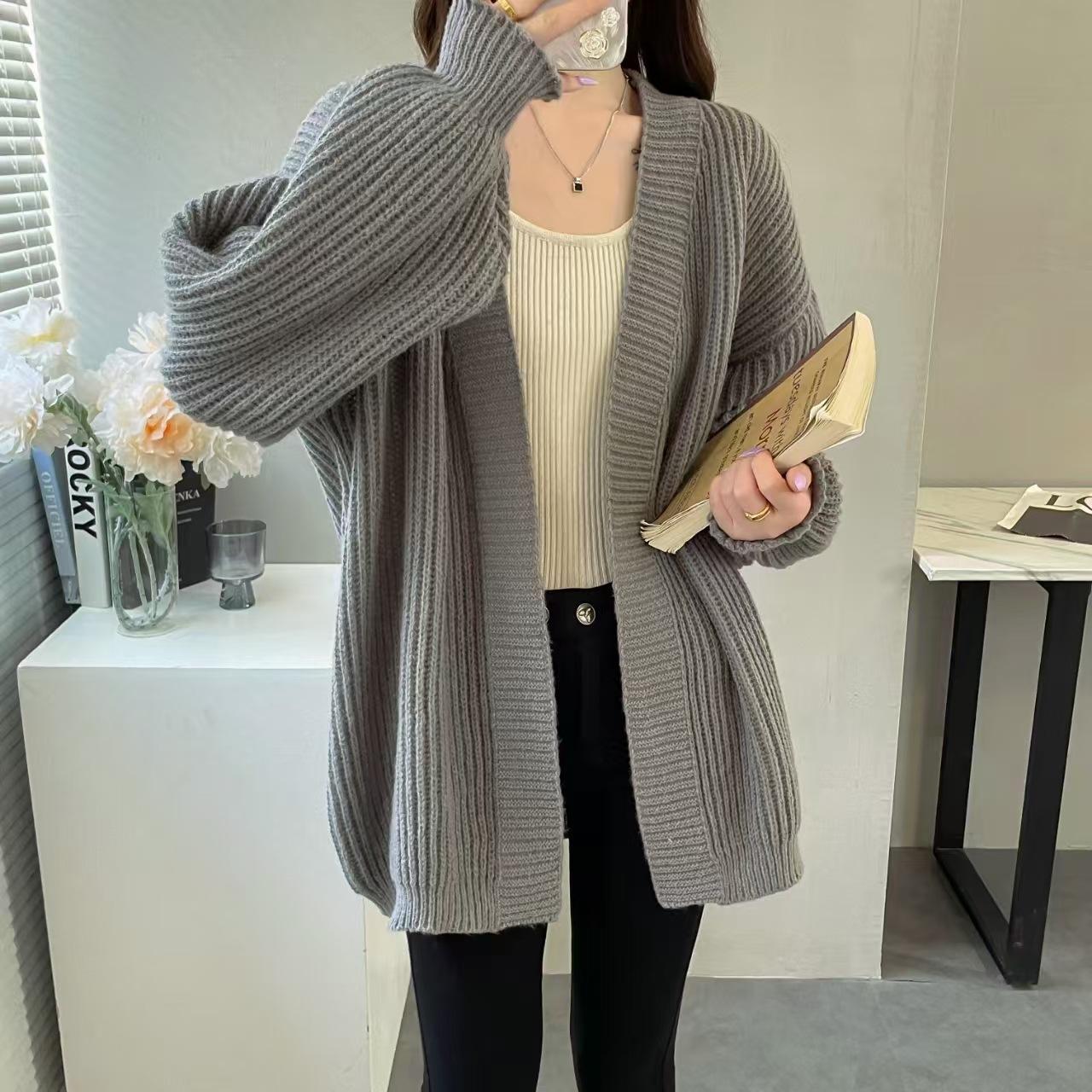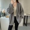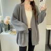 Chic Coreano Otoño e Invierno Simple Color Puro Holgado Casual Versátil Chaqueta Suéter de Largo Medio Cárdigan de Punto para Mujer