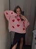 Nuevo Suéter de Cuello Alto Holgado Casual Versátil de Manga Larga Transfronterizo Europeo y Americano Otoño e Invierno con Bordado de Amor Top de Cuello Redondo