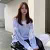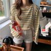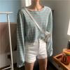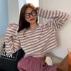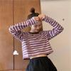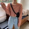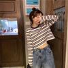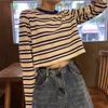 Camiseta corta para mujer, otoño 2019, estilo coreano, retro, con contraste de colores, a rayas, manga larga, cuello redondo, top de estudiante de moda