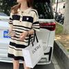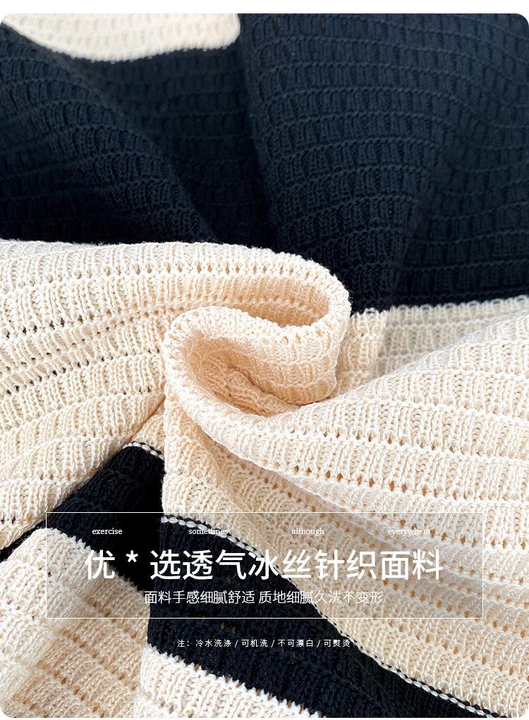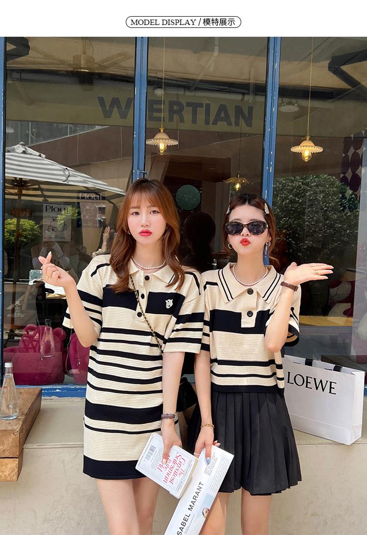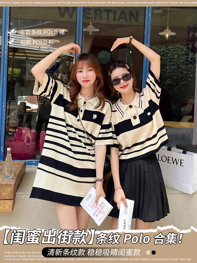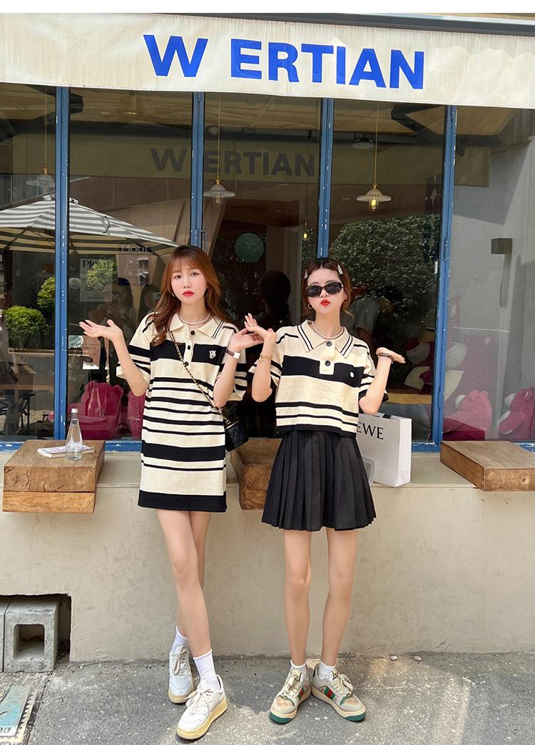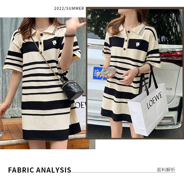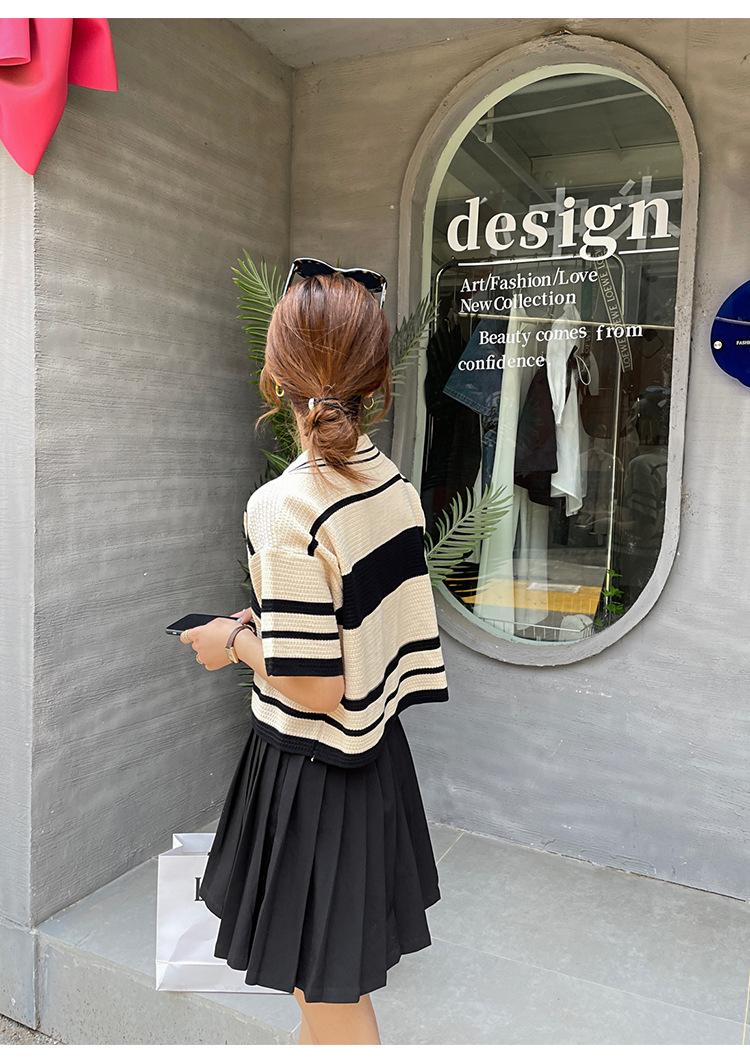 Suéter a rayas con cuello polo, camiseta de manga corta para mujer, diseño fino y holgado, de verano, para adelgazar.