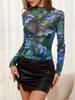 Top de Malla con Volantes y Cuello Alto Pequeño, Estampado Floral de Moda Elegante, Transfronterizo Europeo y Americano, Nuevo de Primavera 2026 para Mujer