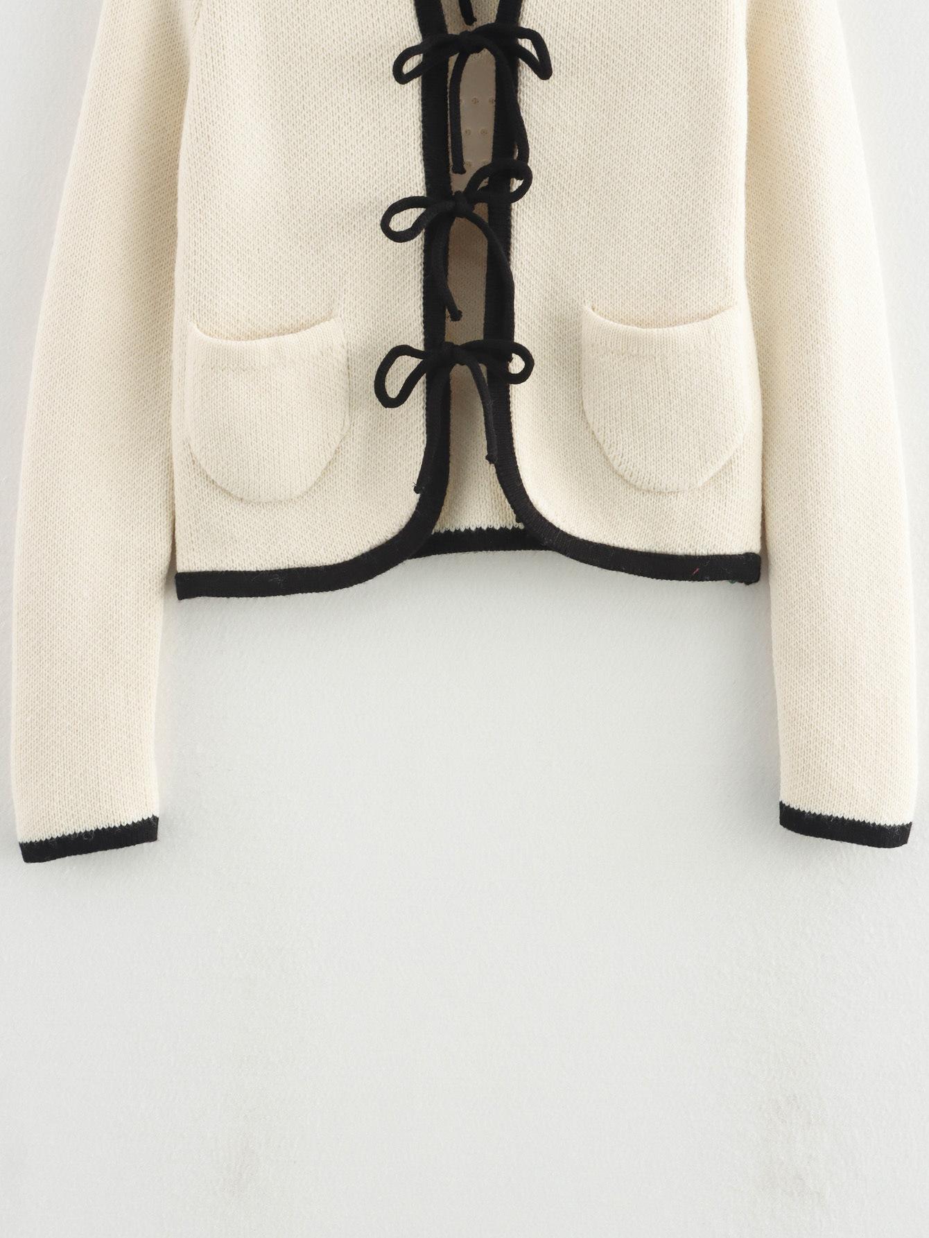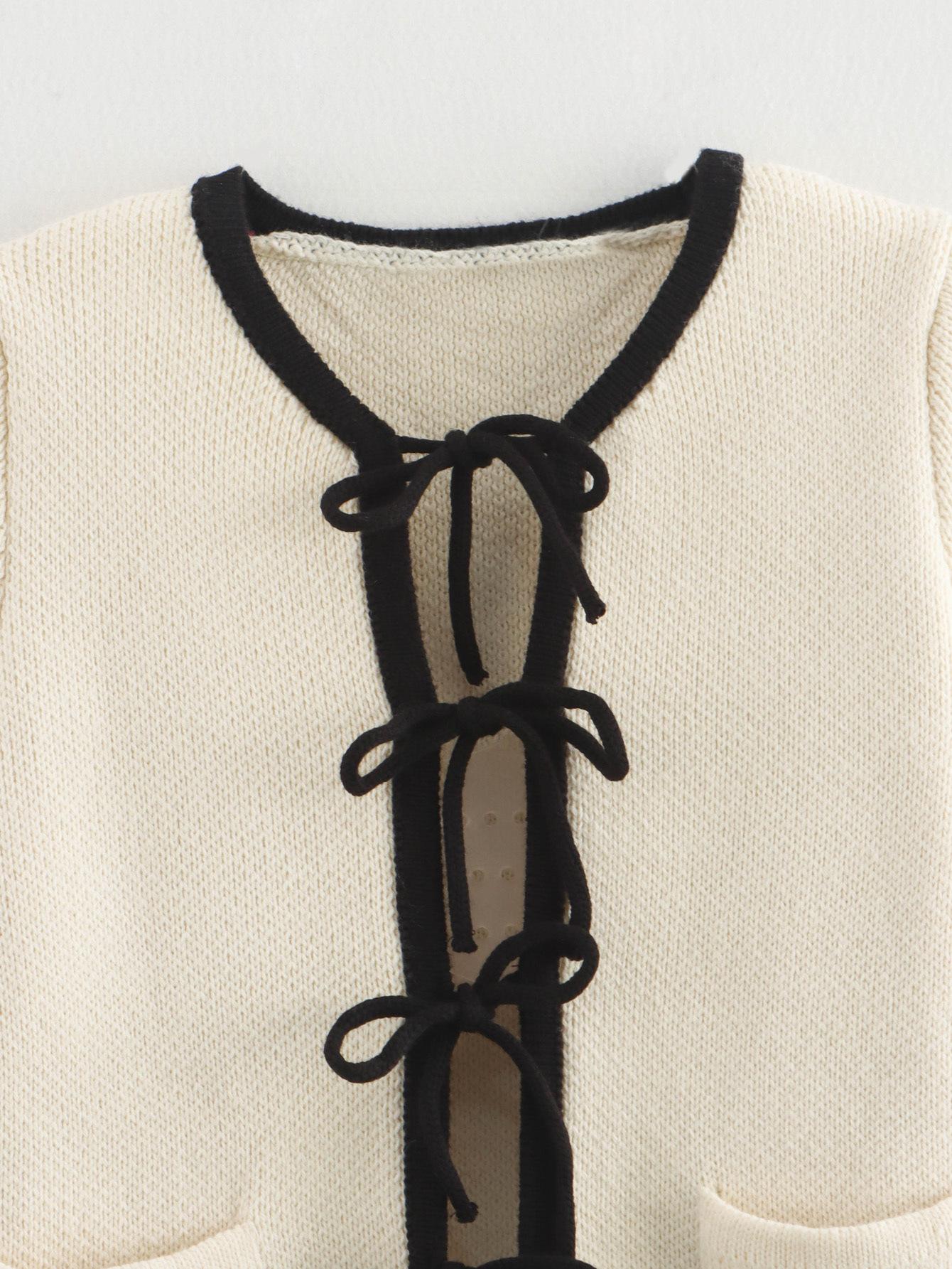 Nuevo Otoño 2024 Europeo y Americano Transfronterizo Moda Urbana para Mujer Chaqueta Tejida con Lazo w063 2398