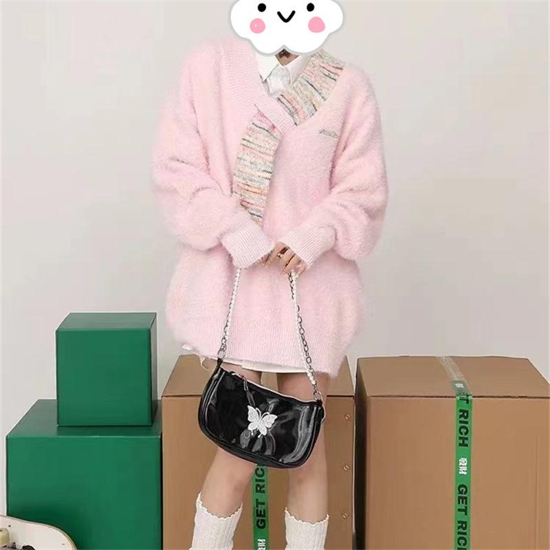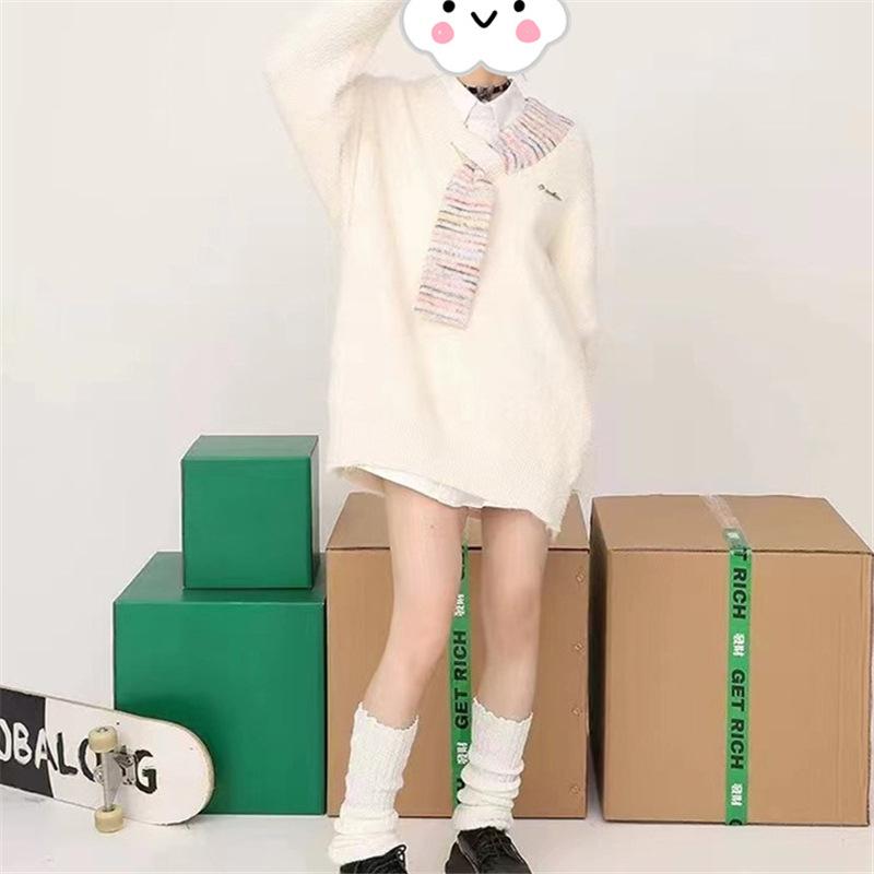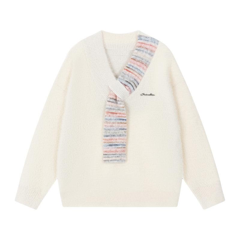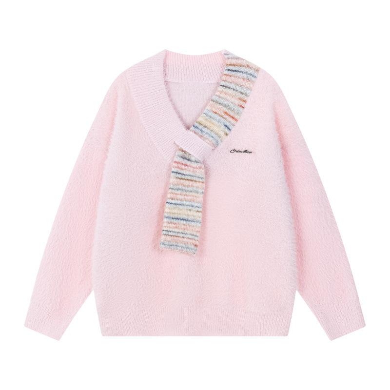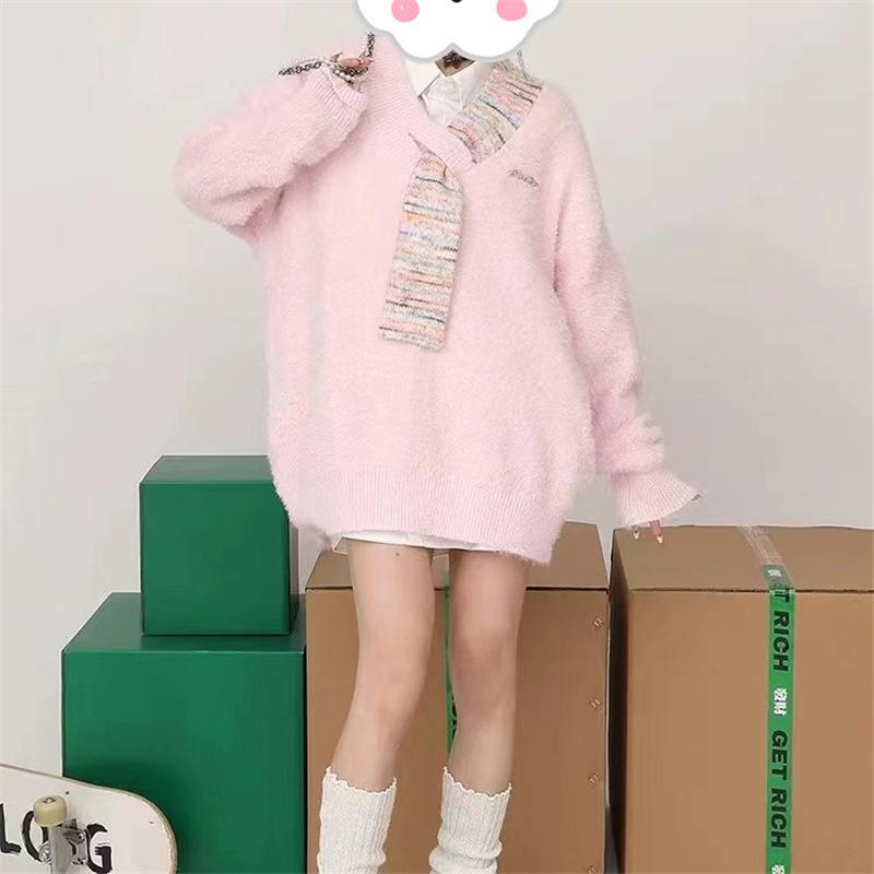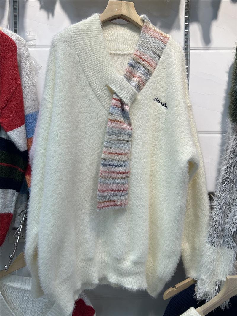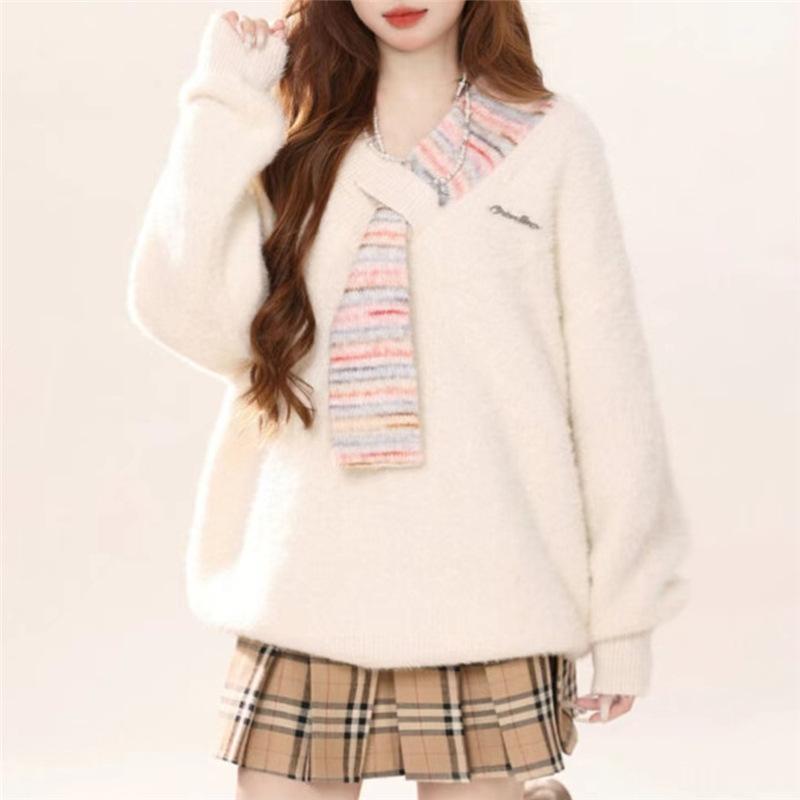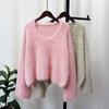 Suéter de imitación de terciopelo de visón suave y ceroso para otoño e invierno, nuevo jersey para mujer, estilo coreano, diseño dulce y suave, bufanda falsa, top versátil