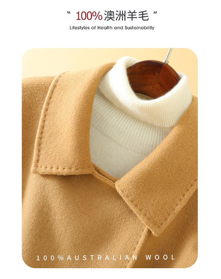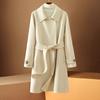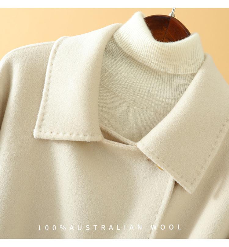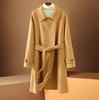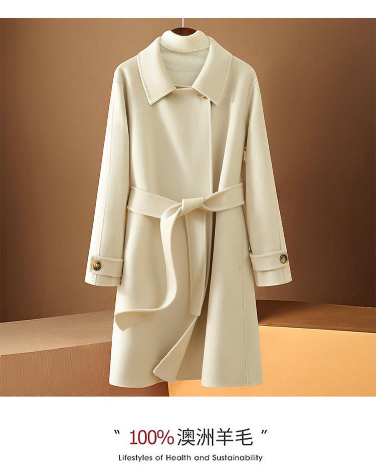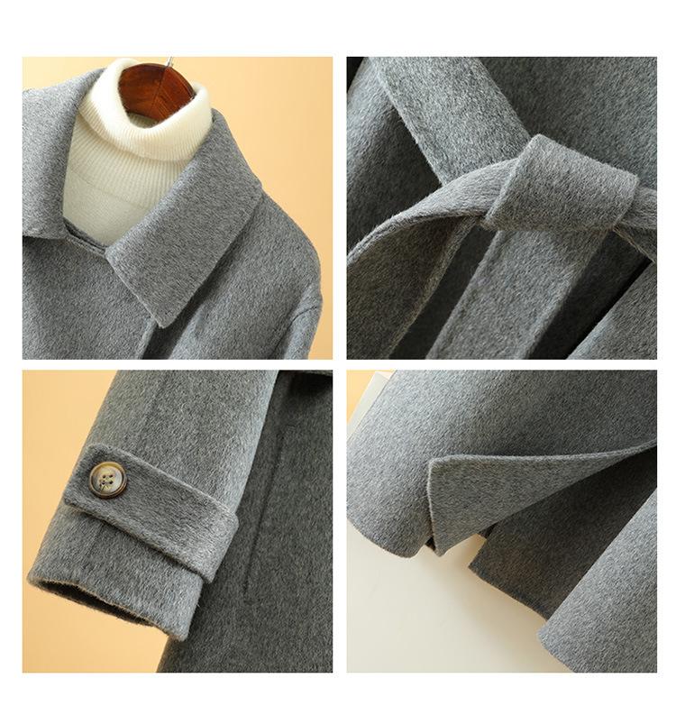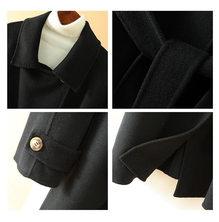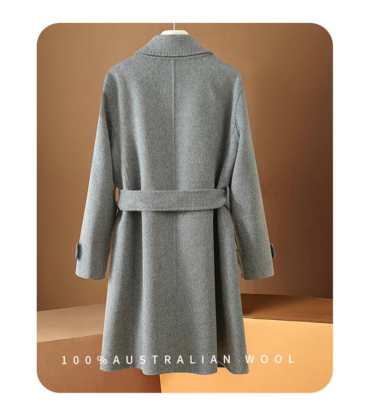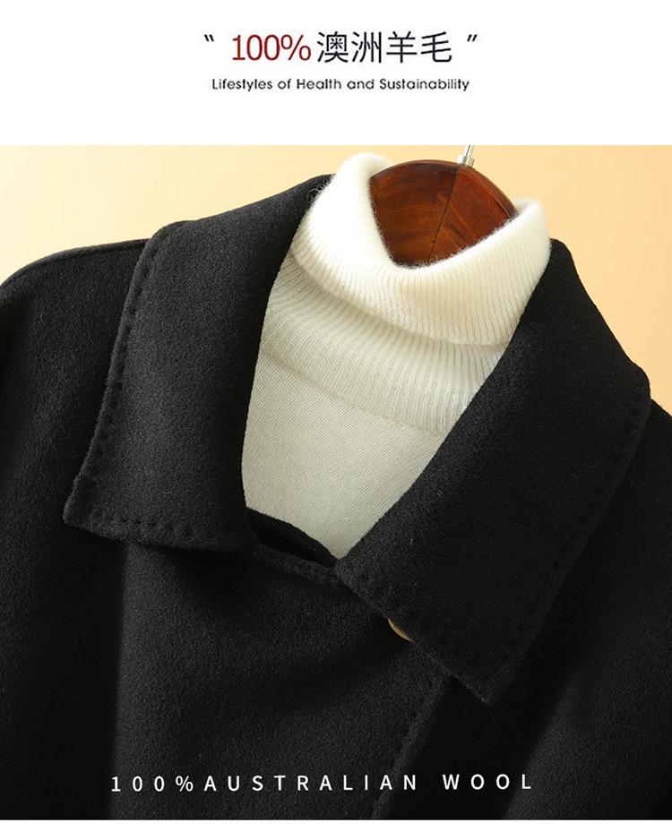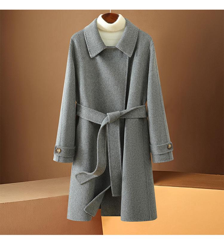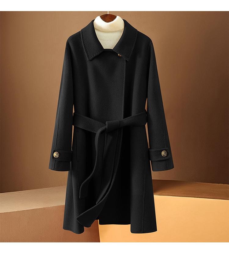Abrigo de lana de doble cara para mujer, otoño e invierno, nuevo, elegante, estilo coreano, sencillo, largo, 2024